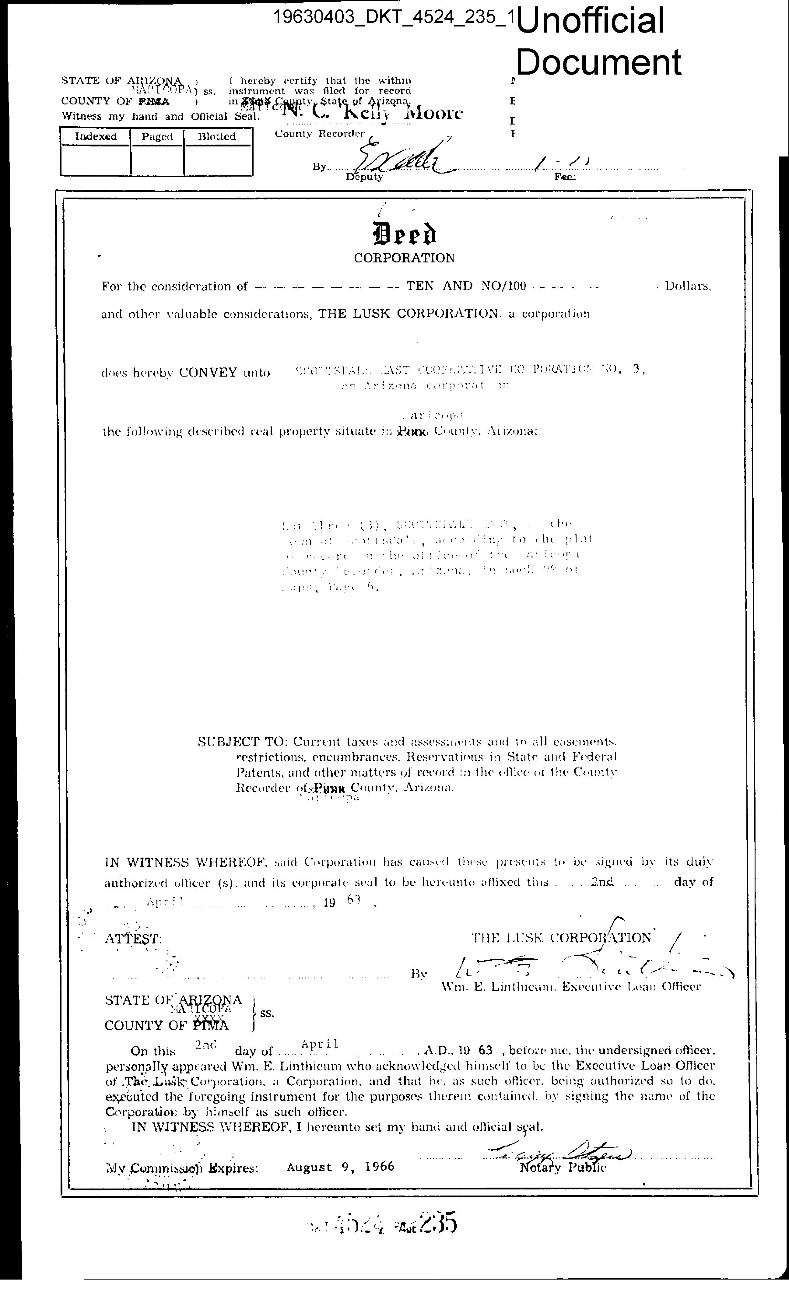 Owner Name : Scottsdale East Cooperative Corp 3 Mailing Address : 8151 E Garfield St, Scottsdale AZ 85257-3830 C019
