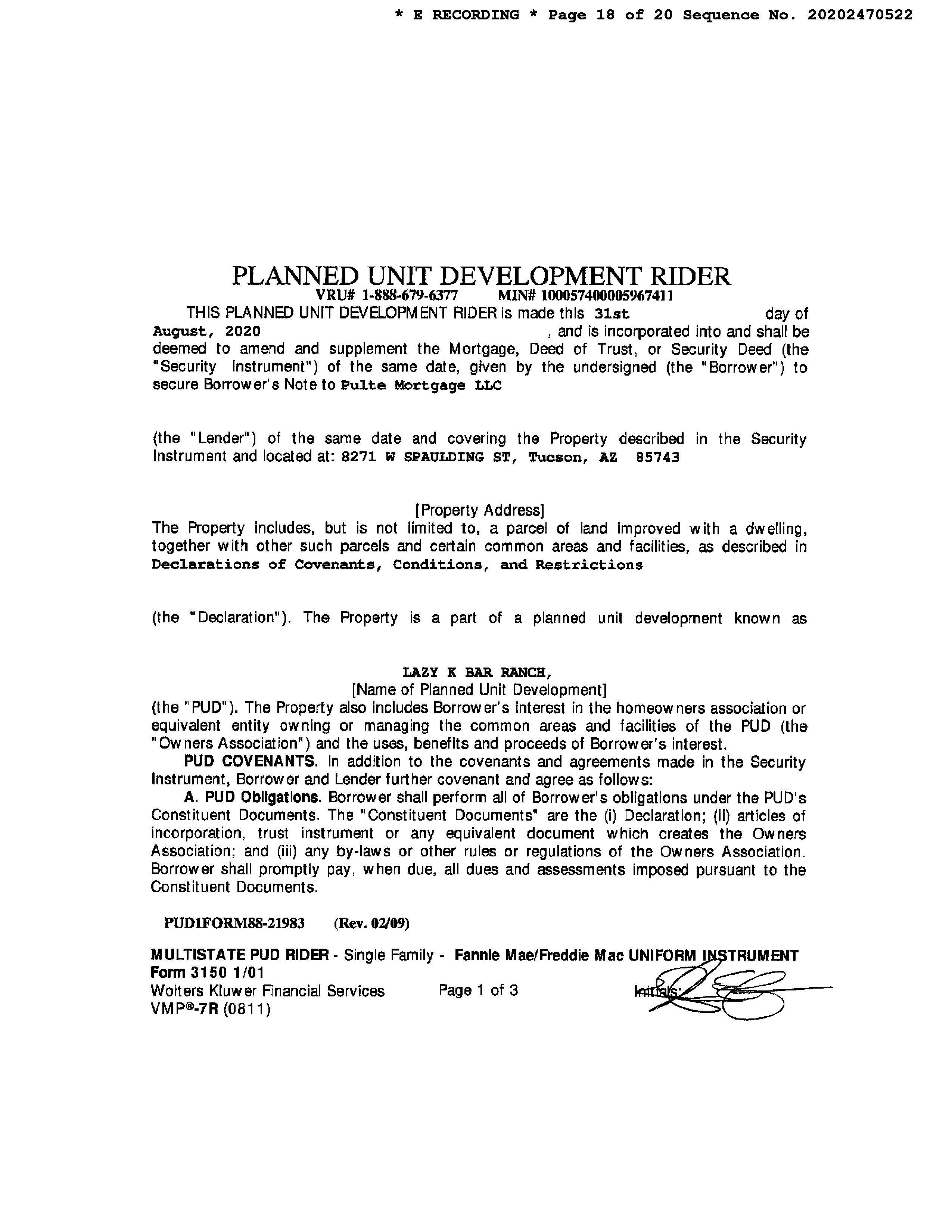 Recording/Sale Date : 09/03/2020 / 08/25/2020 1st Mtg Amount/Type : $416,700 / Cnv