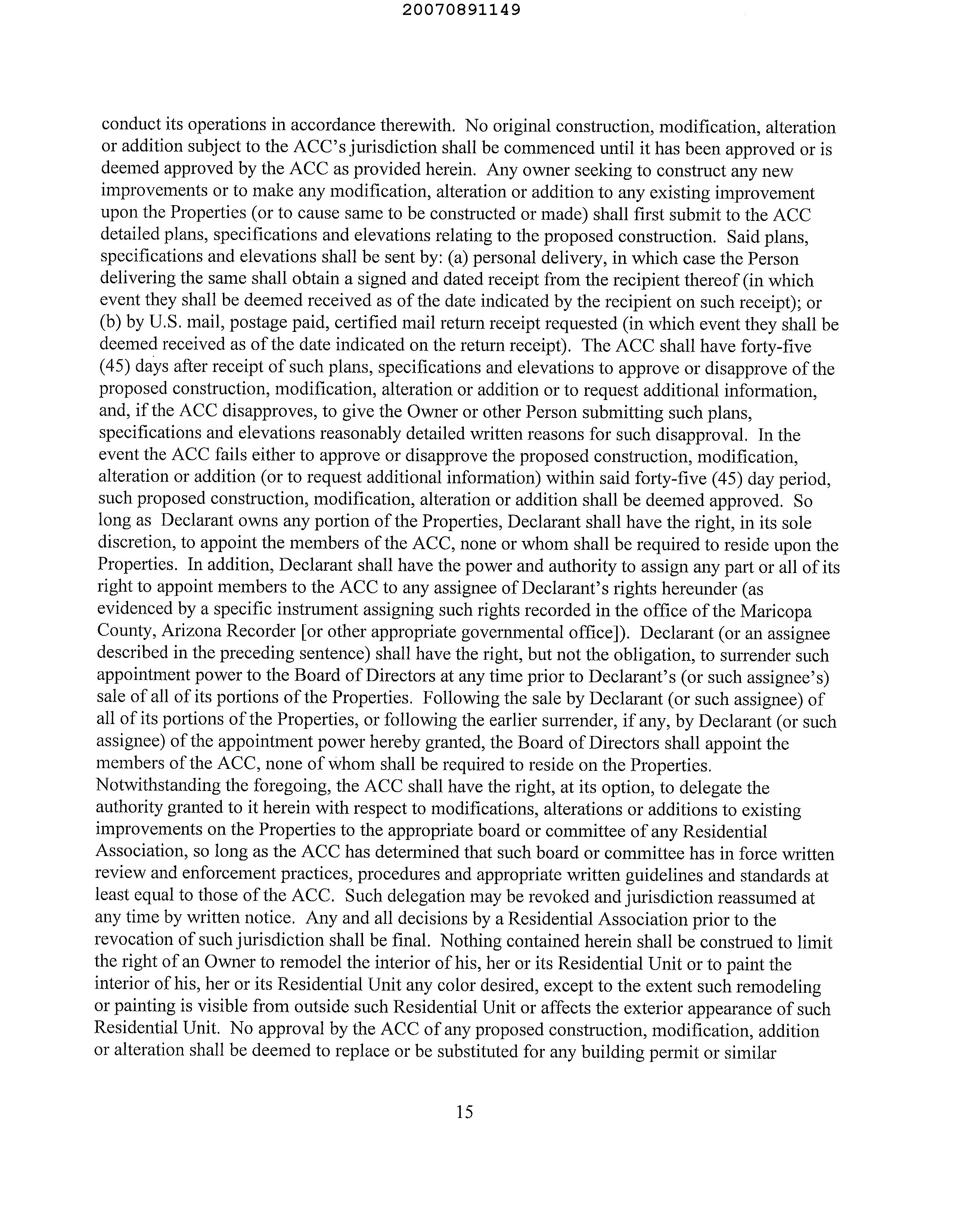 MARICOPA, AZ Document:RES 2007.891149 Page:15 of 53 Printed on:10/4/2022 2:54 PM Branch :FC0 User :JSTI