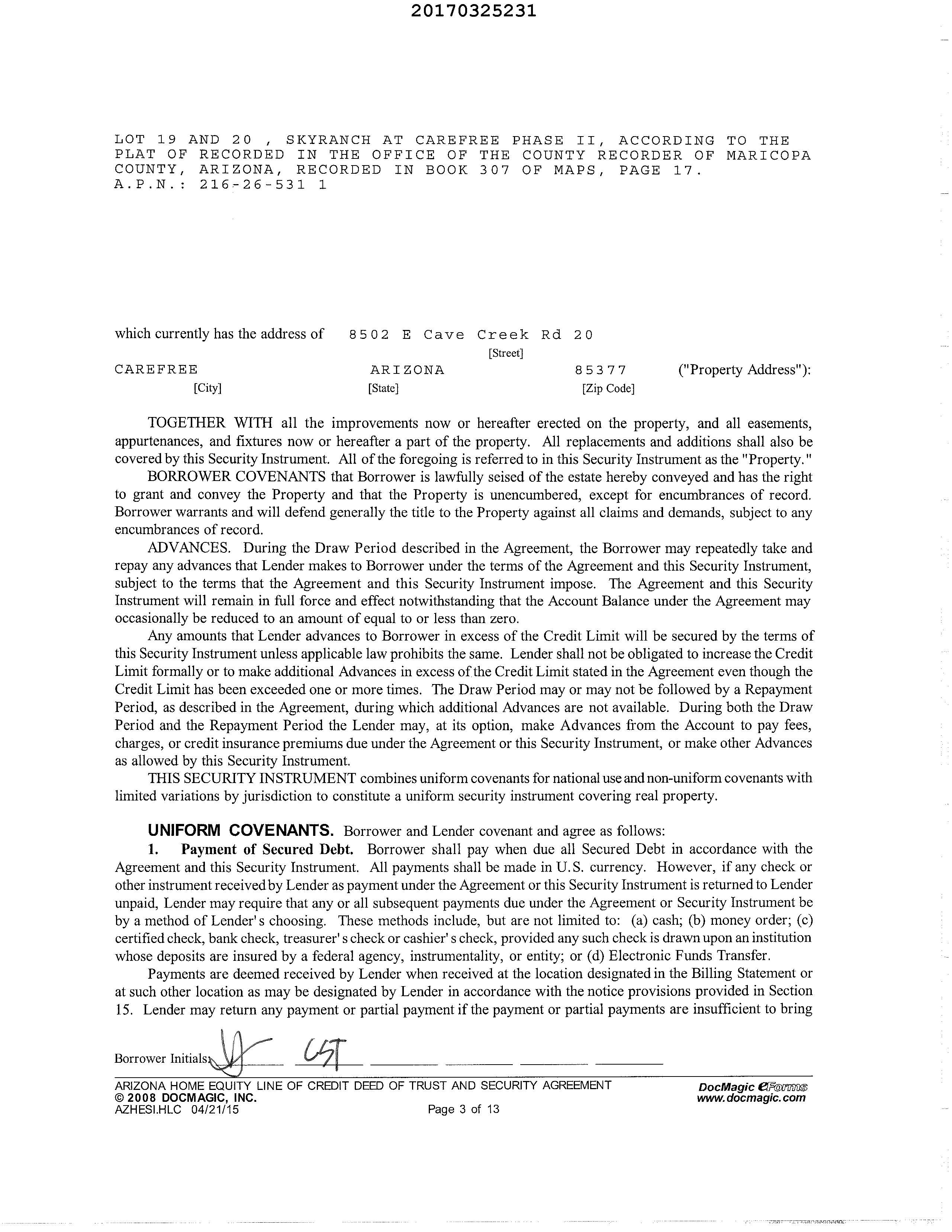 Legal Description : Lot 19 Skyranch At Carefree Phase 2 Mcr 307-17