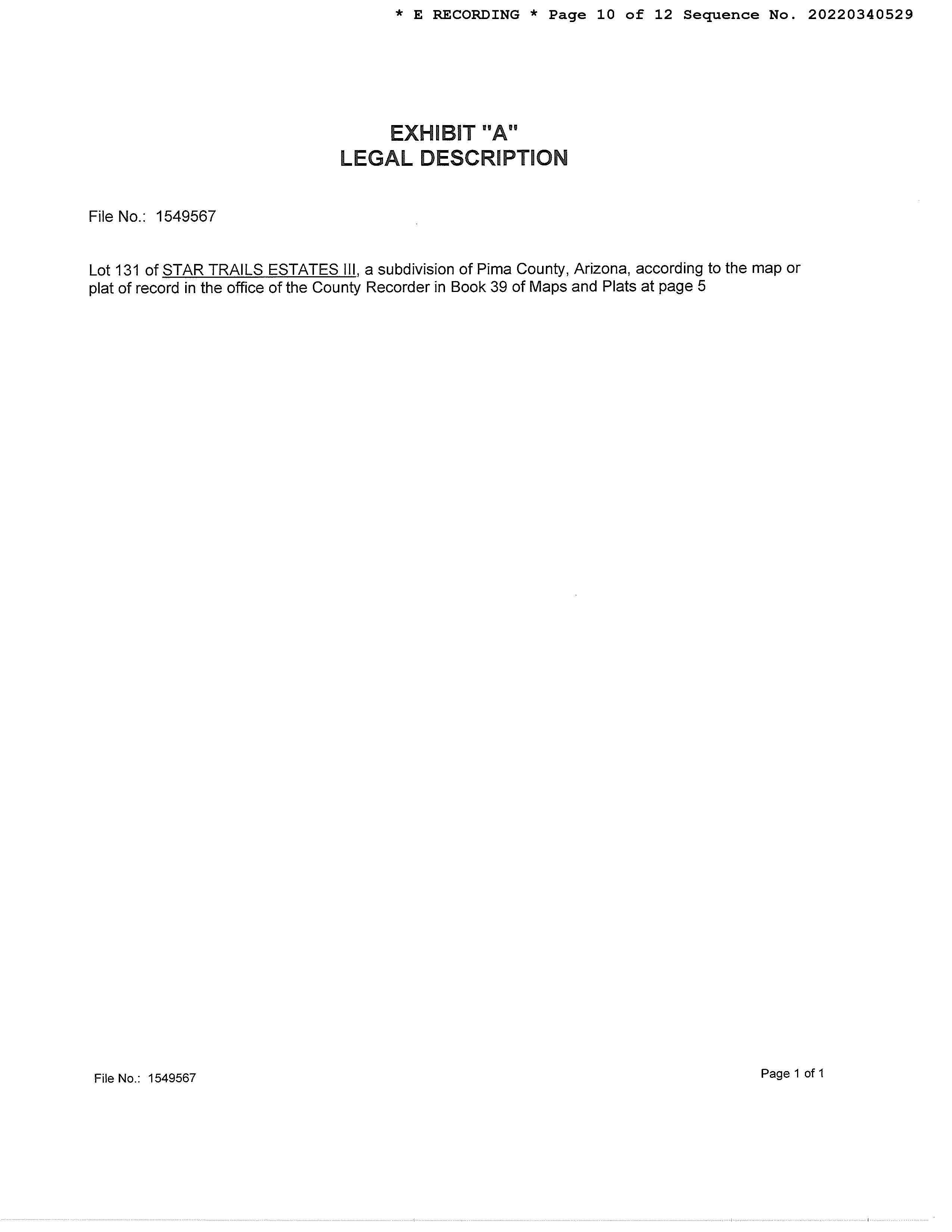 Subject Property : 8679 N Auriga Way Tucson AZ 85742