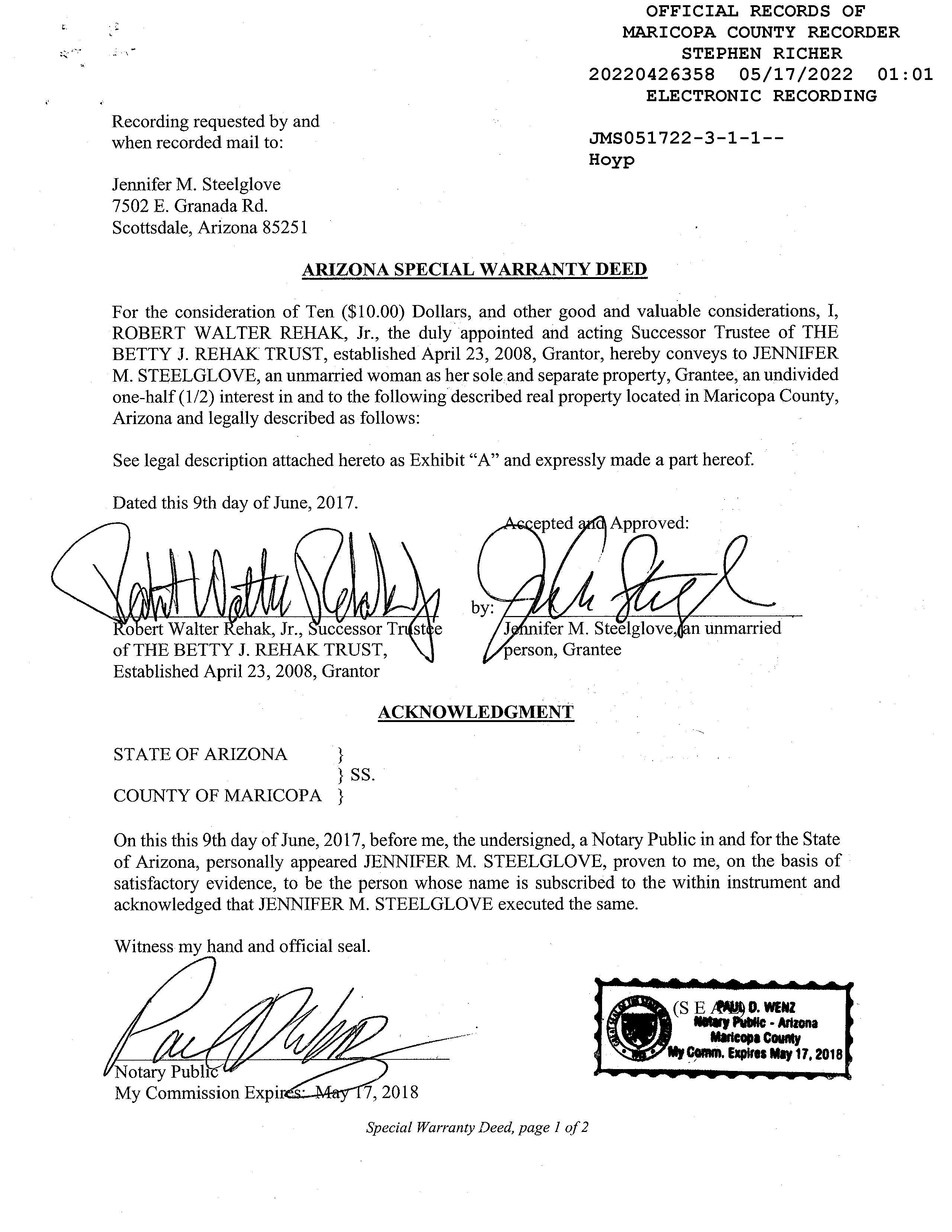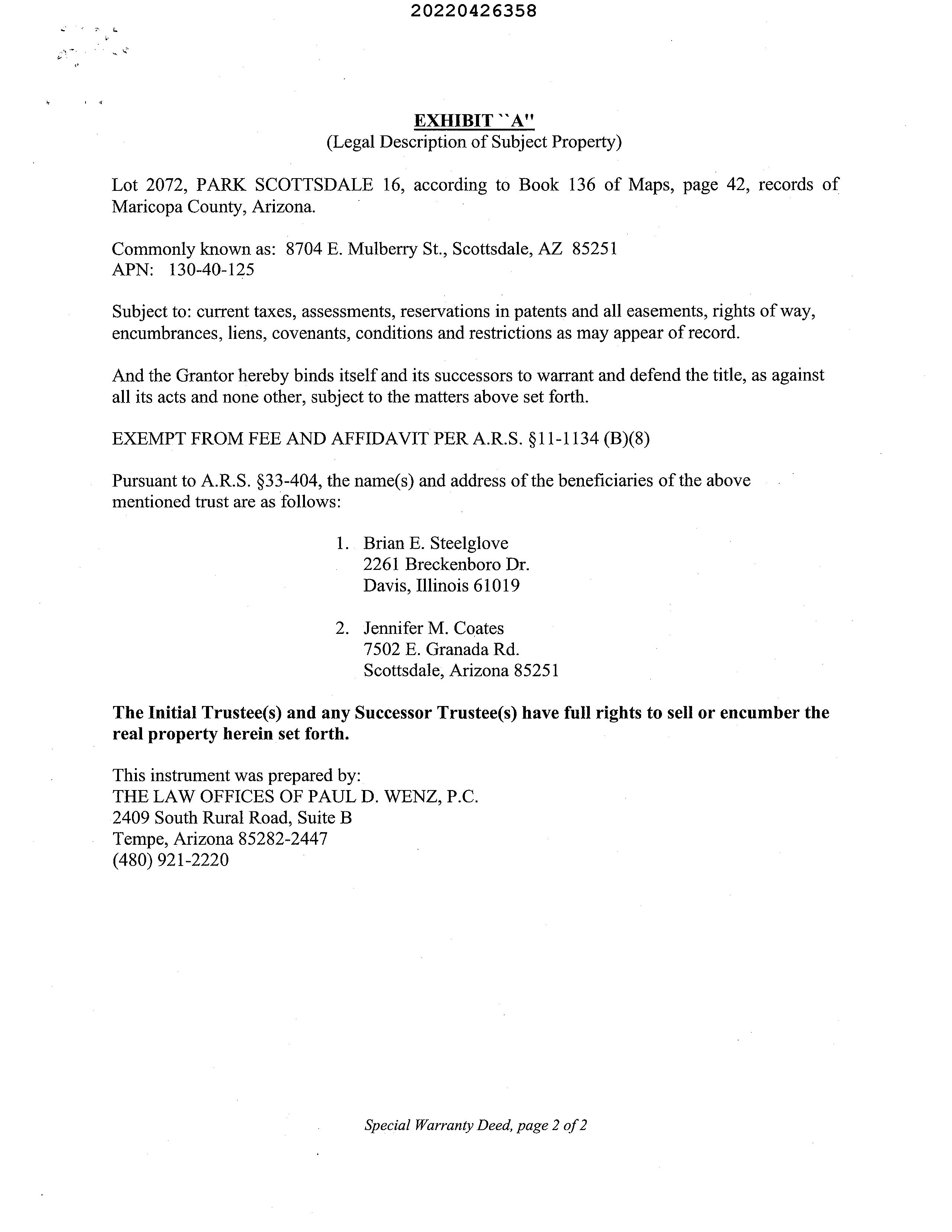 Mailing Address : 7502 E Granada Rd, Scottsdale AZ 85257-1558 C034