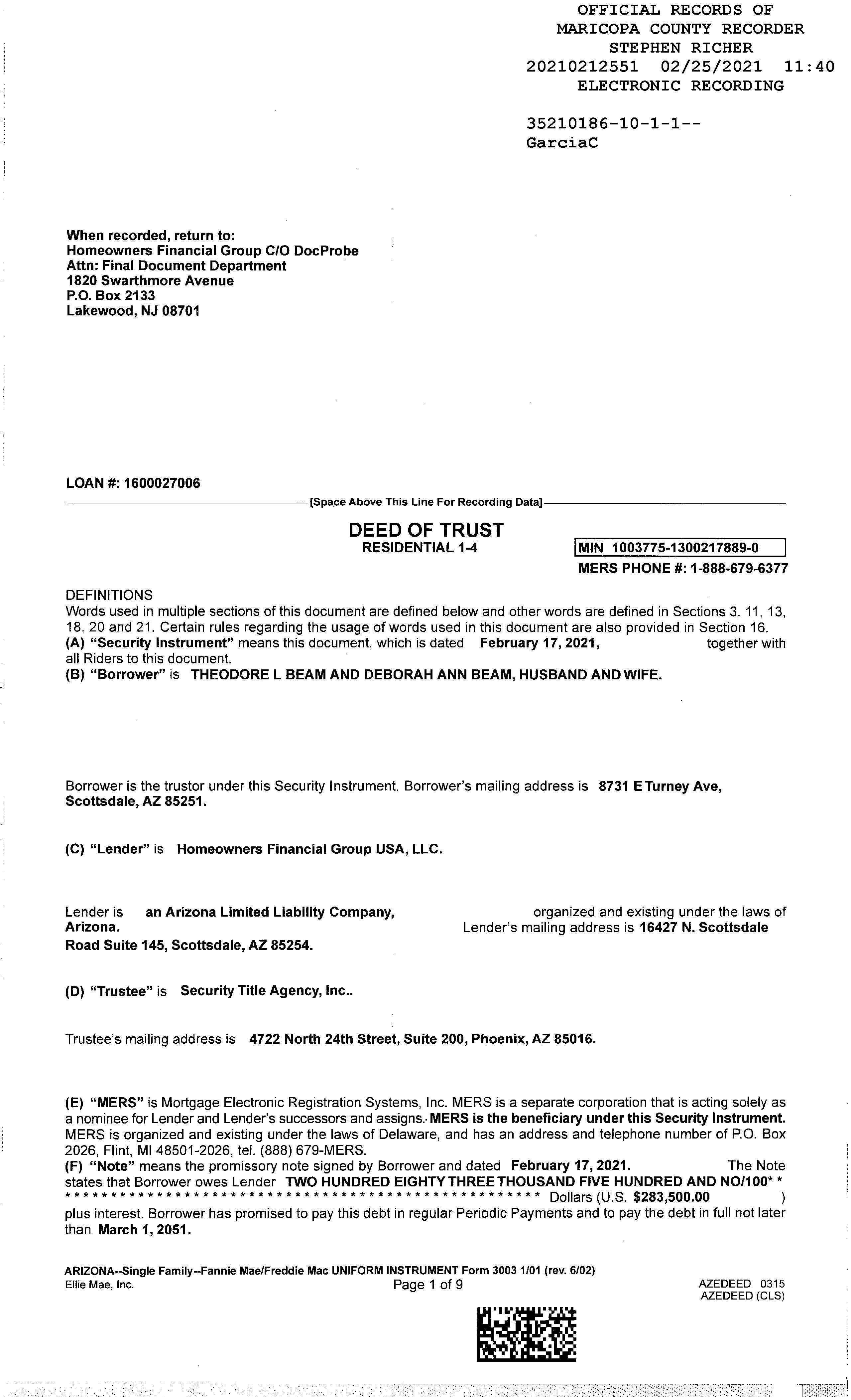 Owner Name: Beam Theodore Lester /Beam Deborah Ann APN / Alternate APN: 173-55-163 / Deed Type: Deed (reg) Land Use: Sfr