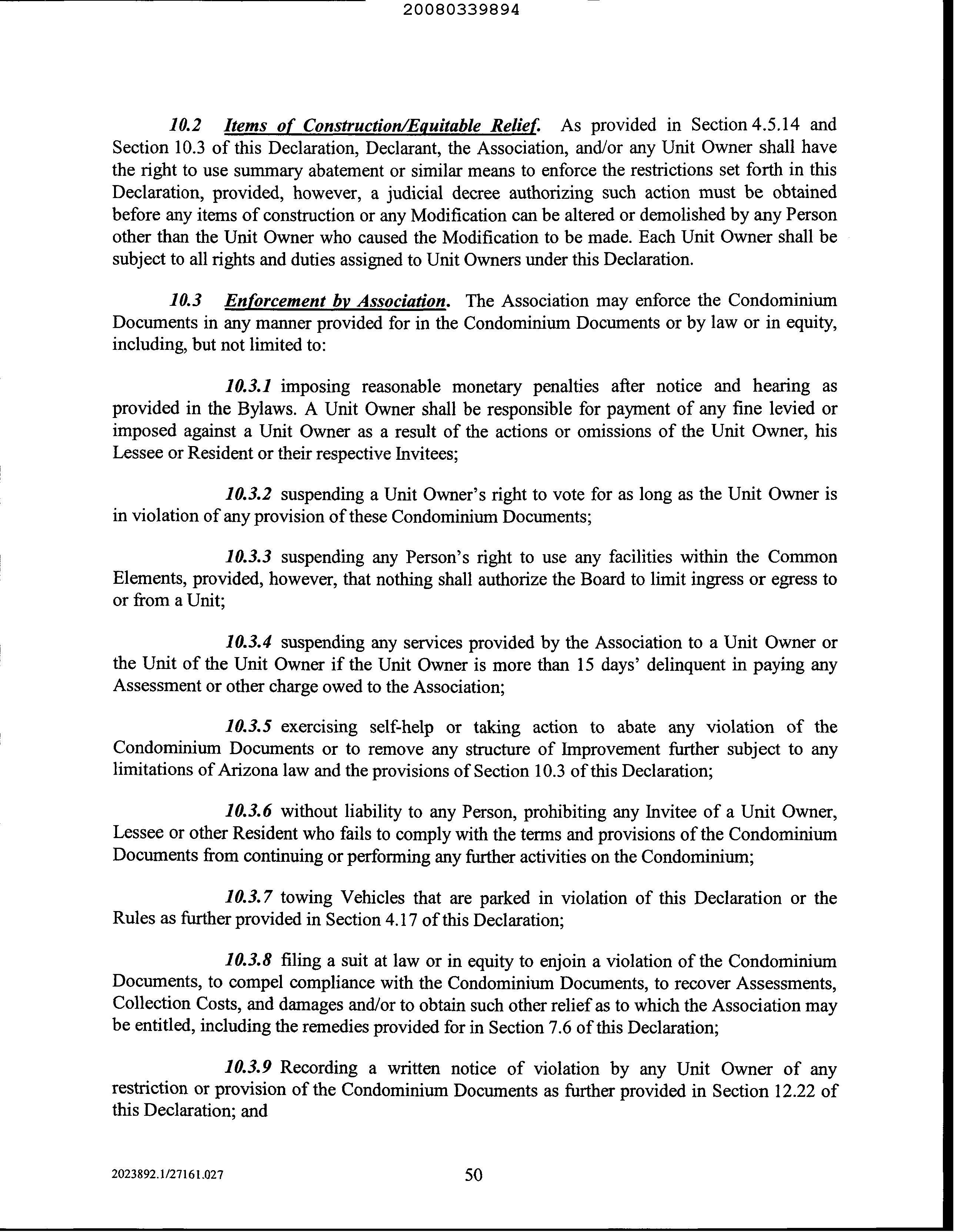 MARICOPA, AZ Document:RES AMD 2008.339894 Page:10 of 73 Printed on:10/18/2022 10:08 AM Branch :FC0 User :JSTI