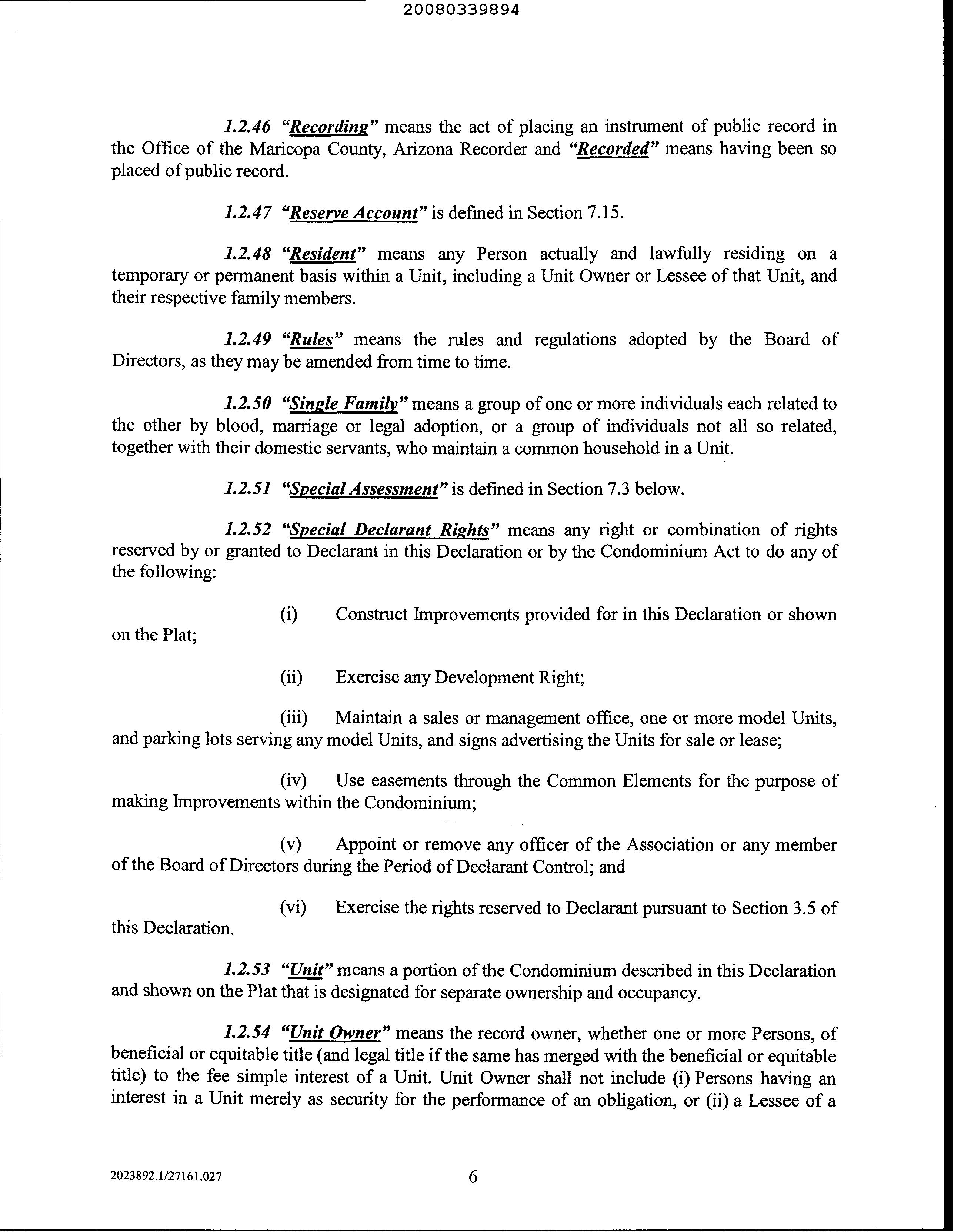 MARICOPA, AZ Document:RES AMD 2008.339894 Page:6 of 73 Printed on:10/18/2022 10:08 AM Branch :FC0 User :JSTI