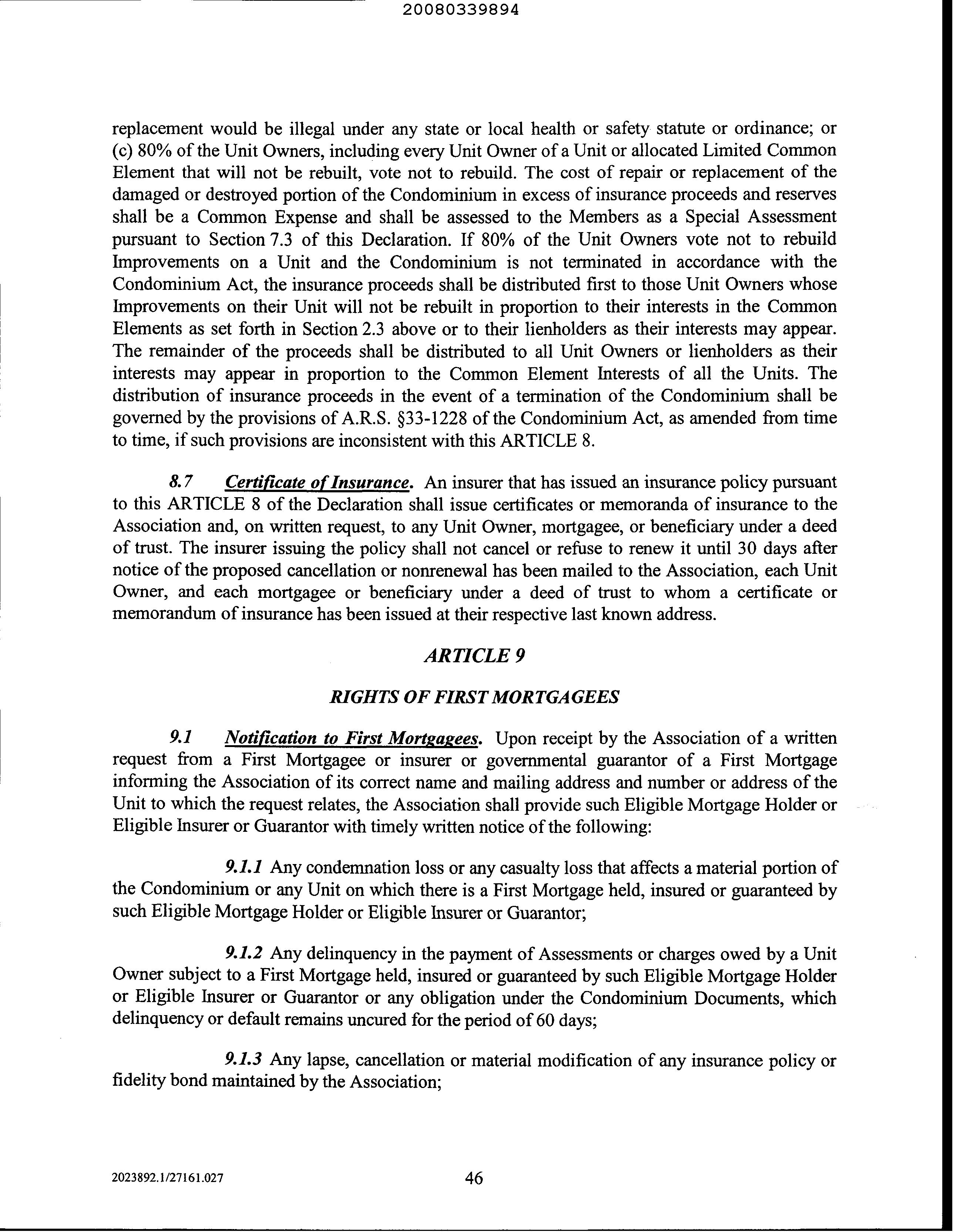 MARICOPA, AZ Document:RES AMD 2008.339894 Page:9 of 73 Printed on:10/18/2022 10:08 AM Branch :FC0 User :JSTI