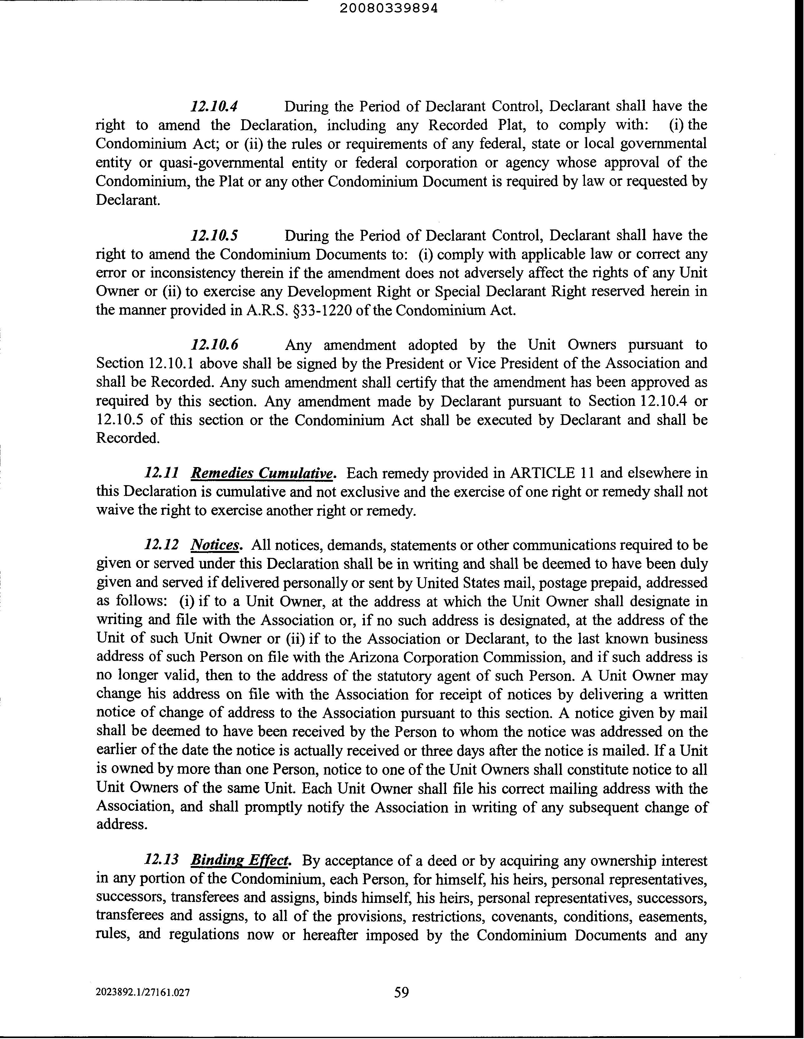 MARICOPA, AZ Document:RES AMD 2008.339894 Page:12 of 73 Printed on:10/18/2022 10:08 AM Branch :FC0 User :JSTI