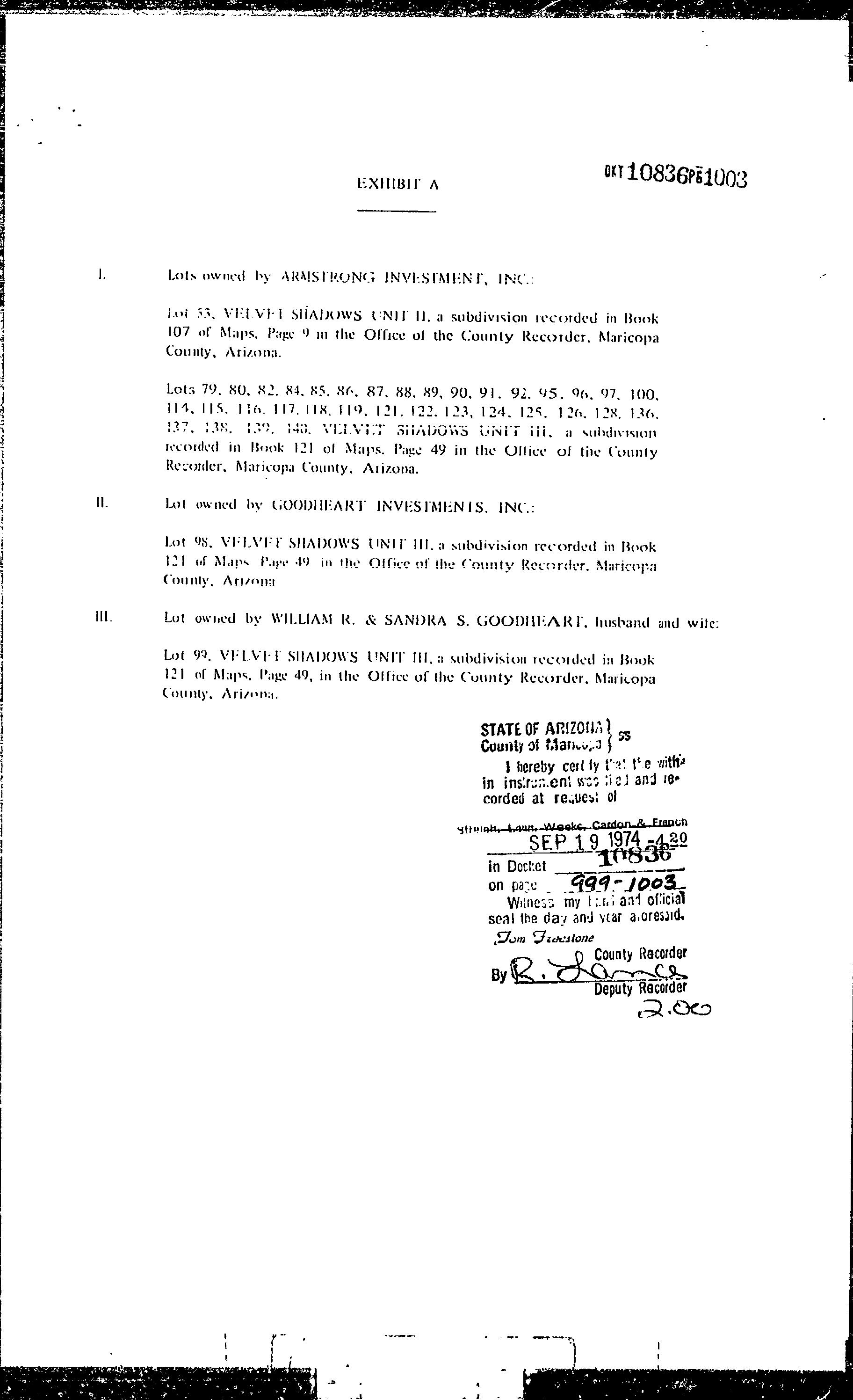 Legal Description : Lot 70 Velvet Shadows Unit 2
