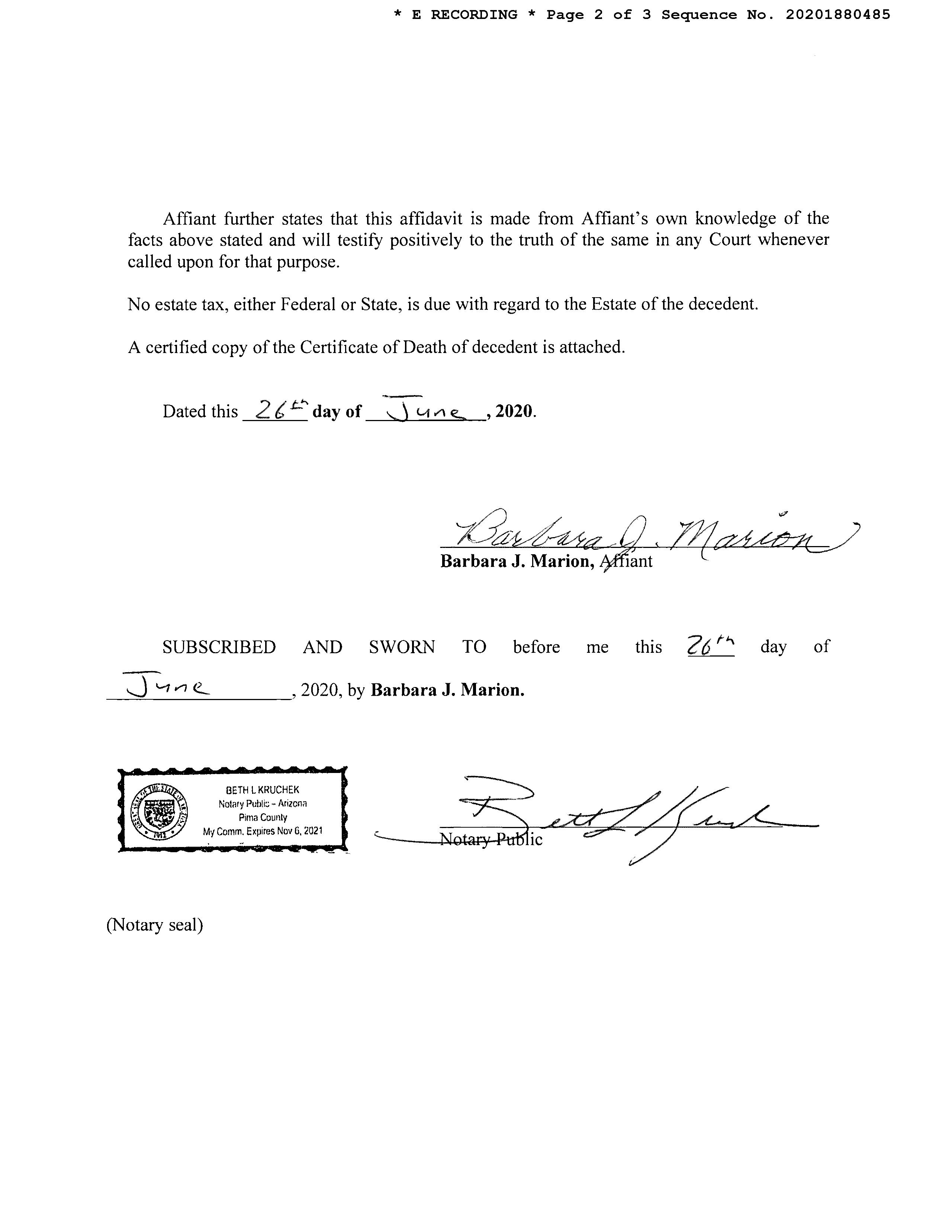 Owner Name : Marion Barbara J Mailing Address : 9326 N Desert Mist Ln, Tucson AZ 85743-5197 R130