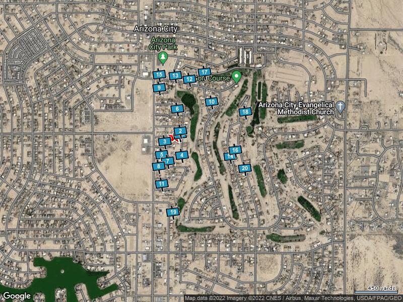 Owner Name: Garcia Vivienne M /Garcia Donald G APN / Alternate APN: 408-18-654 / Deed Type: Warranty Deed Land Use: Sfr Subdivision / Tract: Arizona City #7 / Lot Size: 15,157 Year Built / Eff: 1998 / Rec. Date / Price: 01/05/2022 / $309,900 Living Area: 1,621 # of units: Document #: 1581 Bedrooms: Pool: Total Tax Value: $122,907 Bath(F/H): / #16 14675 S Rory Calhoun Dr Arizona City Az 85123