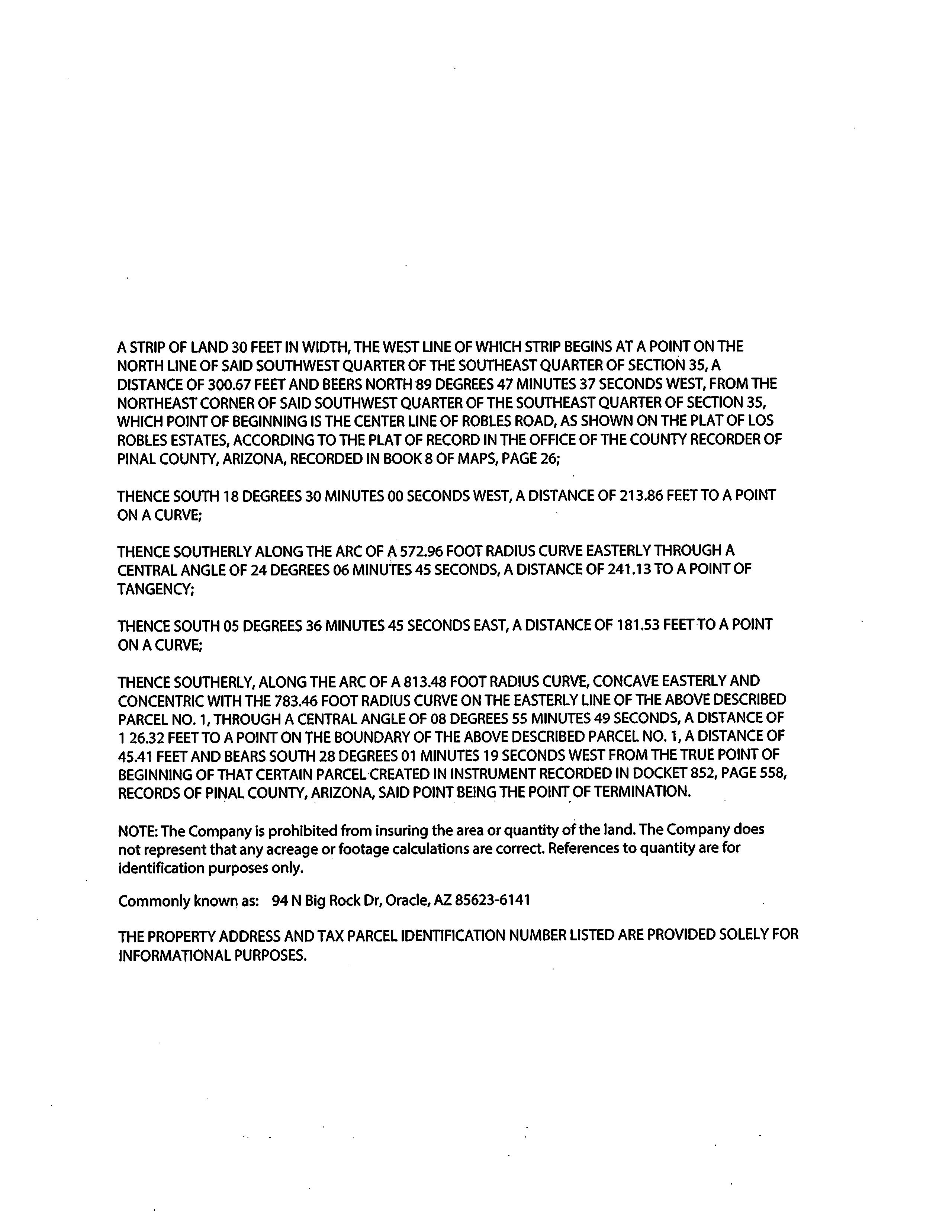 Subject Property : 94 N Big Rock Dr Oracle AZ 85623