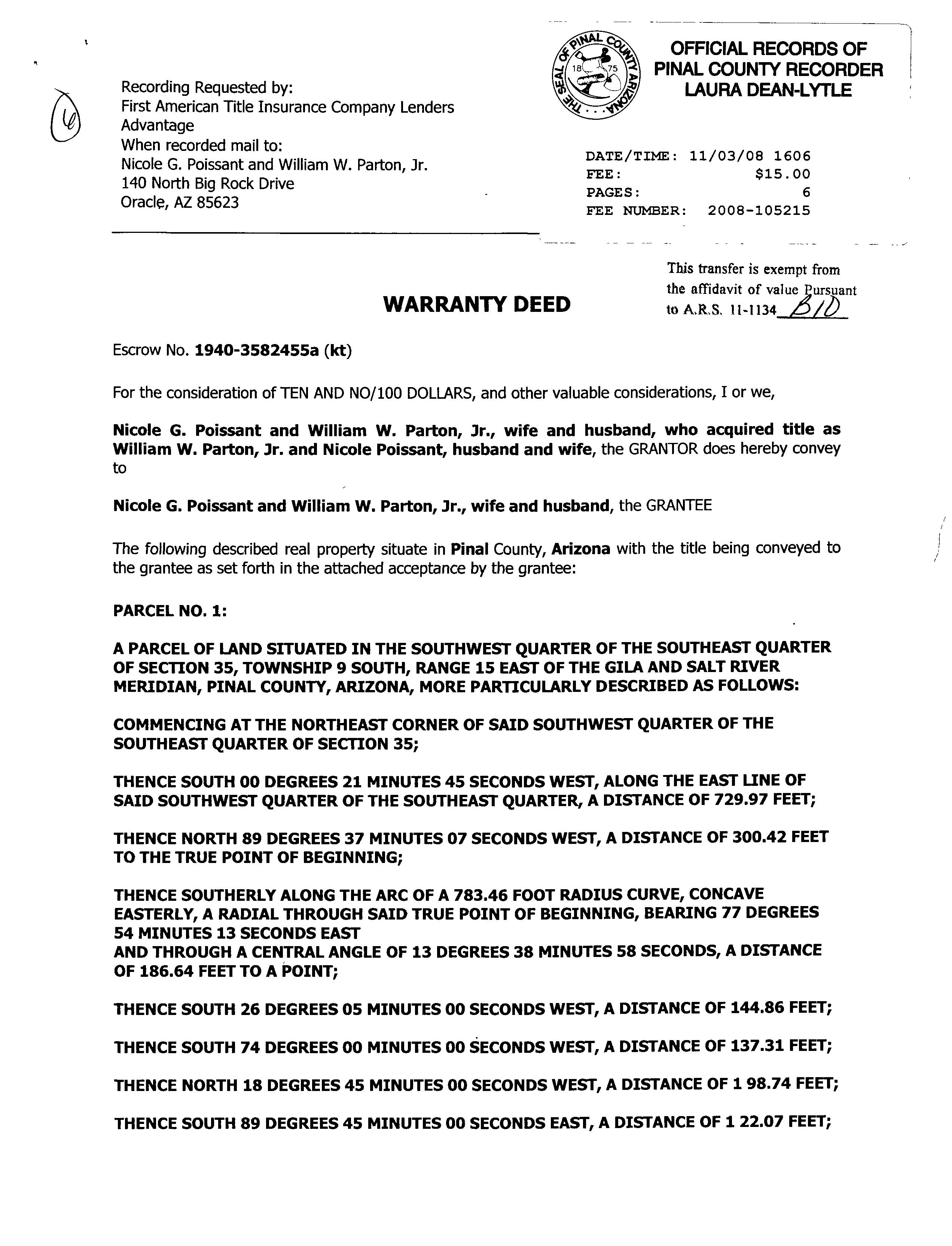 Owner Name: Poissant Nicole G /Parton William W Jr APN / Alternate APN: 308-19-013F /308-19-013D
