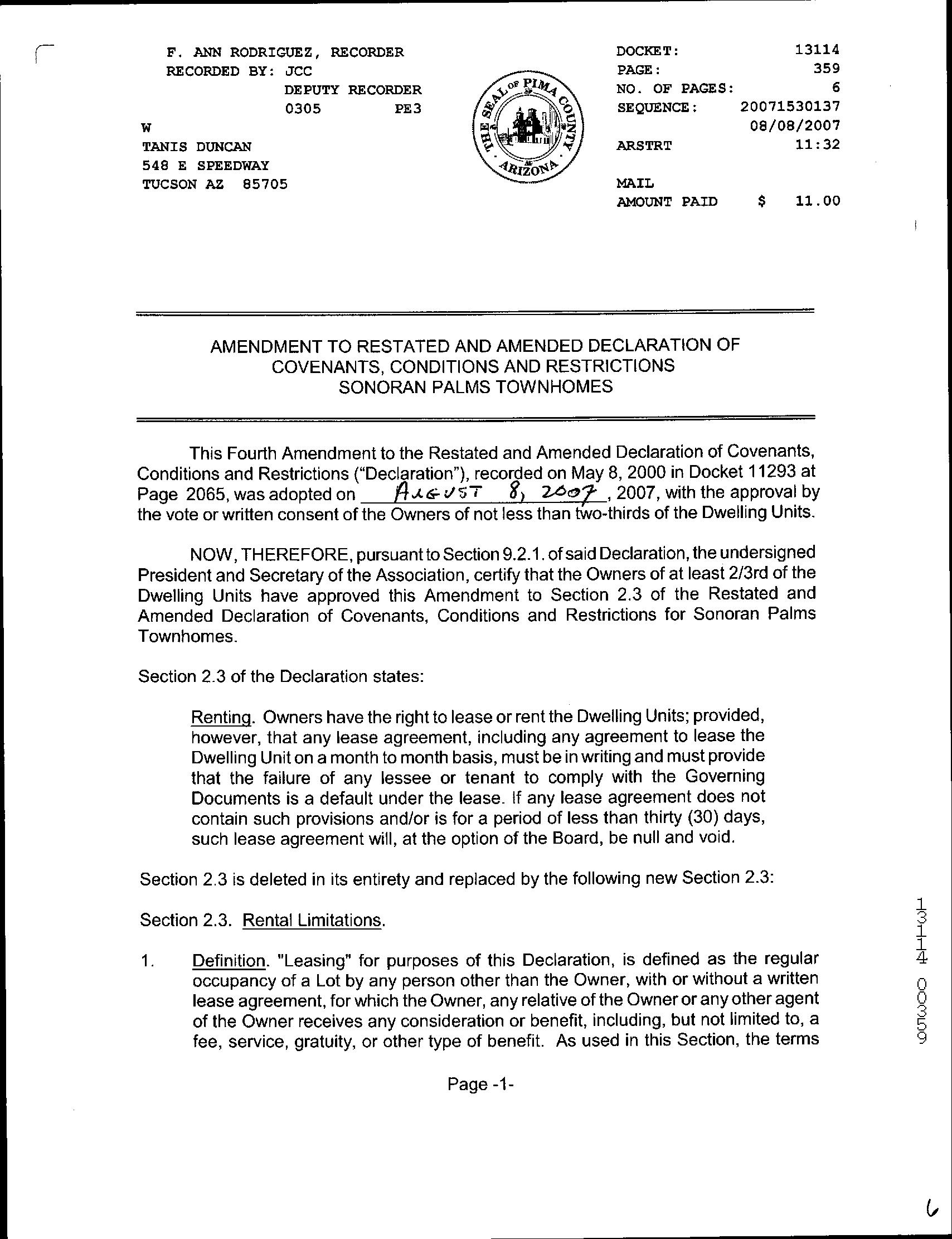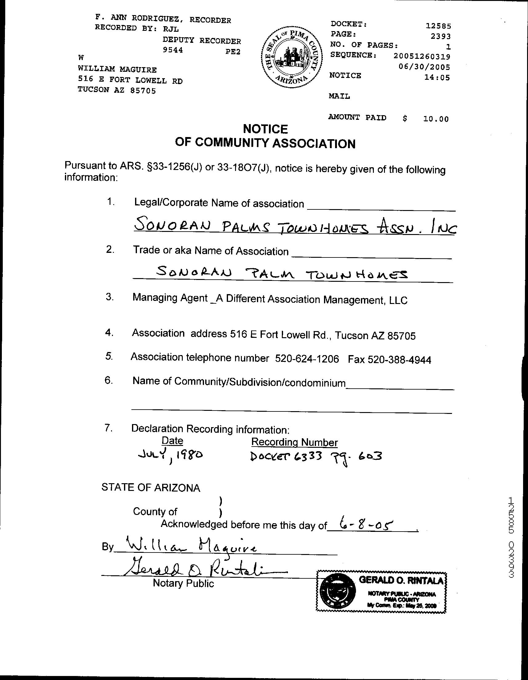Legal Description : Sonoran Palms Townhomes Lot 13 County : Pima, Az