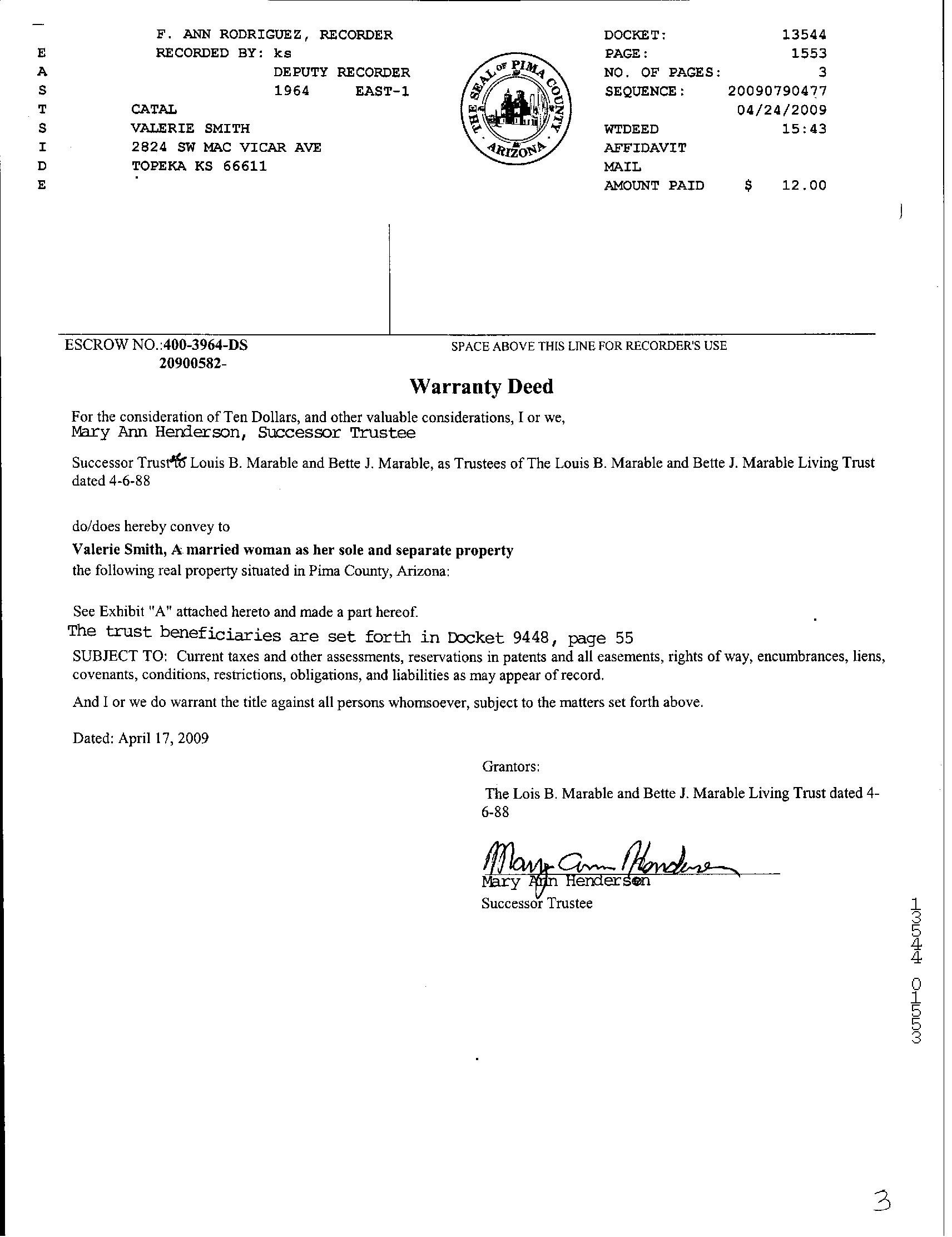Owner Name: Smith Valerie / APN / Alternate APN: 102-16-1940 / Deed Type: Warranty Deed