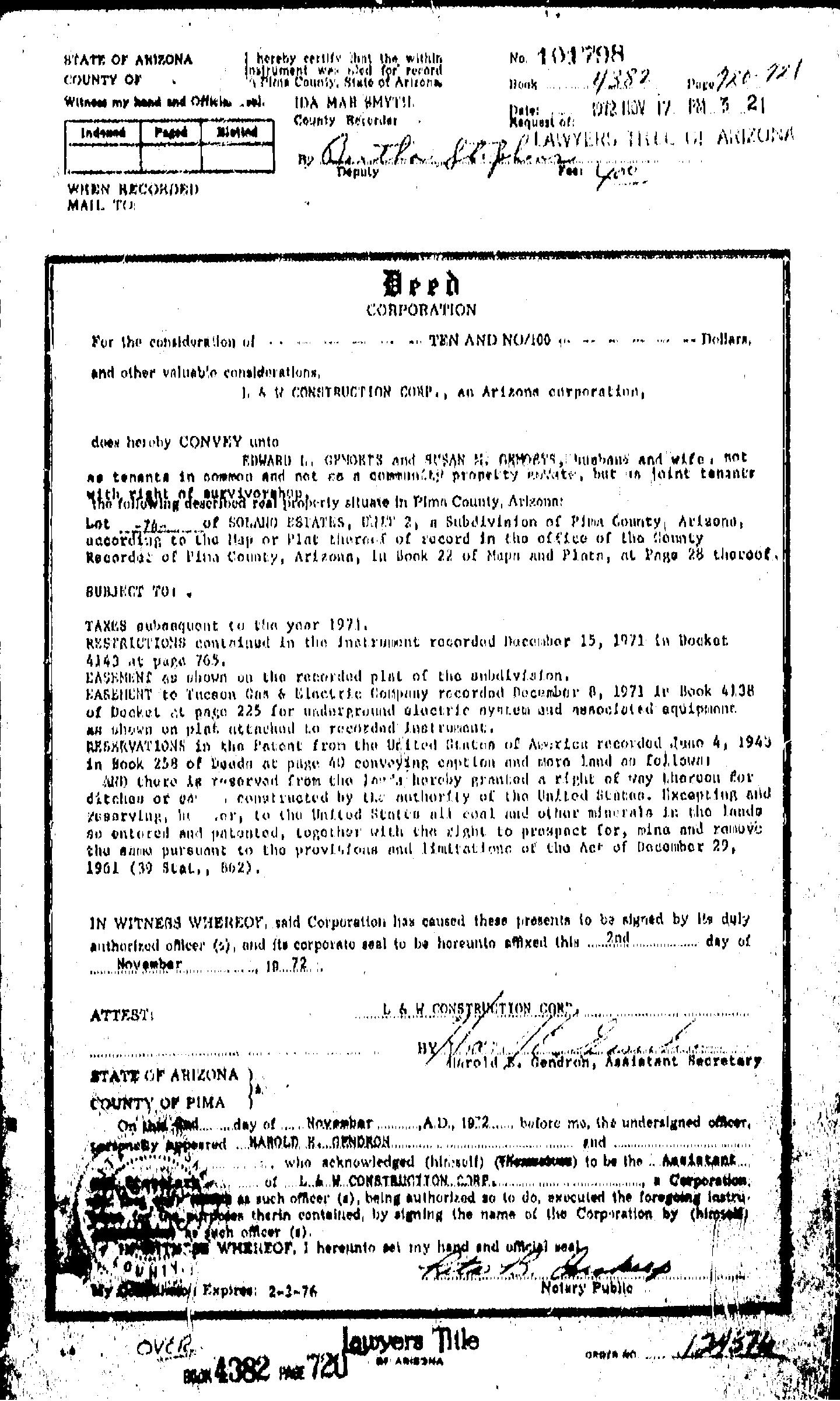 Mailing Address : 9751 E Cinder Ct, Tucson AZ 85748-3342 C011