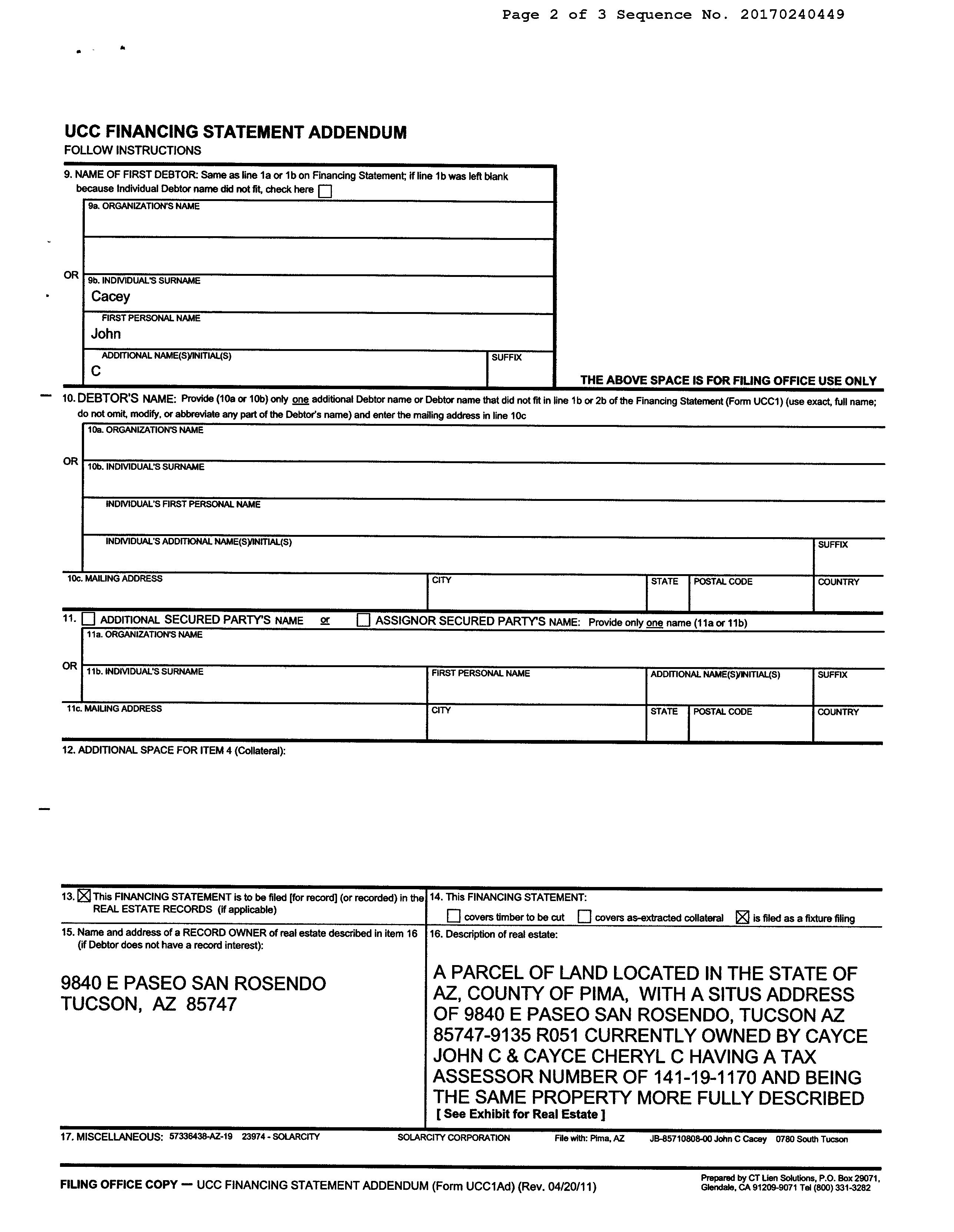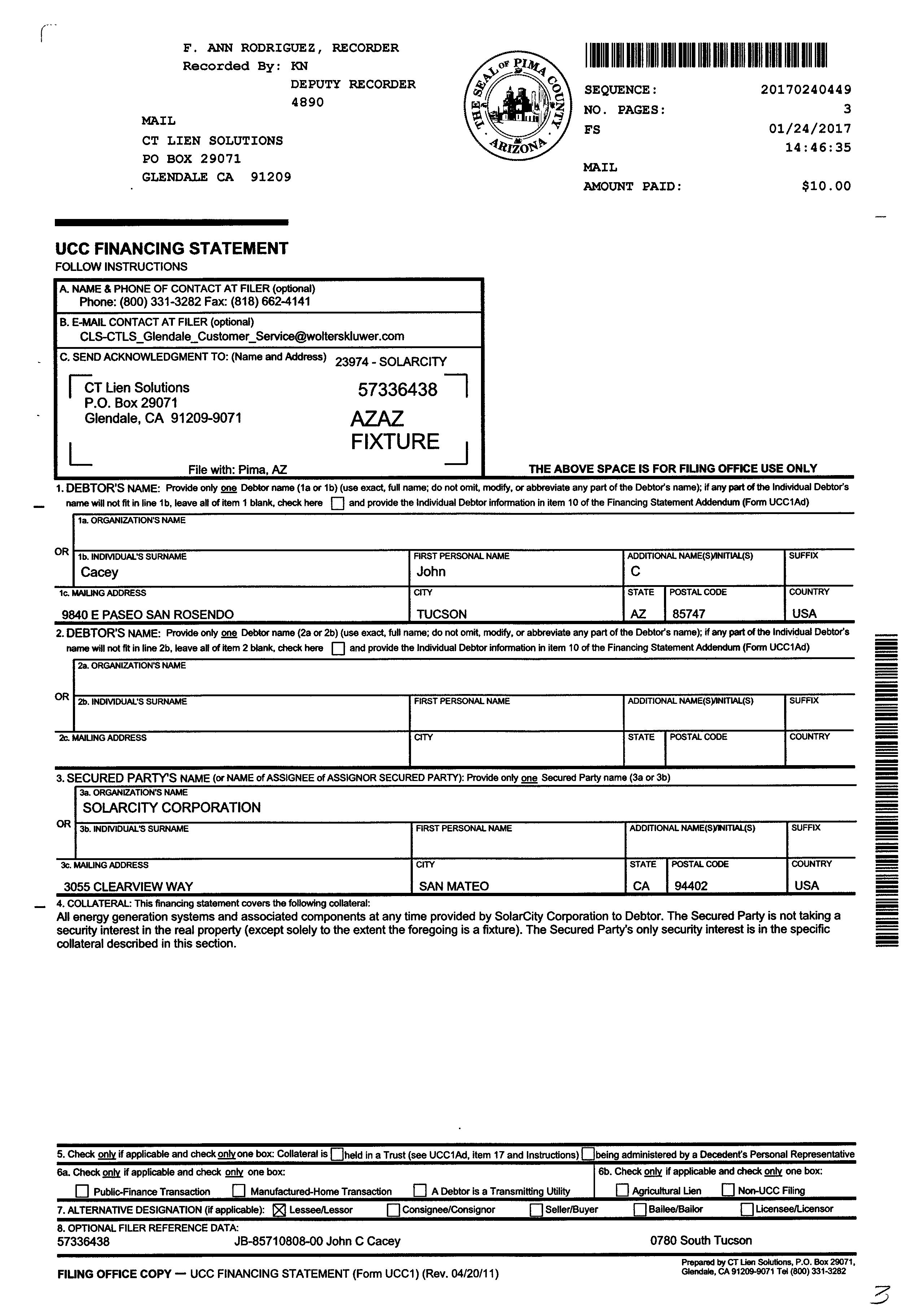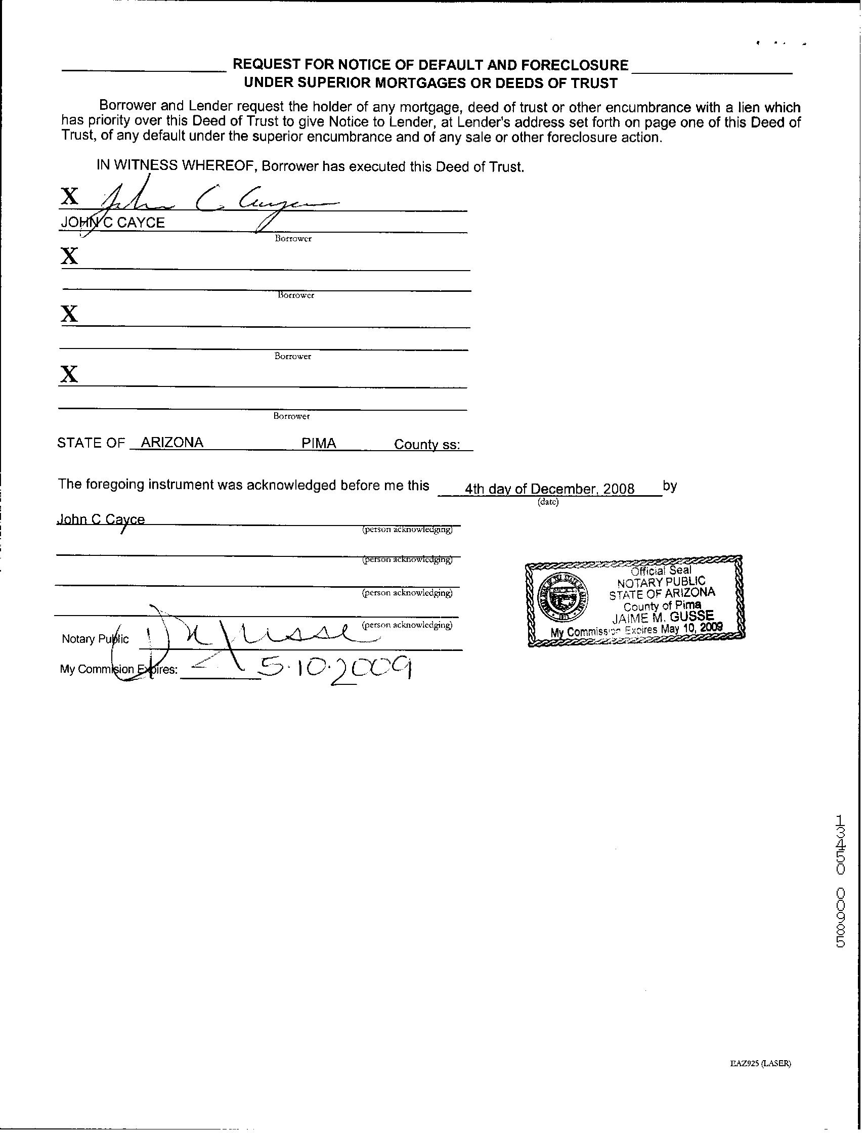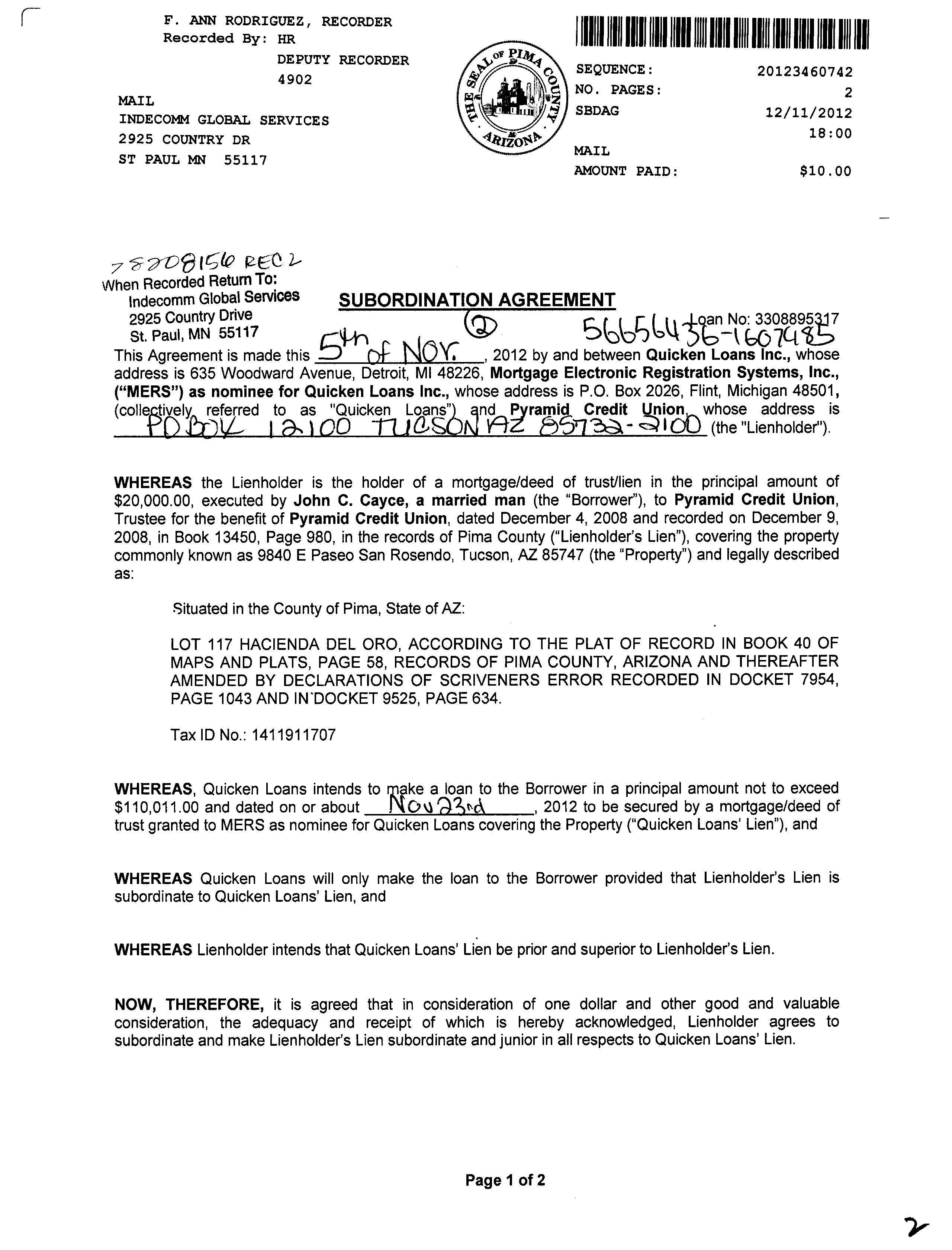 Owner Name : Cayce John C / Cayce Cheryl C Mailing Address : 9840 E Paseo San Rosendo, Tucson AZ 85747-9135 R051
