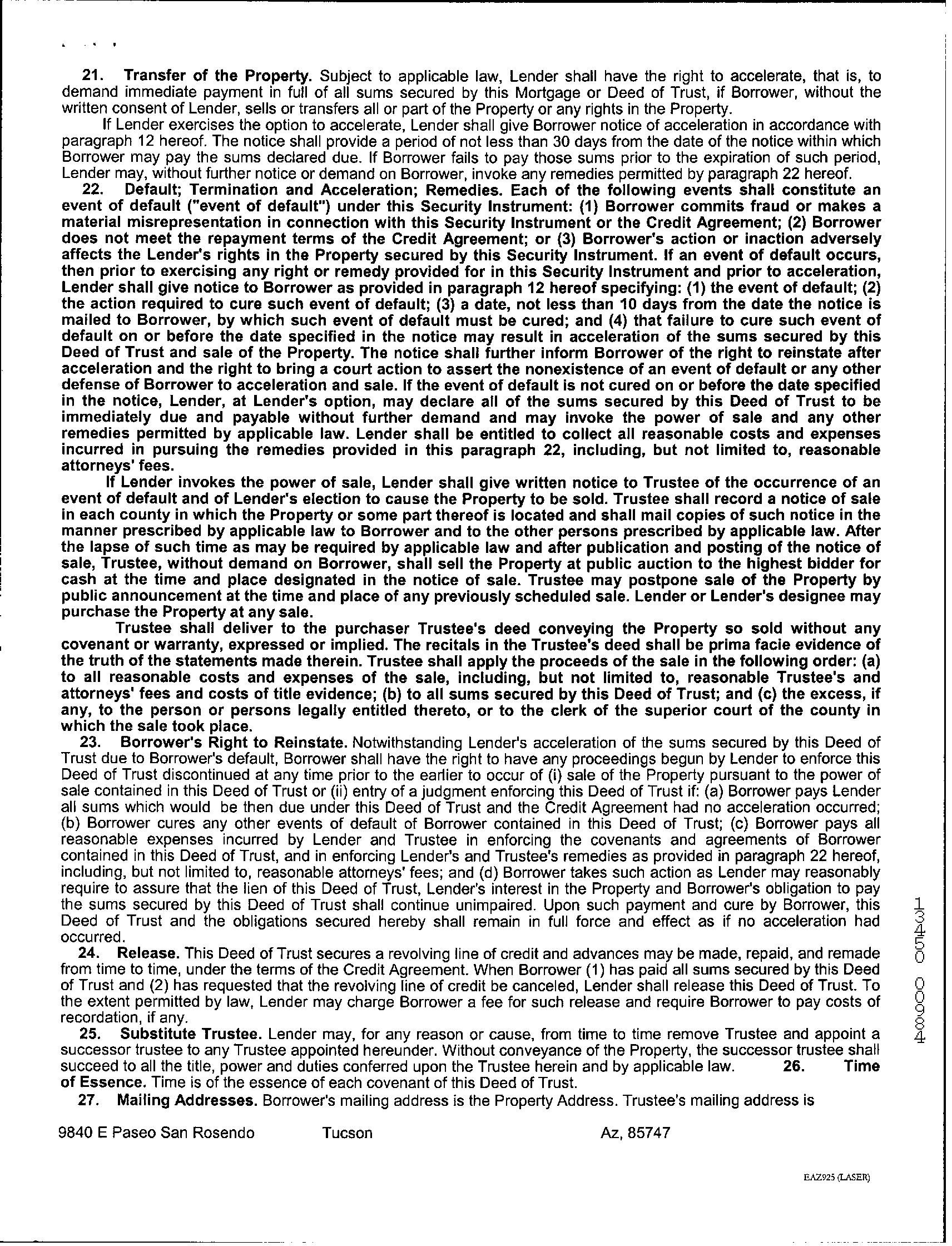 Owner Name: Stephens Mark A Ii /Stephens Roseanna L APN / Alternate APN: 141-20-1300 / Deed Type: Warranty Deed Land Use: Sfr Subdivision / Tract: Hacienda Del Oro / Lot Size: 9,385 Year Built / Eff: 1999 / Rec. Date / Price: 09/30/2021 / $295,000 Living Area: 1,738 # of units: Document #: 2730685 Bedrooms: Pool: Total Tax Value: $171,514 Bath(F/H): / #4 9971 E Paseo San Bernardo Tucson Az 85747