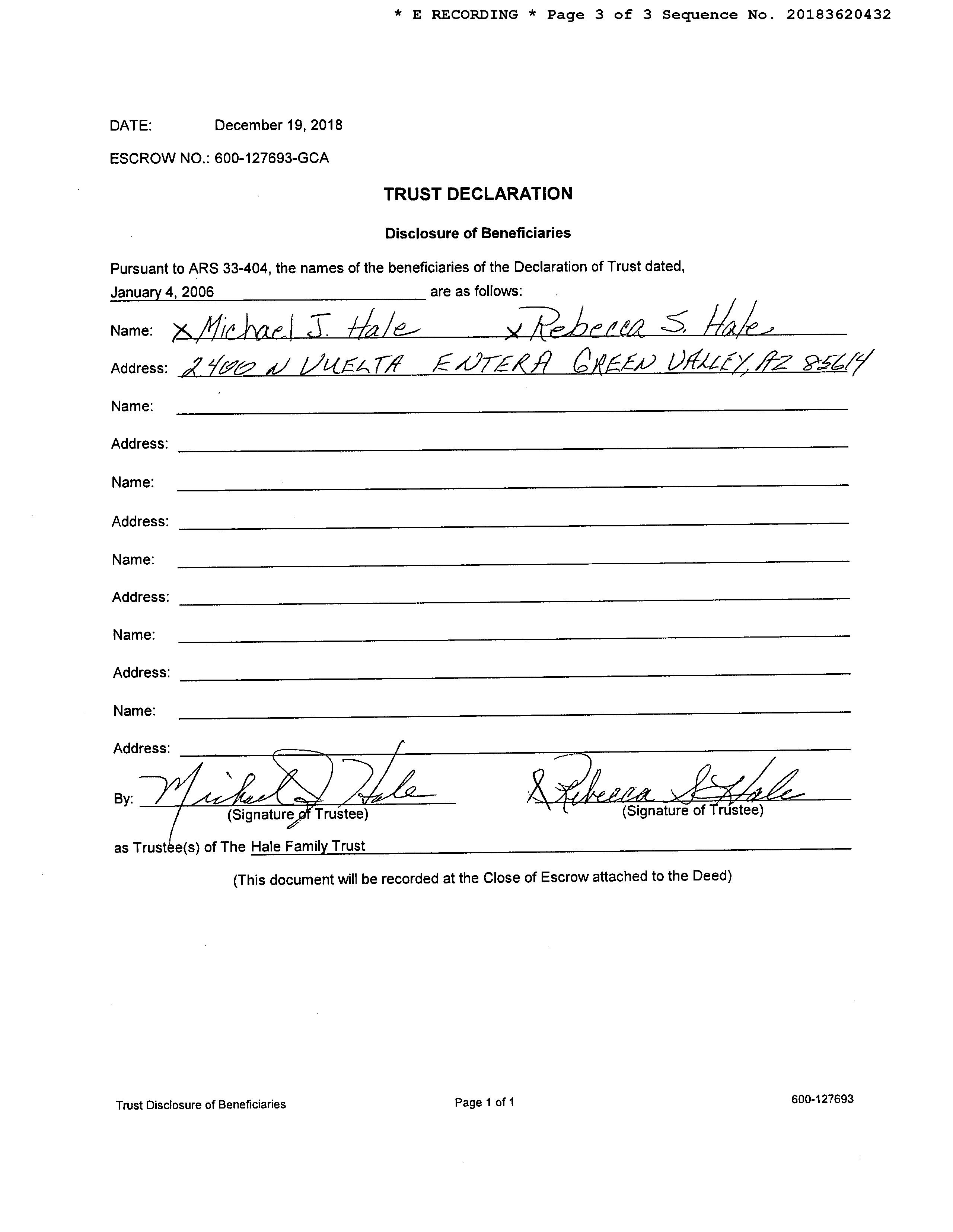Seller Name : Hale Family Trust