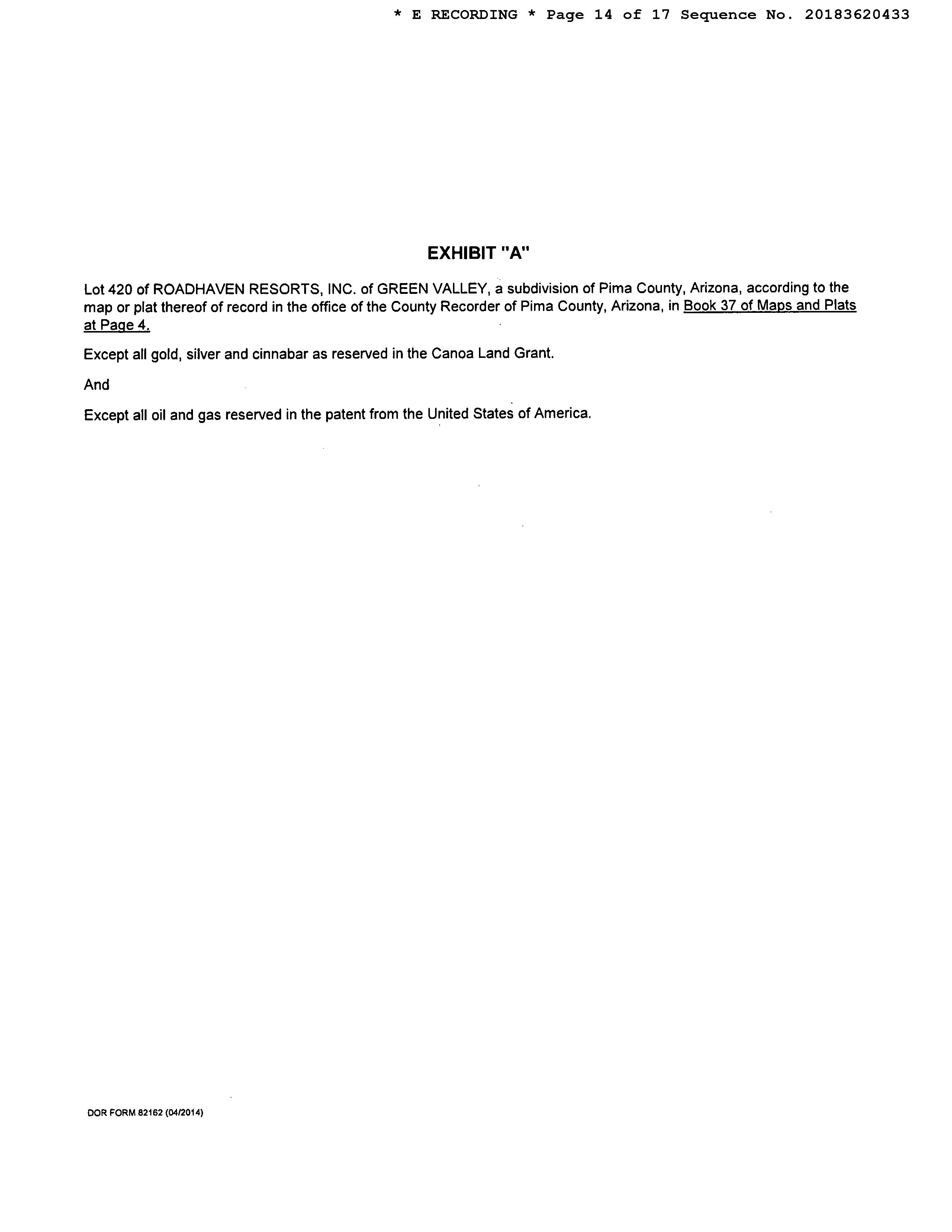 Legal Description : Roadhaven Resorts Inc Of Green Valley Lot 420