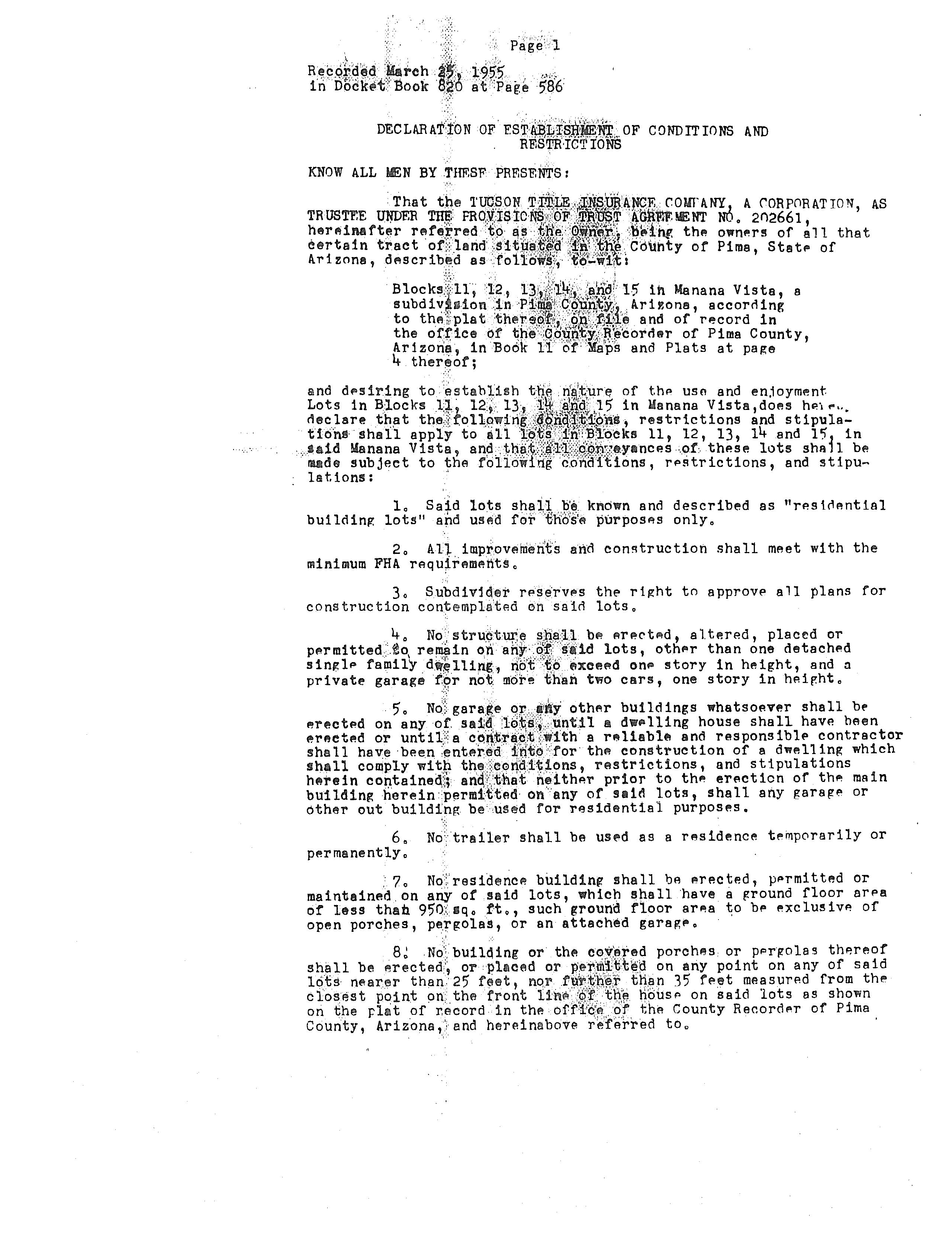 ©2021 First American Financial Corporation and/or its affiliates. All rights reserved. NYSE: FAF 05252610821 COVENANTS, CONDITIONS & RESTRICTIONS PREPARED FOR : First American Title Insurance Company, and the operating divisions thereof, make no express or implied warranty respecting the information presented and assume no responsibility for errors or omissions. First American, the eagle logo, First American Title, and firstam.com are registered trademarks or trademarks of First American Financial Corporation and/or its affiliates. 6325 East Julia Street Tucson, AZ 85710