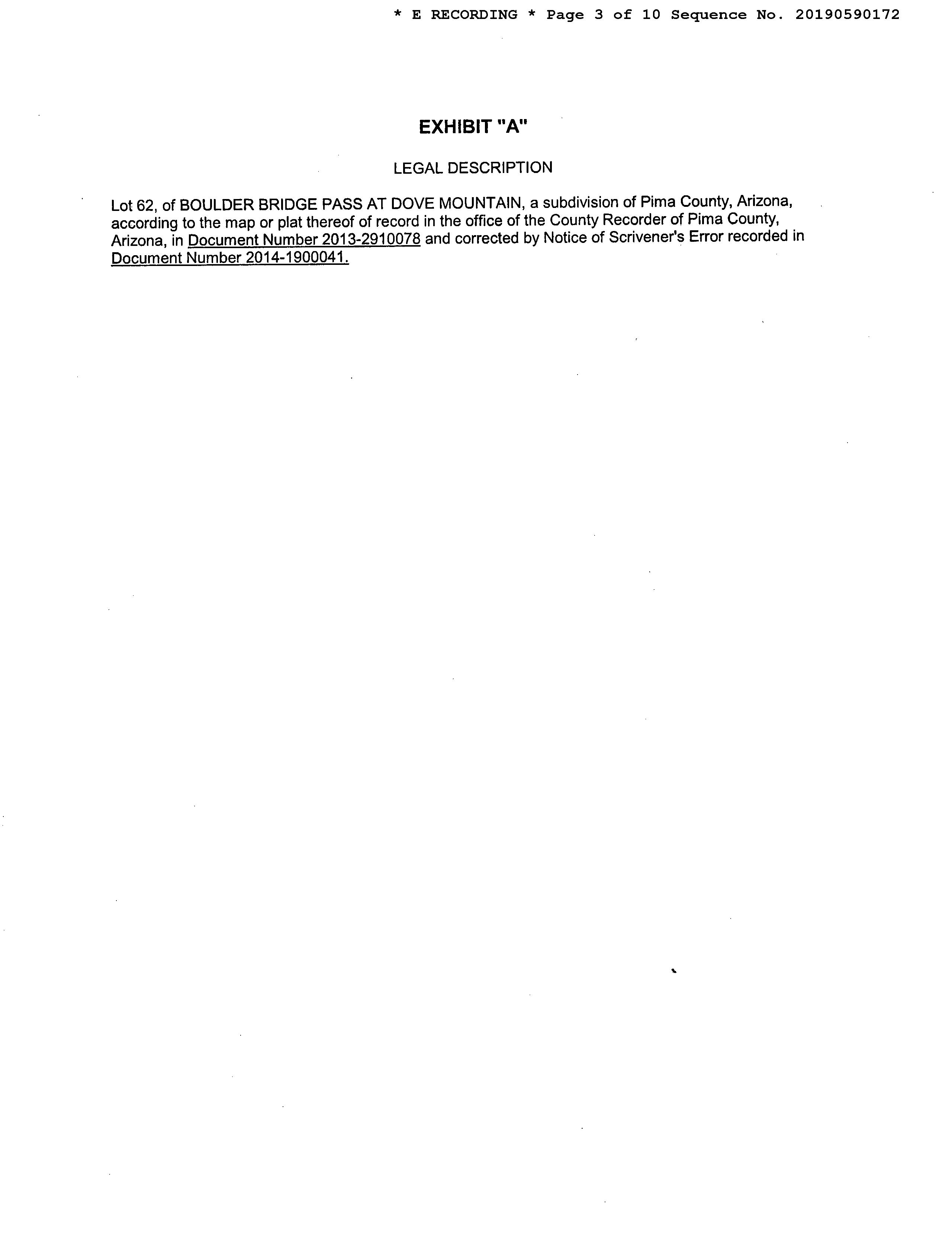 Legal Description : Boulder Bridge Pass At Dove Mountain Lot 62 Sq20132910078