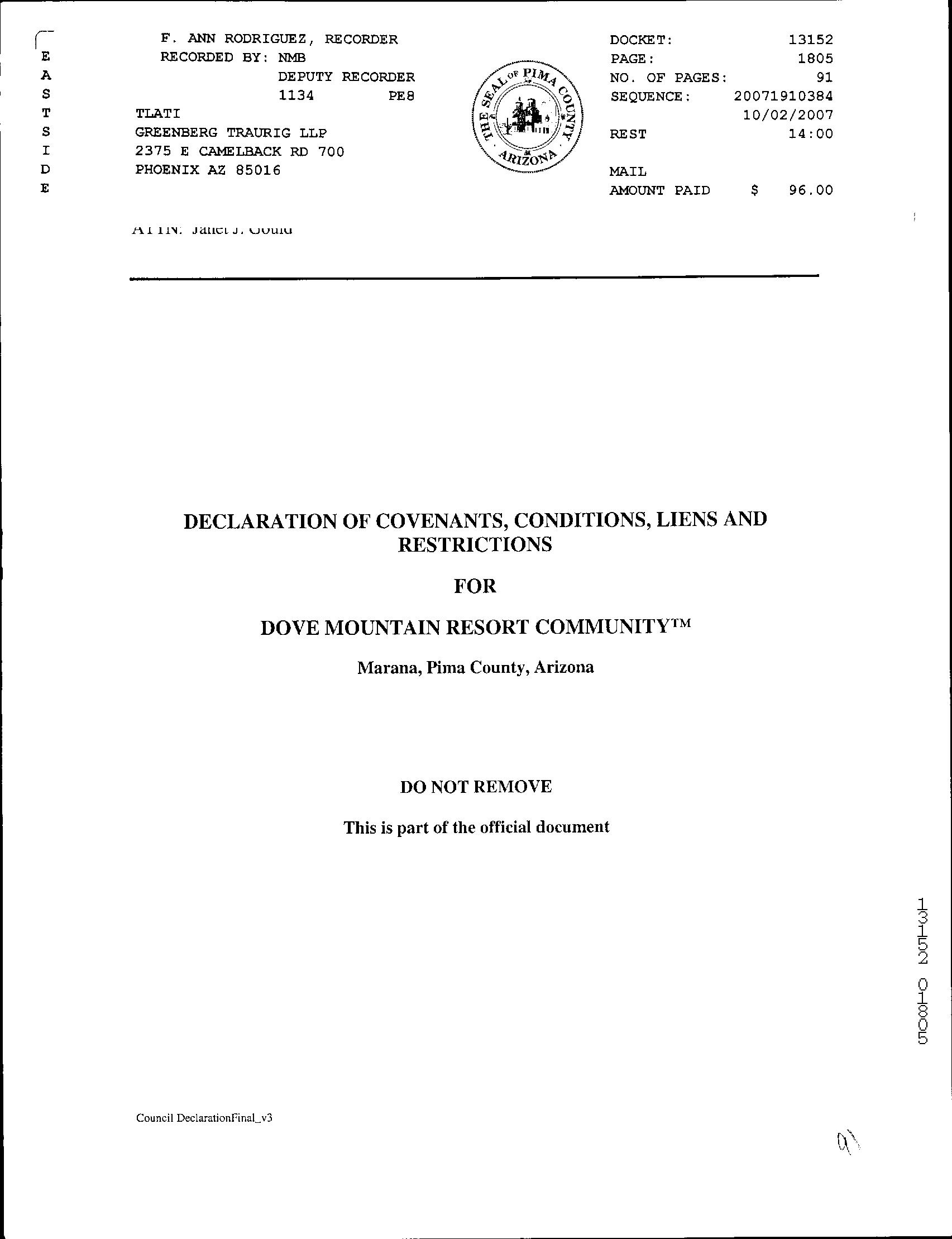 Owner Name: Scheattle John E Jr Li / APN / Alternate APN: 218-34-3090 / Deed Type: Warranty Deed Land Use: Sfr Subdivision / Tract: Del Webb/dove Mountain / Lot Size: 6,453 Year Built / Eff: 2015 / Rec. Date / Price: 03/09/2022 / $528,500 Living Area: 1,858