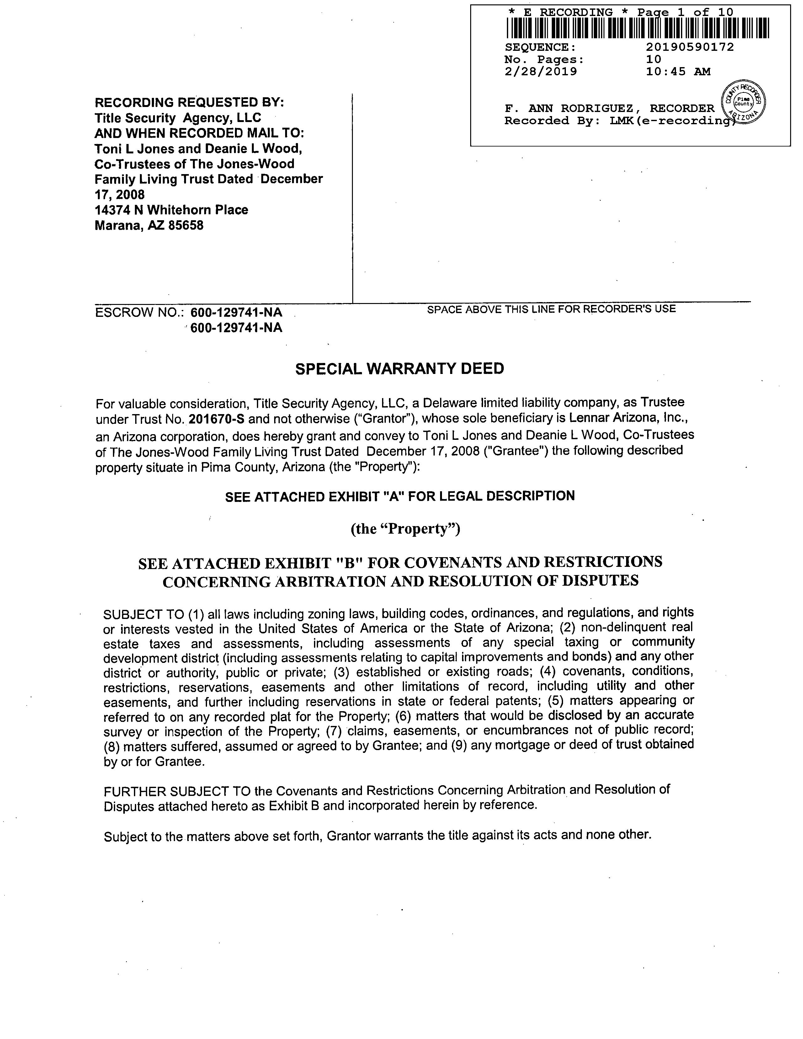 Owner Name: Hurley-campbell Family / APN / Alternate APN: 218-34-3480 / Deed Type: Warranty Deed Land Use: Sfr Subdivision / Tract: Del Webb/dove Mountain / Lot Size: 9,480 Year Built / Eff: 2016 /