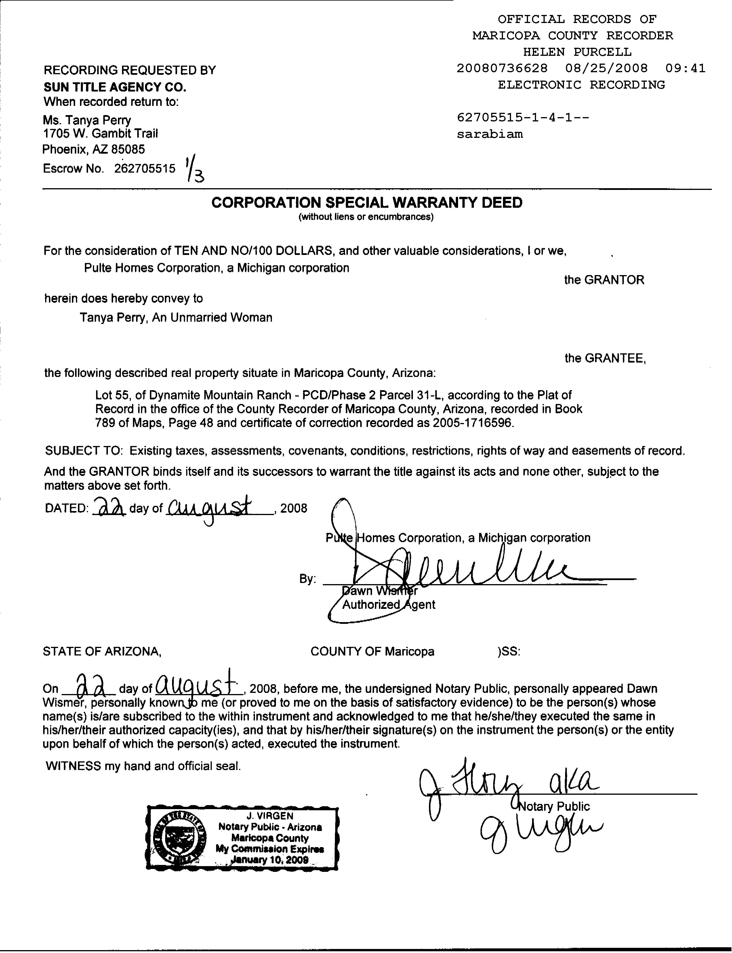 Legal Description : Lot 55 Dynamite Mountain Ranch Pcd Phase 2 Parcel 31-l Mcr 789-48 County : Maricopa, Az