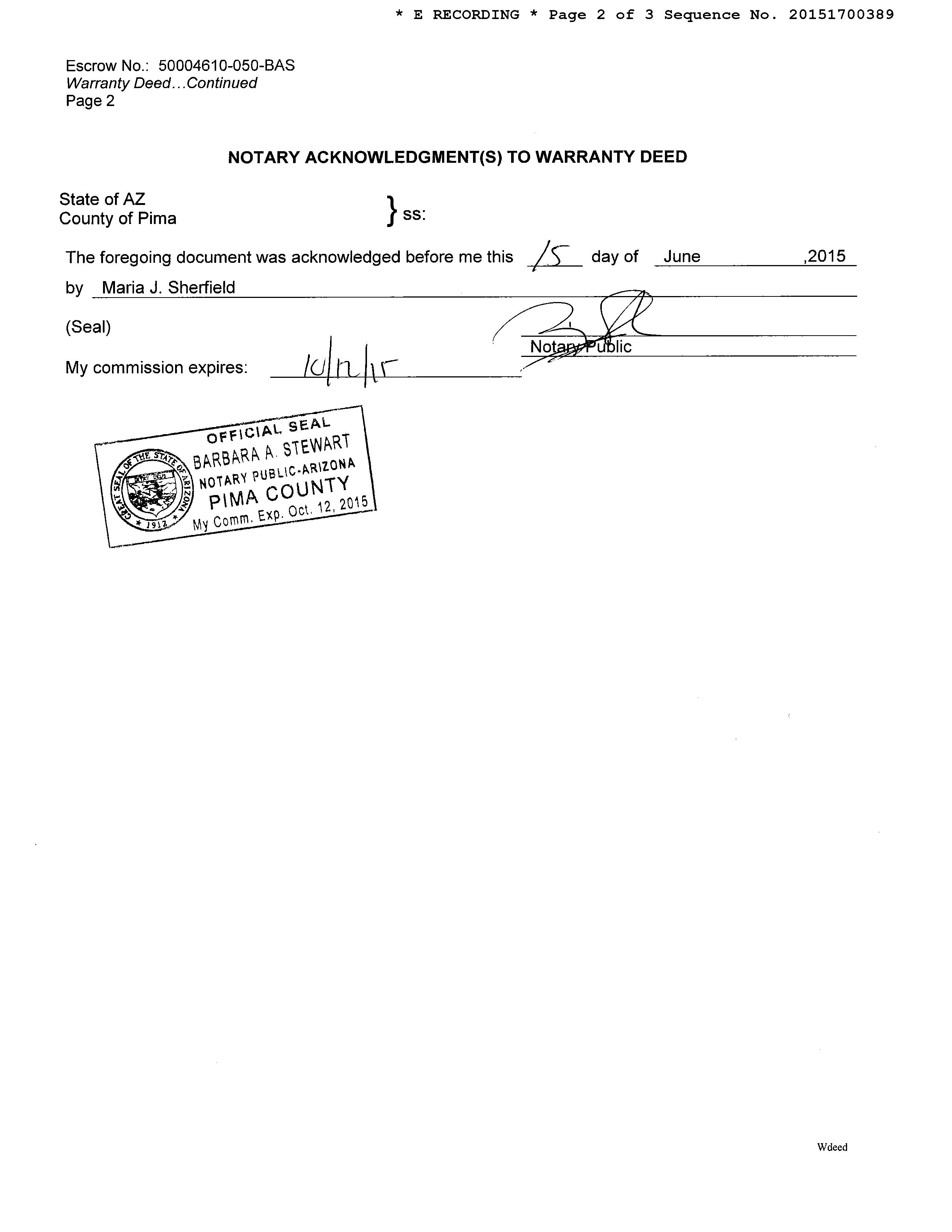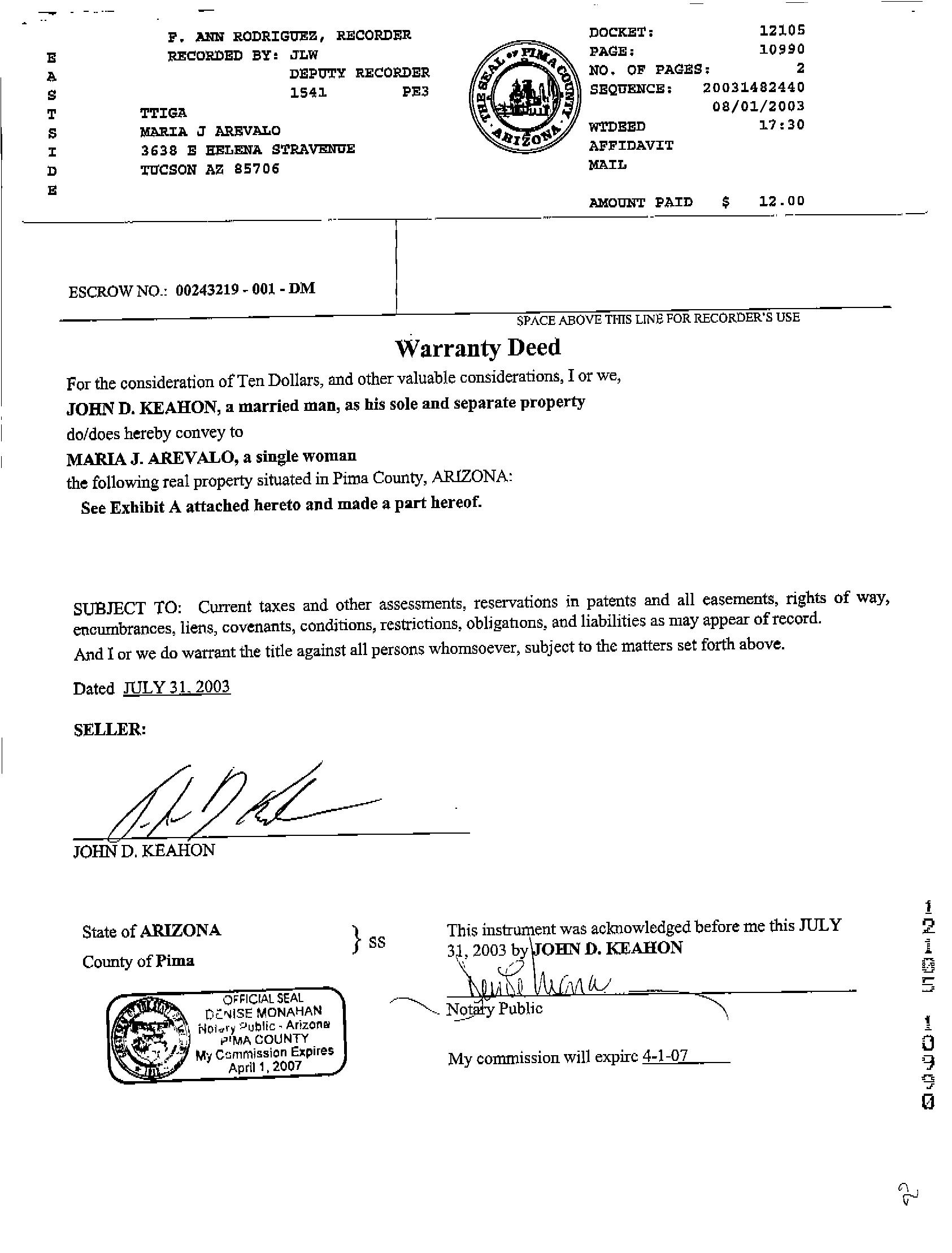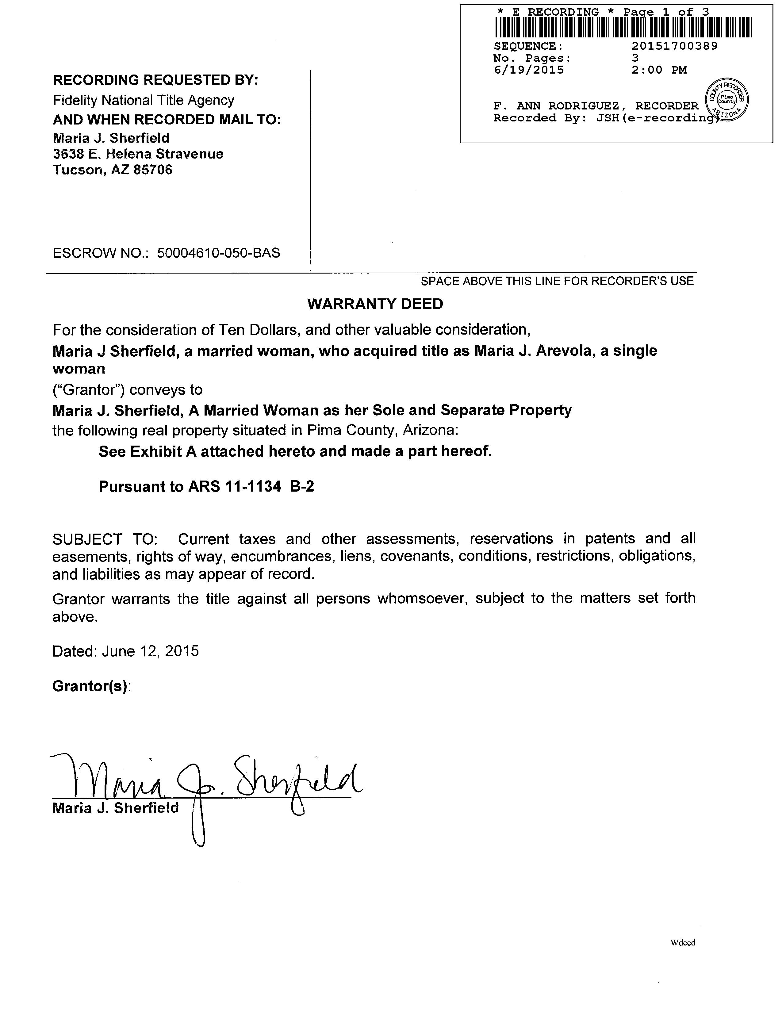 Owner Name : Sherfield Maria J Mailing Address : 3638 E Helena Stra, Tucson AZ 85706-1928 C008