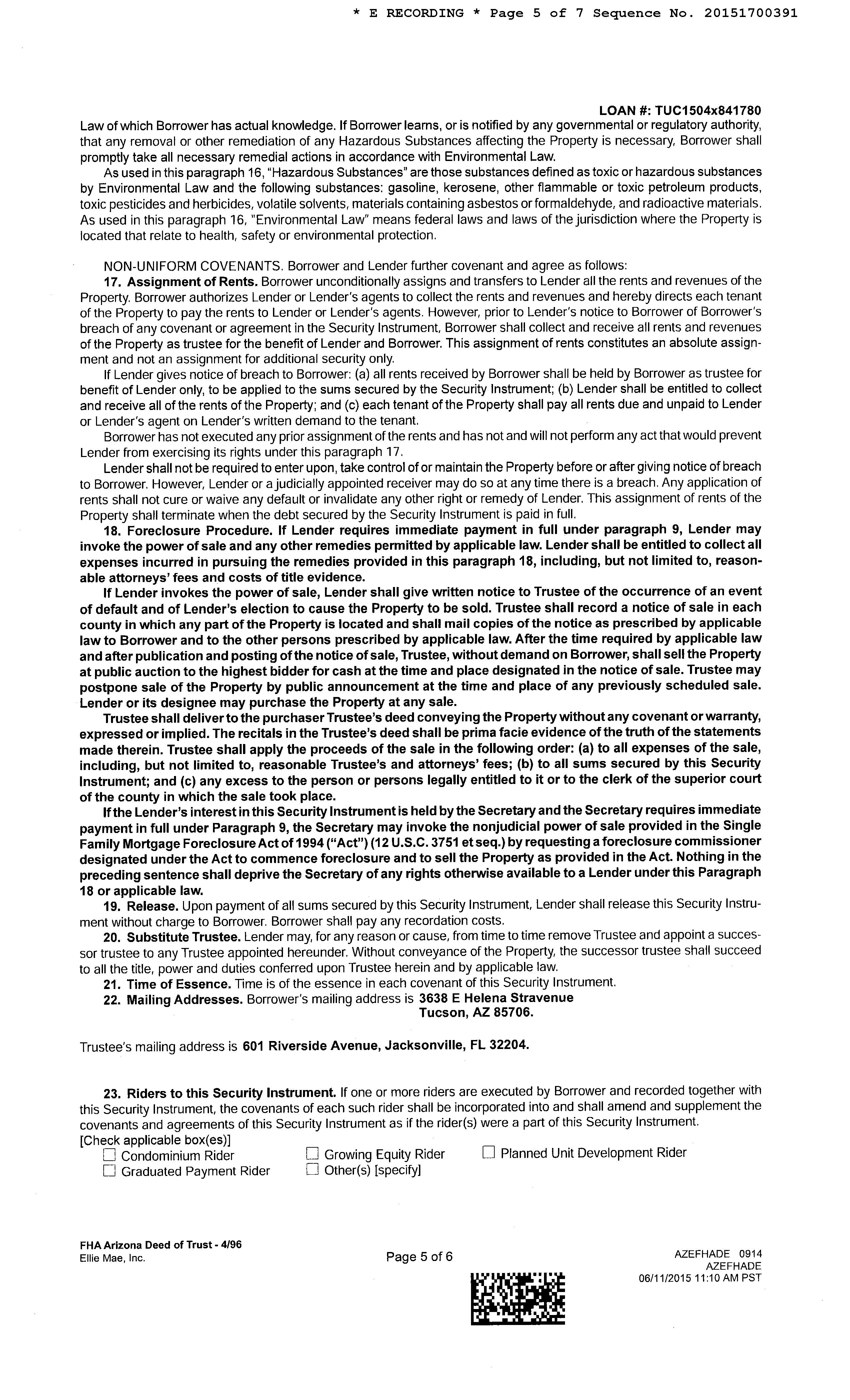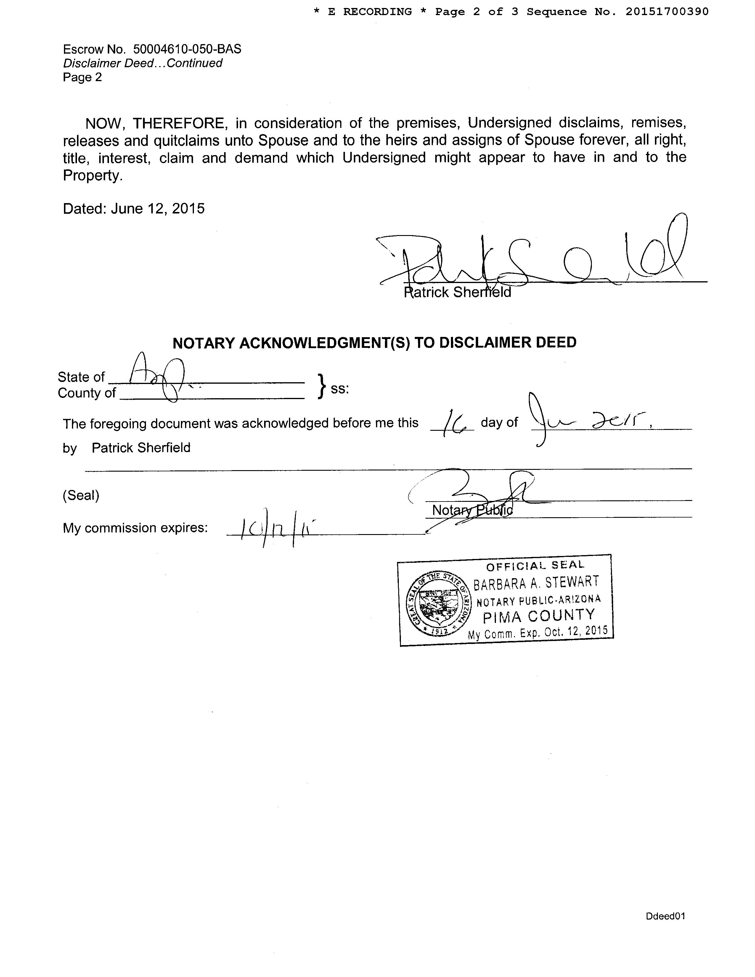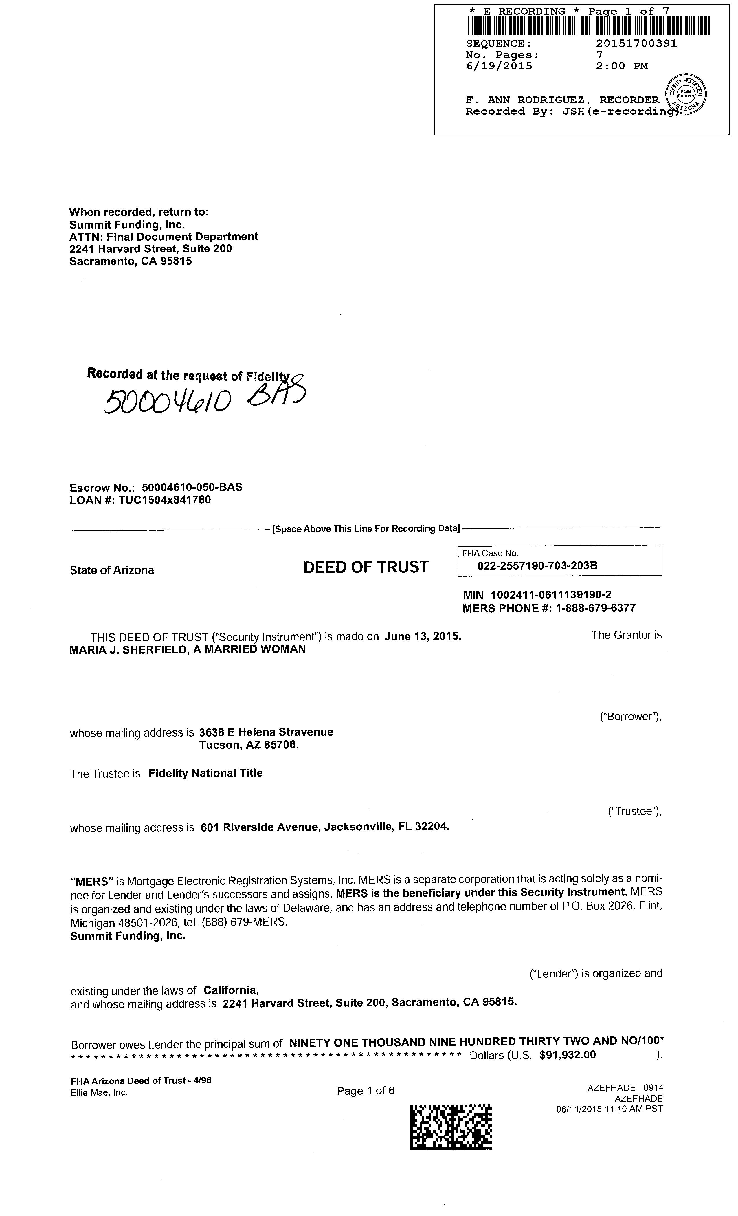Owner Name : Sherfield Maria J Mailing Address : 3638 E Helena Stra, Tucson AZ 85706-1928 C008