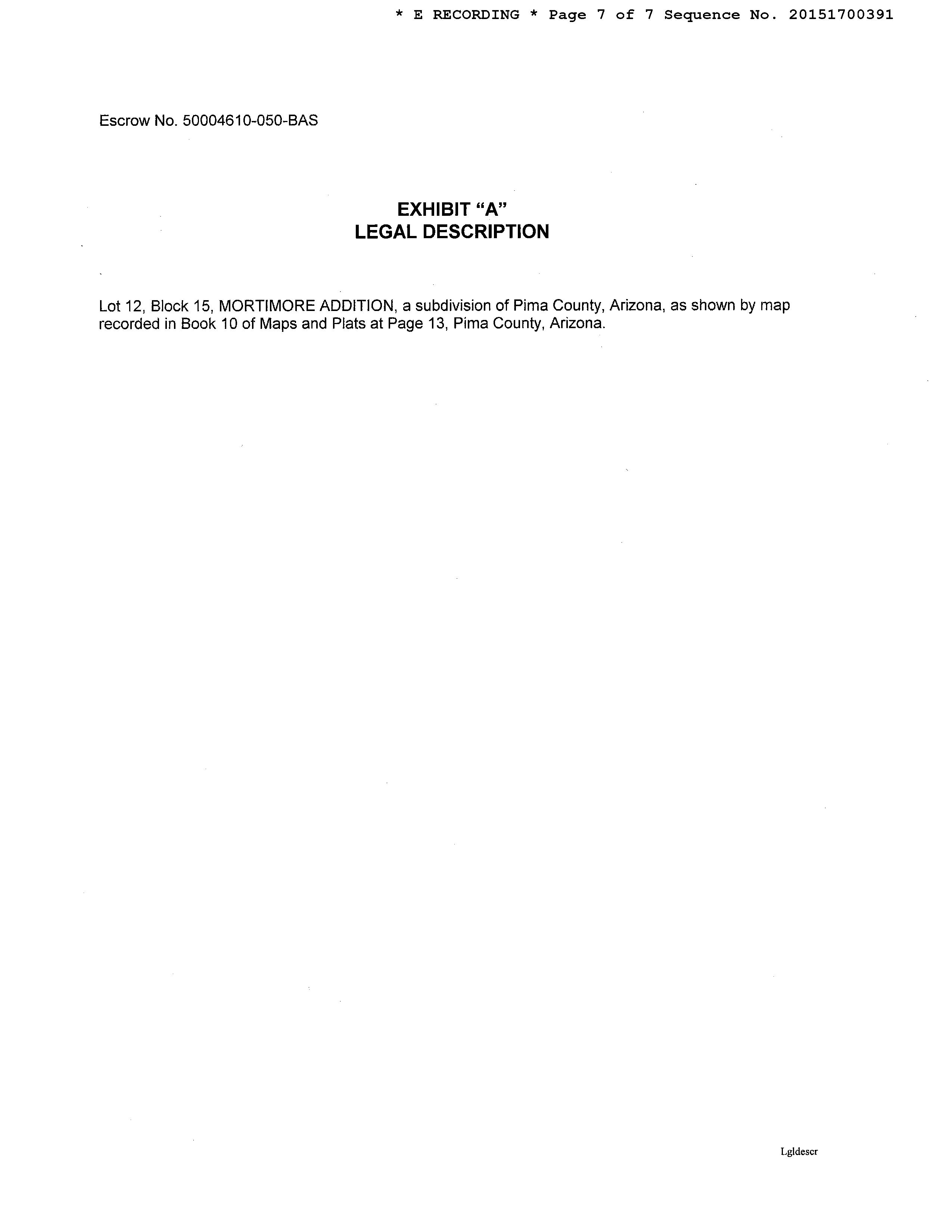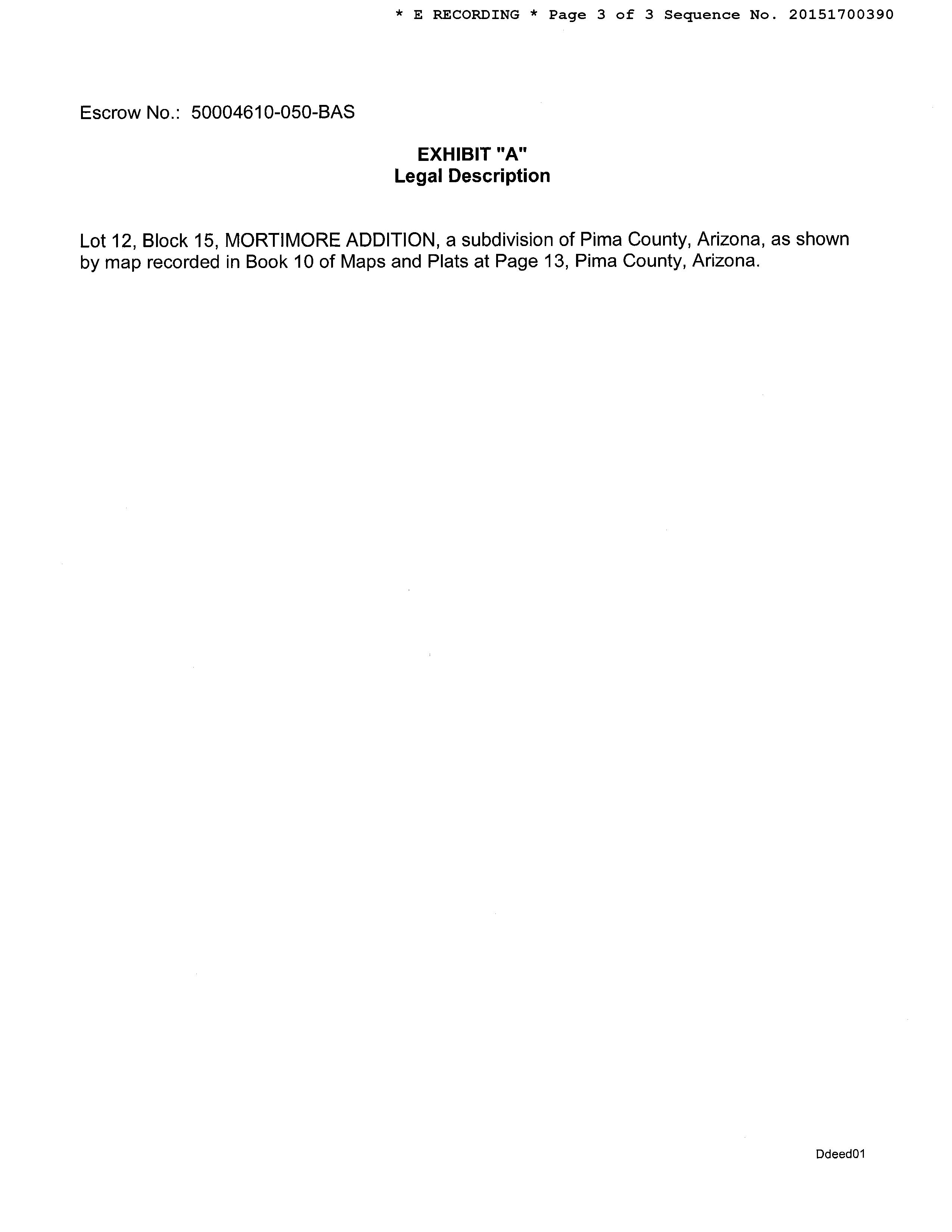 Owner OccupiedIndicator : O Location Information Legal Description : Mortimore Lot 12 Blk 15 County : Pima, Az Market Area : 111 Census Tract / Block : 41.17 / 3 APN : 140-06-0650