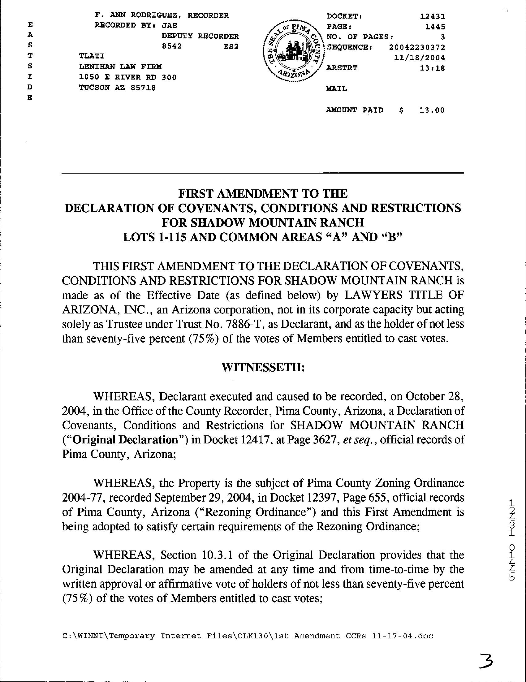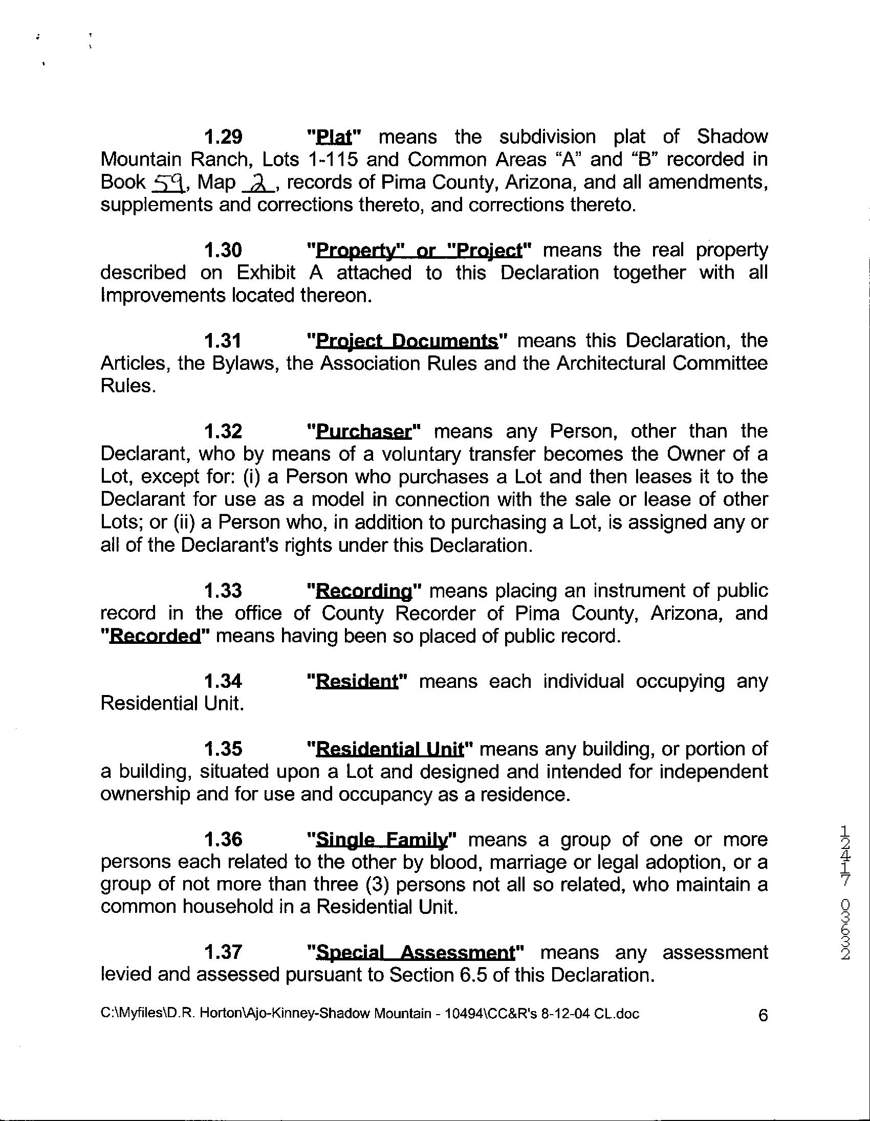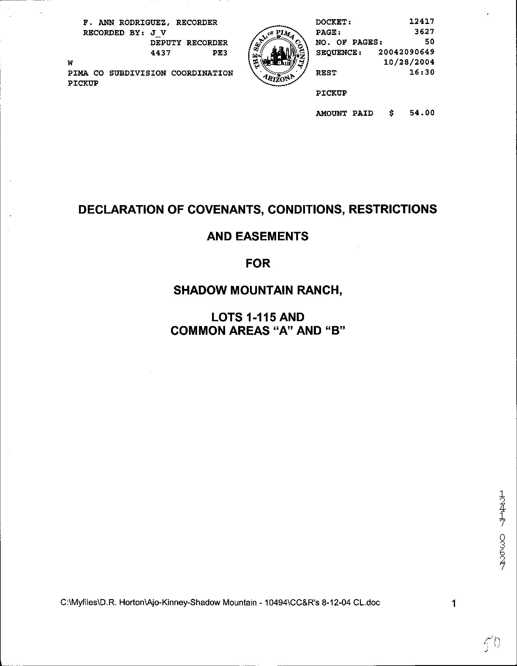 Legal Description : Shadow Mountain Ranch Lot 56 County : Pima, Az