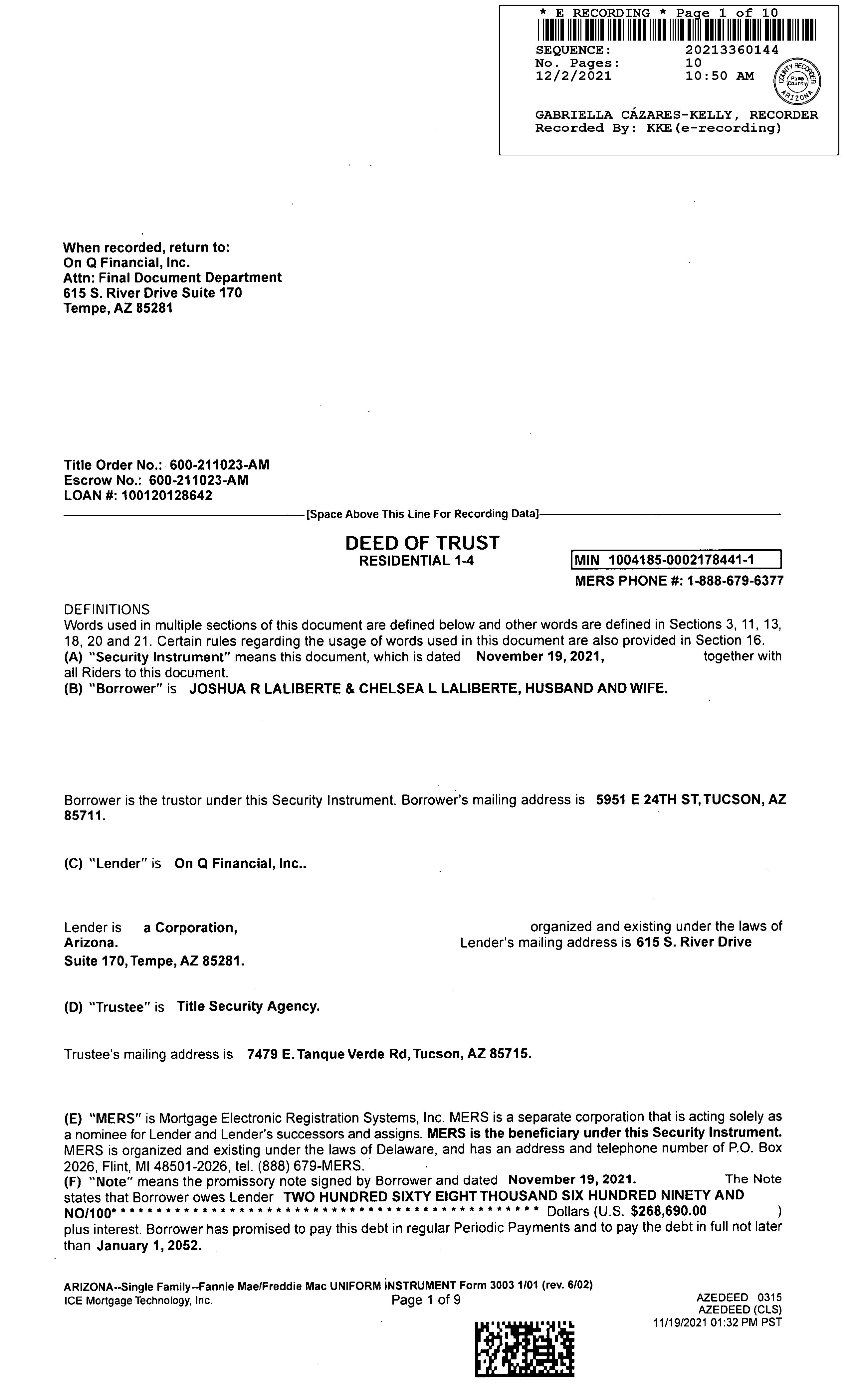 Recording/Sale Date : 12/02/2021 / 11/18/2021 1st Mtg Document # : 3360144