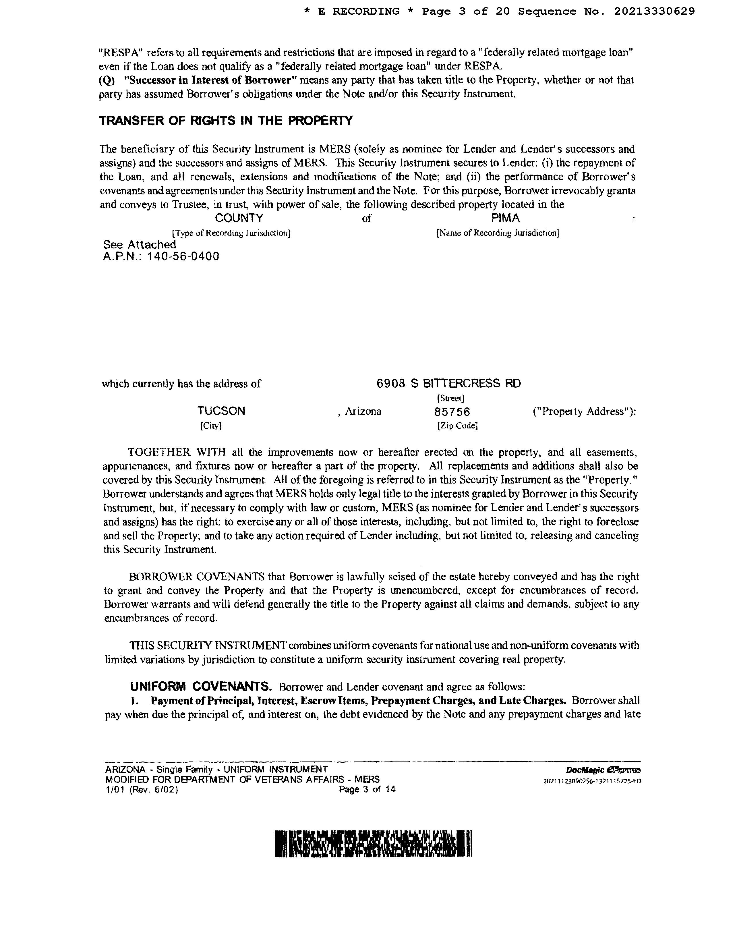 Mailing Address : 6908 S Bittercress Rd, Tucson AZ 85756-5147 C026