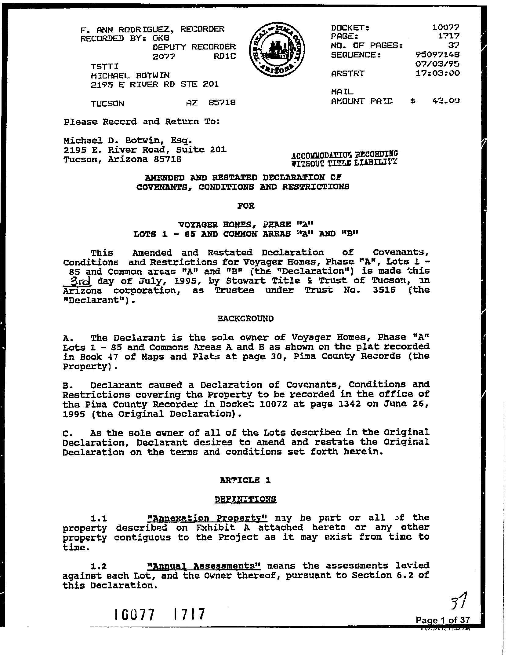 Subject Property : 7415 E Maritime Dr Tucson AZ 85756 Owner Information Owner Name : Alverson Mailing Address : 7415 E Maritime Dr, Tucson AZ 85756-9151 R129 Vesting Codes : / / Living Trust Owner OccupiedIndicator : O Location Information Legal Description : Voyager Homes - Phase C Lot 173 County : Pima, Az APN : 141-23-1800 Census Tract / Block : 41.33 / 1 Subdivision : Voyager Homes Ph C Township-Range- Sect : 15S-15E-29 Map Reference : 29-15S-15E Legal Book/Page : 50-98 School District : Vail Legal Lot : 173 Munic/Township : Vail Market Area : 610 Owner Transfer Information Recording/Sale Date : 03/24/2005 / 03/18/2005 Deed Type : Warranty Deed Document # : 12516-6426 Last Market Sale Information Recording/Sale Date : 12/10/2004 / 11/00/2004 Deed Type : Warranty Deed Sale Price : $182,500 Price Per SqFt : $141.58 Document # : 12446-3536 Title Company : First American Title Seller Name : Wilder Jane Prior Sale Information Prior Rec/Sale Date : 04/17/2001 / 04/00/2001 Prior Doc Number : 11529-843 Prior Sale Price : $142,835 Prior Deed Type : Joint Tenancy Deed Customer Name : Kariann Keomaka Customer Company Name : First American Title Insurance Company Prepared On : 08/22/2022 © 2022 CoreLogic. All rights reserved