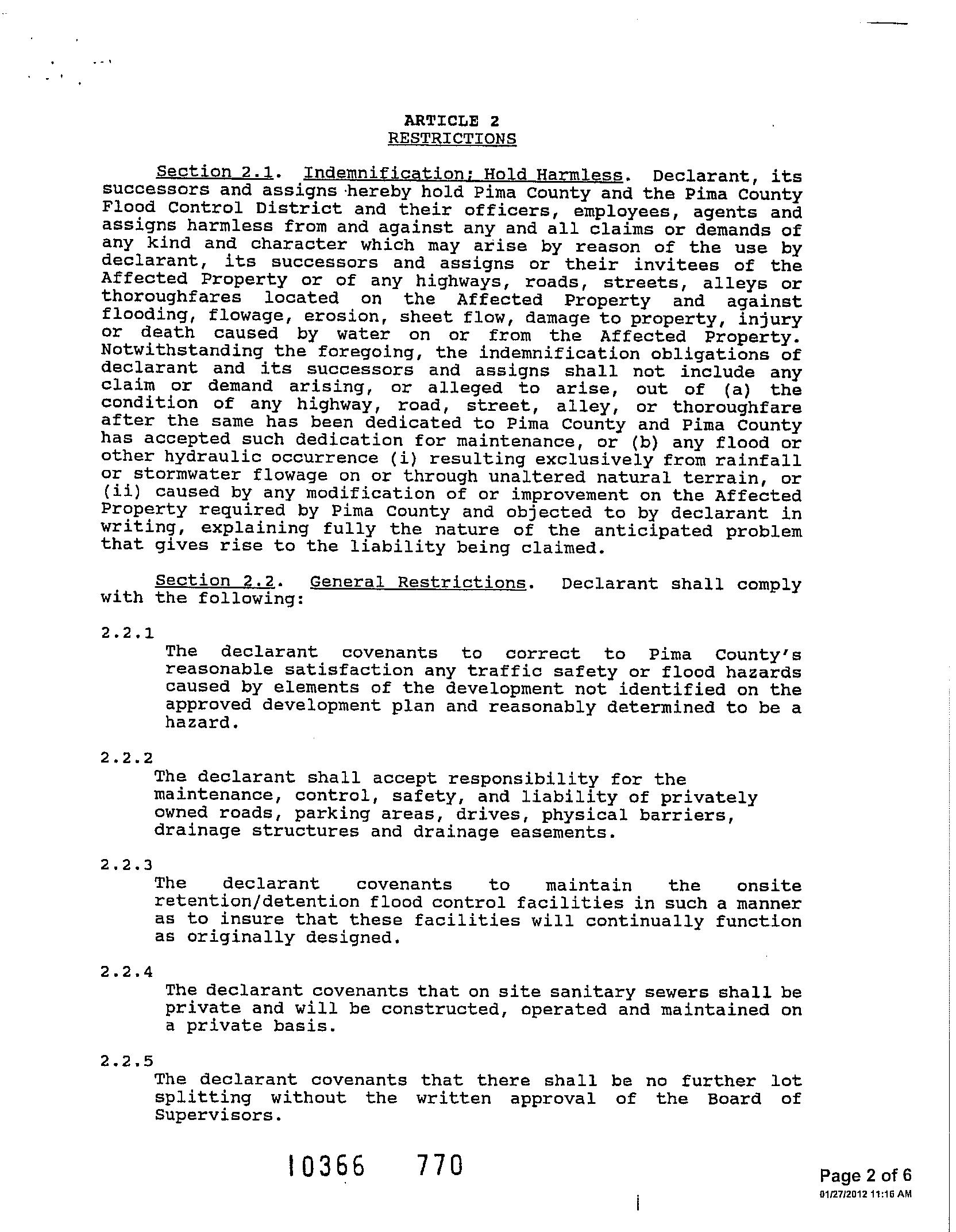 ConditionsCovenants,&Restrictions Thank you for the opportunity to be of service. Restrictions indicating a preference, limitation or discrimination based on race, color, religion, sex, handicap, familial status, or national origin are hereby deleted to the extent such restrictions violate 42 USC 3604(c). This information is furnished without fee and without benefit of a complete title search. No liability is assumed by First American Title or Title Security. If it is desired that liability be assumed, you may apply for a policy of title insurance with First American Title Insurance Company.