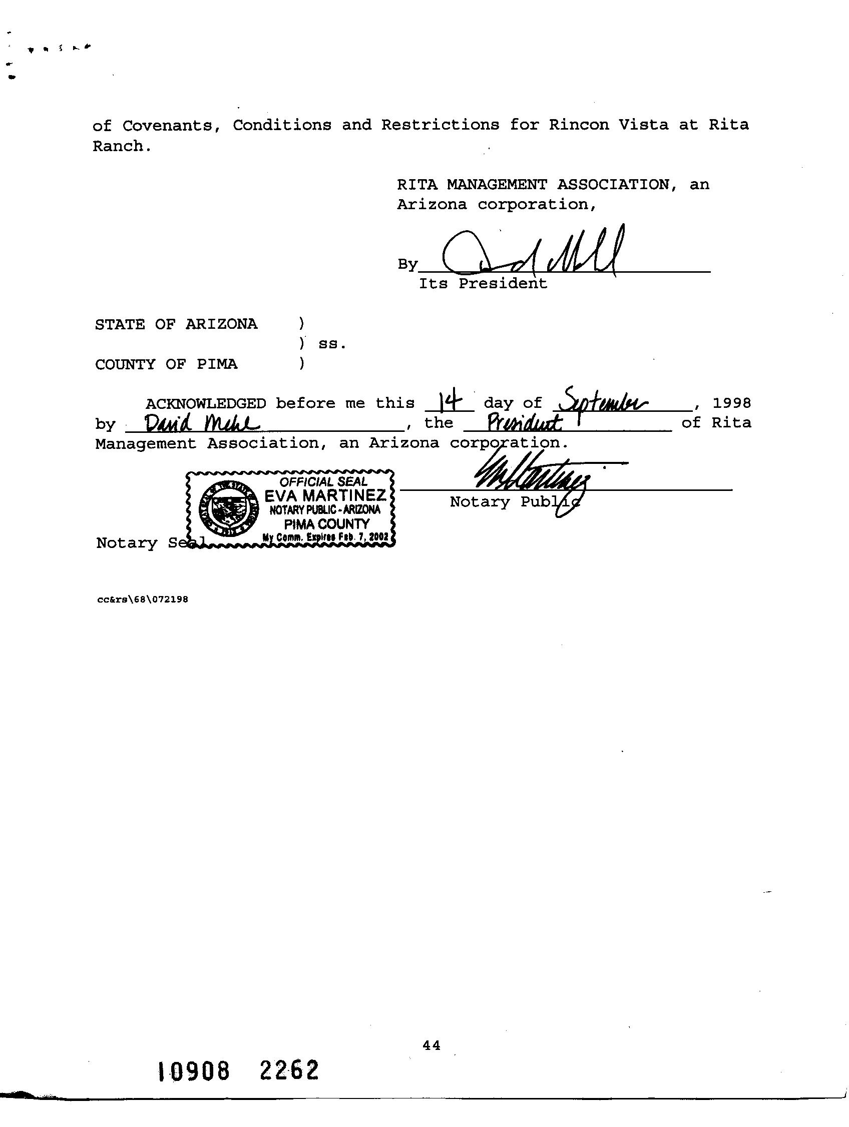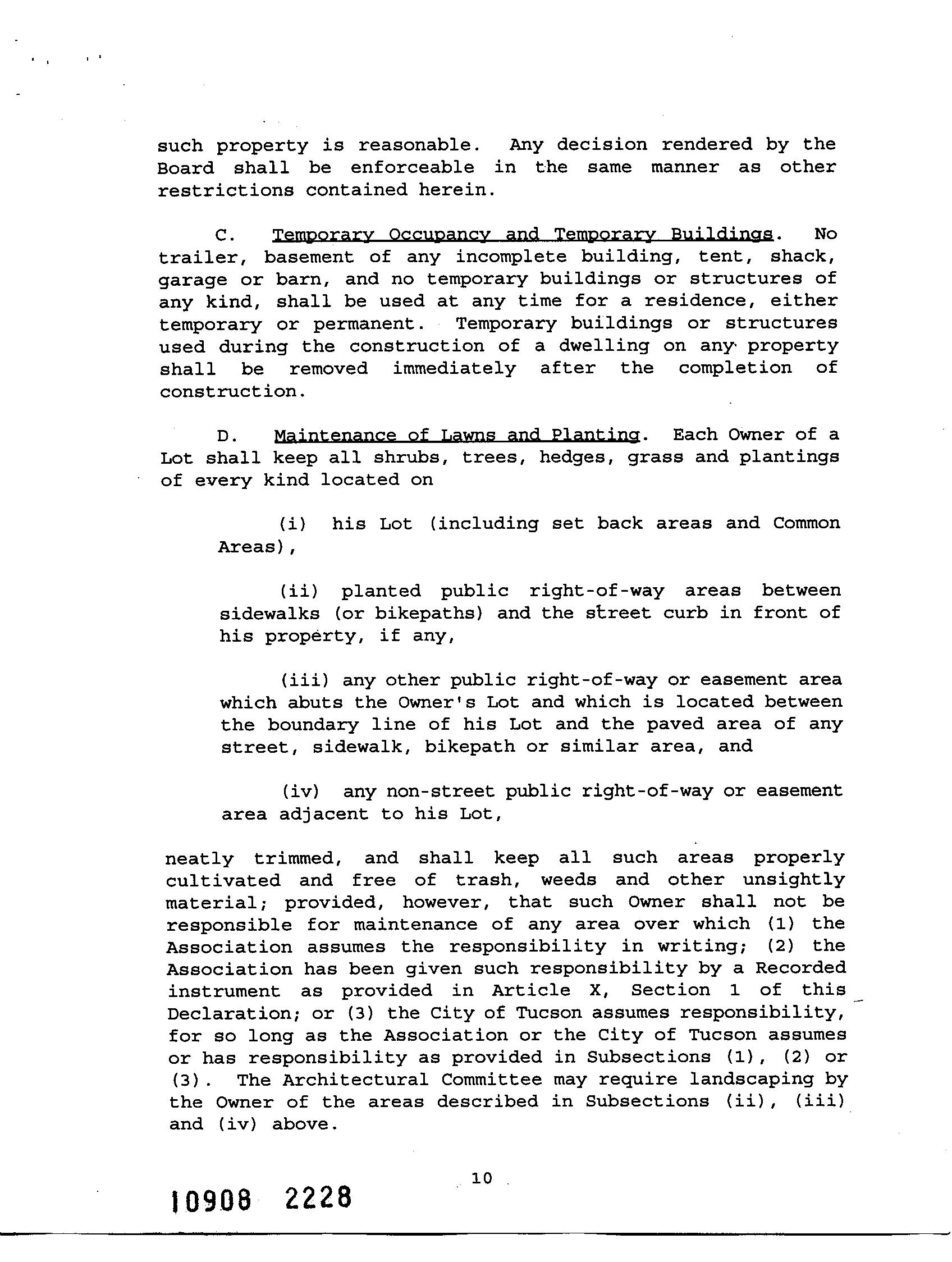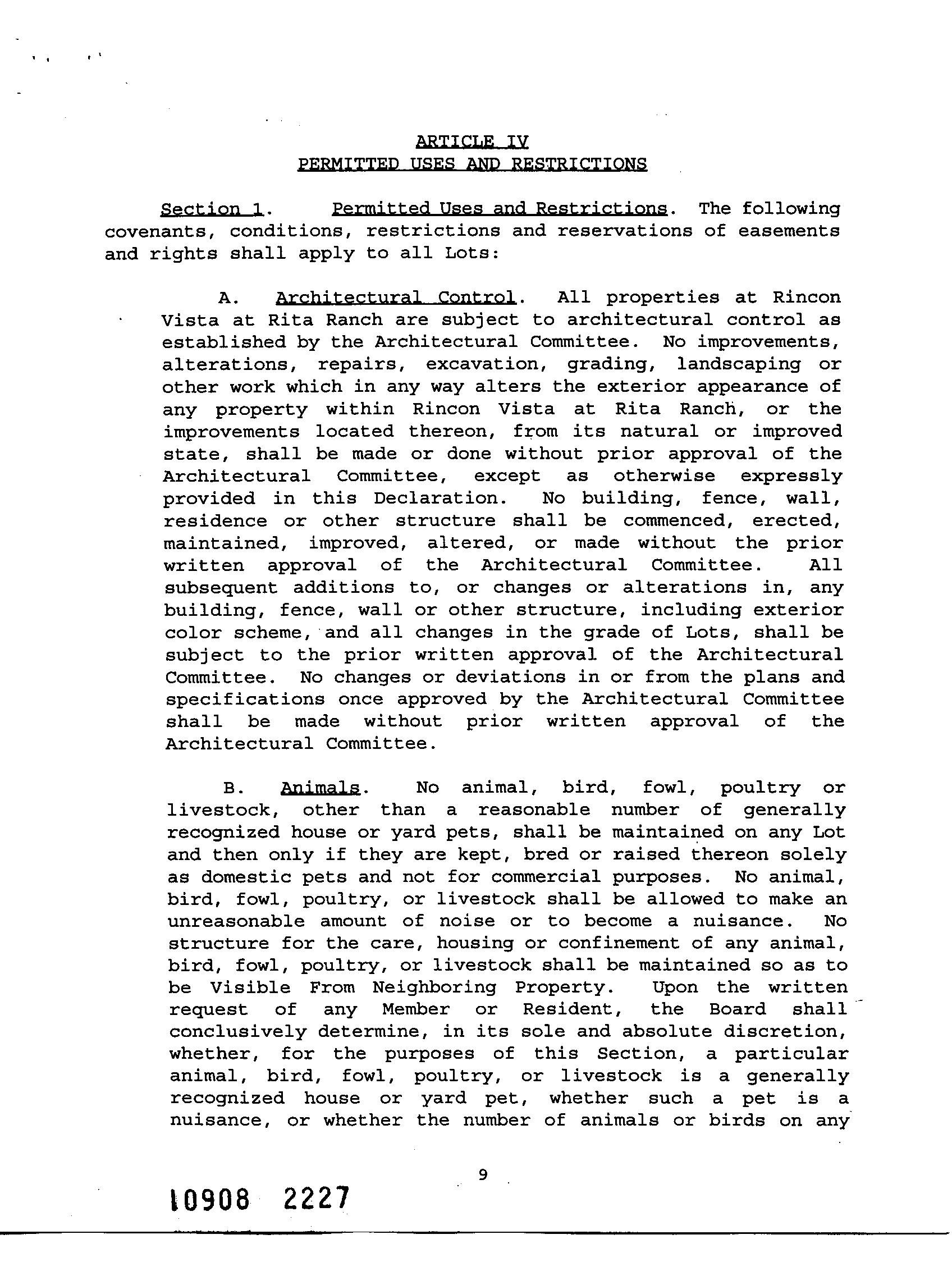 ConditionsCovenants,&Restrictions Thank you for the opportunity to be of service. Restrictions indicating a preference, limitation or discrimination based on race, color, religion, sex, handicap, familial status, or national origin are hereby deleted to the extent such restrictions violate 42 USC 3604(c). This information is furnished without fee and without benefit of a complete title search. No liability is assumed by First American Title or Title Security. If it is desired that liability be assumed, you may apply for a policy of title insurance with First American Title Insurance Company.