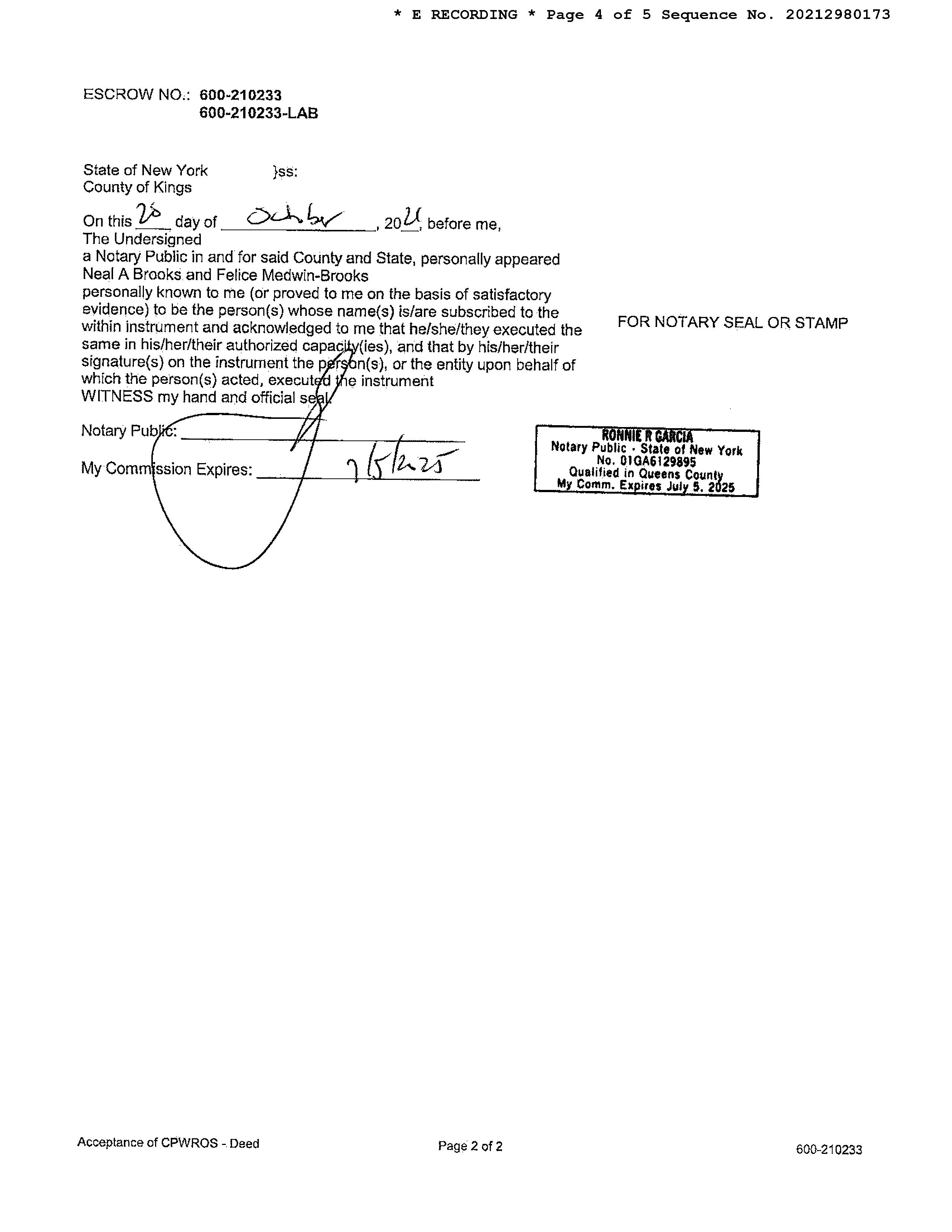 Owner Name: Brooks Neal A /Brooks Medwin Felice Cp