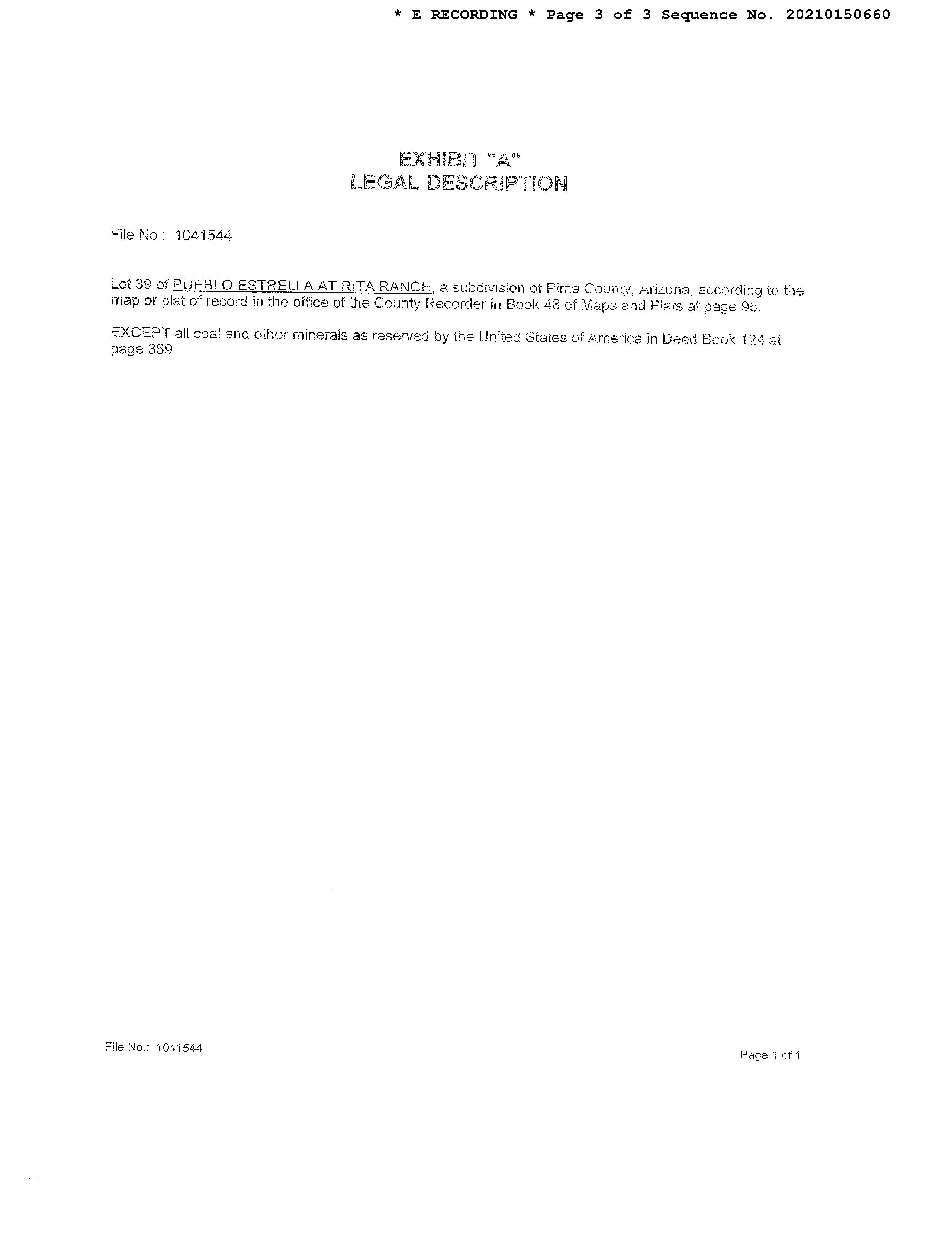 Legal Description : Pueblo Estrella At Rita Ranch Lot 39