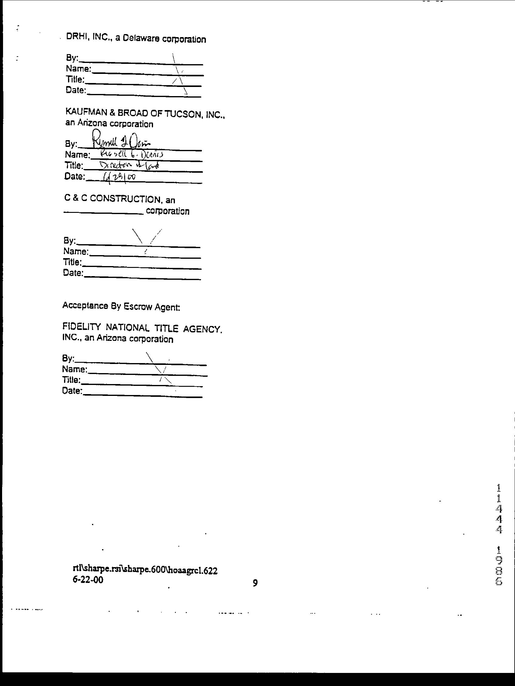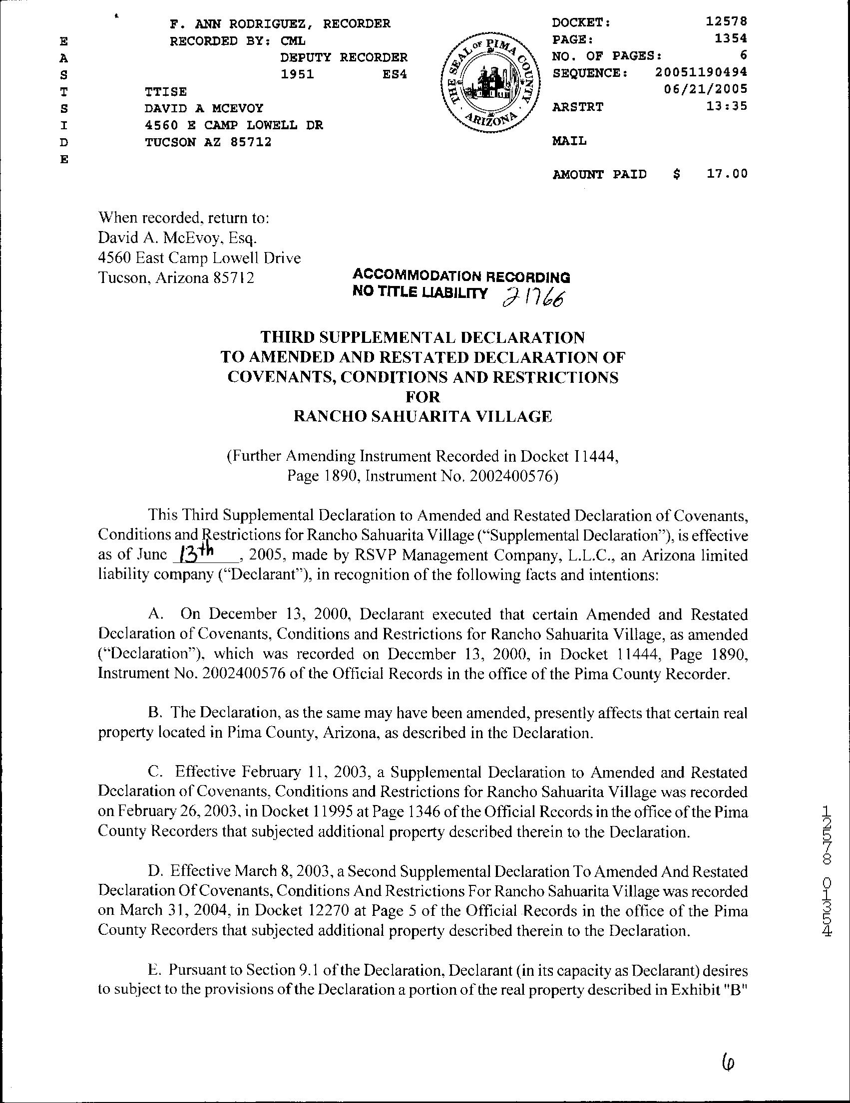 Mailing Address : 950 W Camino Nogal Blanco, Sahuarita AZ 85629-7884 H073