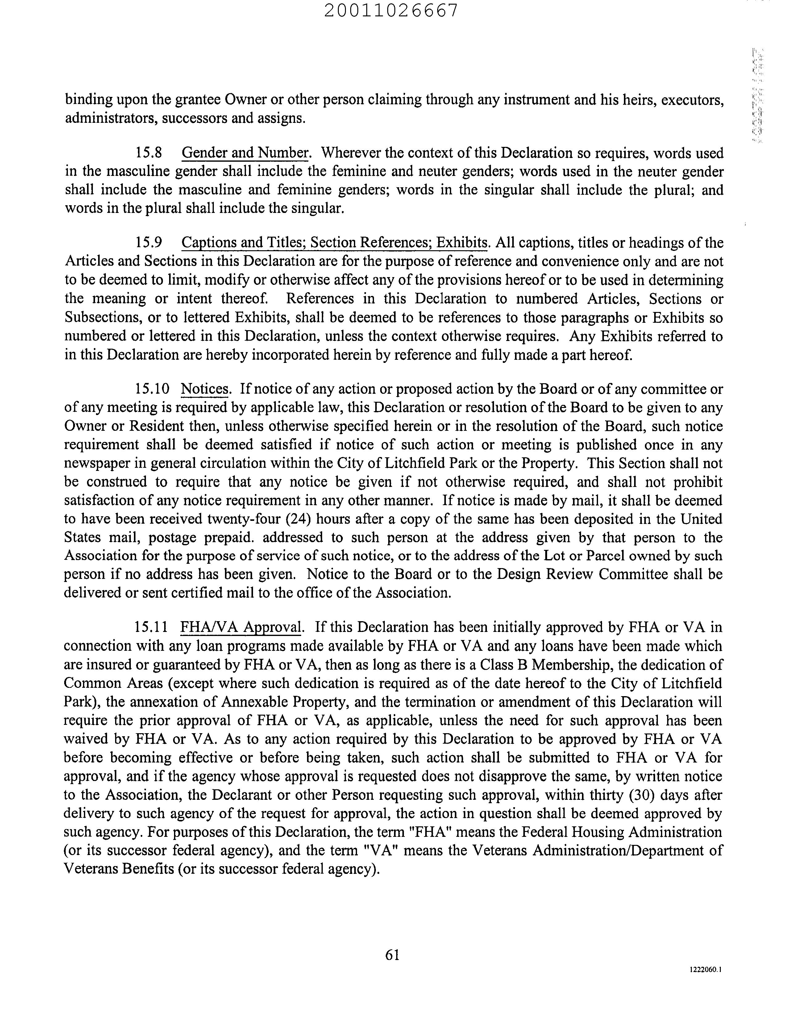 ©2021 First American Financial Corporation and/or its affiliates. All rights reserved. NYSE: FAF 05252610821 COVENANTS, CONDITIONS & RESTRICTIONS PREPARED FOR : First American Title Insurance Company, and the operating divisions thereof, make no express or implied warranty respecting the information presented and assume no responsibility for errors or omissions. First American, the eagle logo, First American Title, and firstam.com are registered trademarks or trademarks of First American Financial Corporation and/or its affiliates. 14571 W. Hidden Terrace Loop Litchfield Park, AZ 85340
