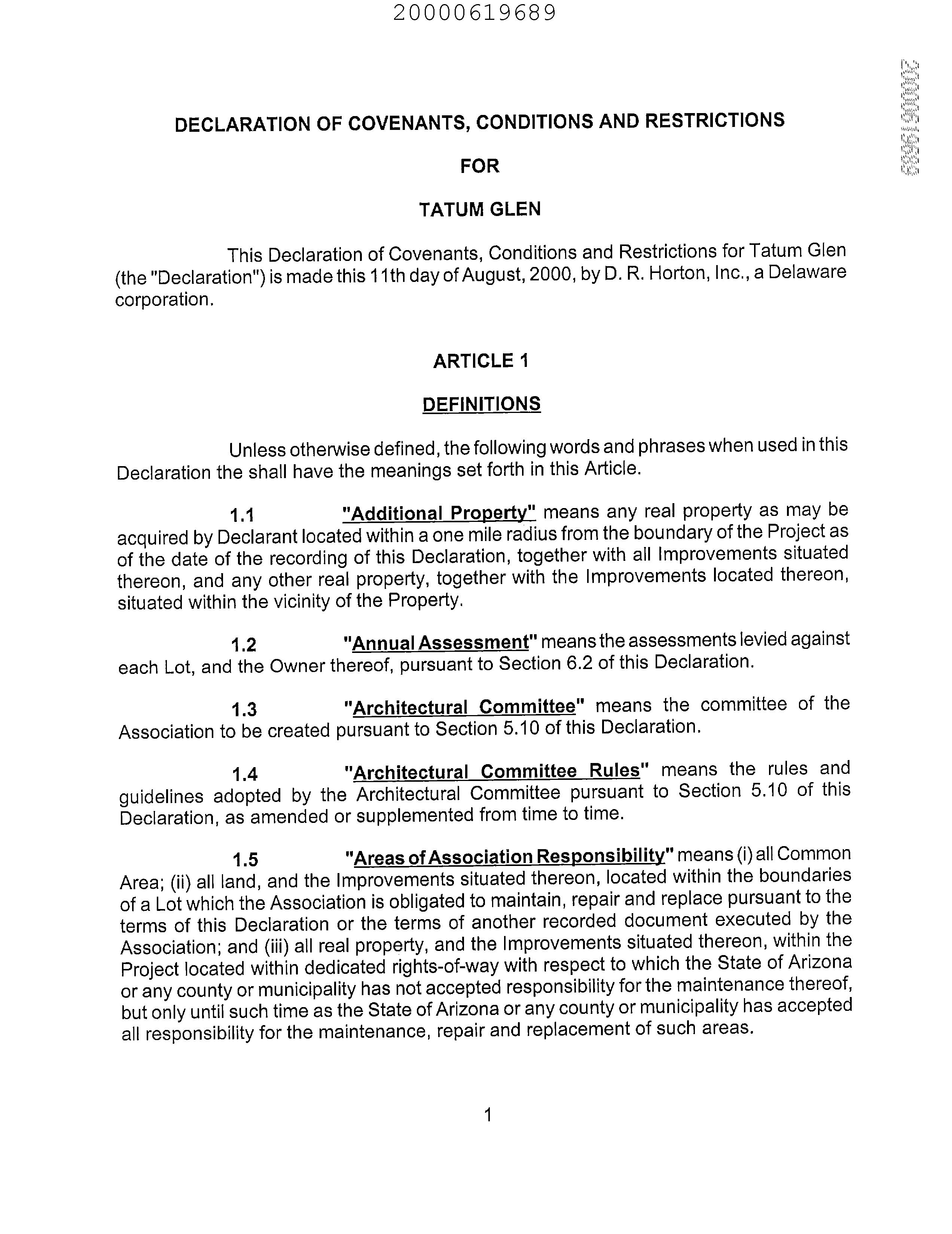 ©2021 First American Financial Corporation and/or its affiliates. All rights reserved. NYSE: FAF 05252610821 COVENANTS, CONDITIONS & RESTRICTIONS PREPARED FOR : First American Title Insurance Company, and the operating divisions thereof, make no express or implied warranty respecting the information presented and assume no responsibility for errors or omissions. First American, the eagle logo, First American Title, and firstam.com are registered trademarks or trademarks of First American Financial Corporation and/or its affiliates. 18207 N. 44th Place Phoenix, AZ 85032
