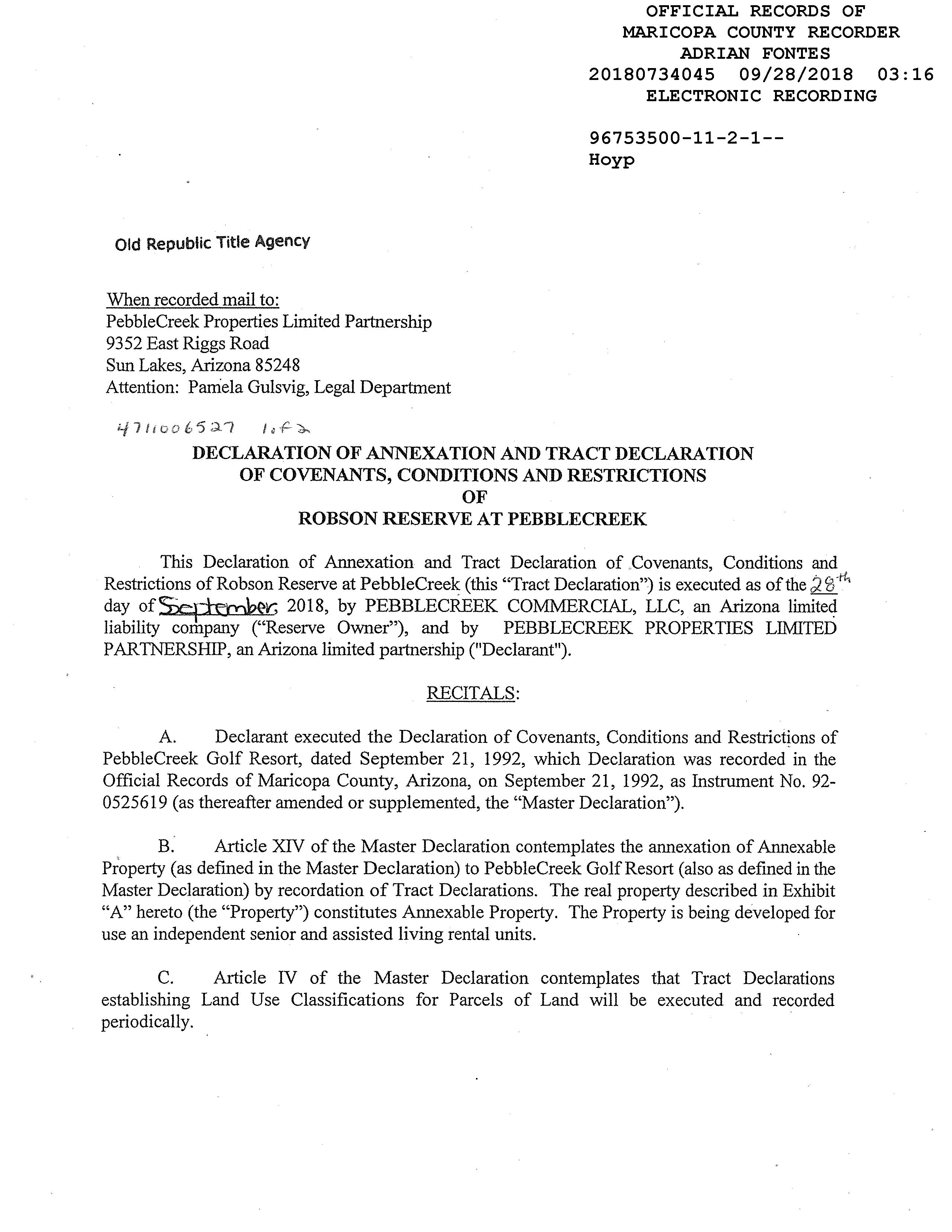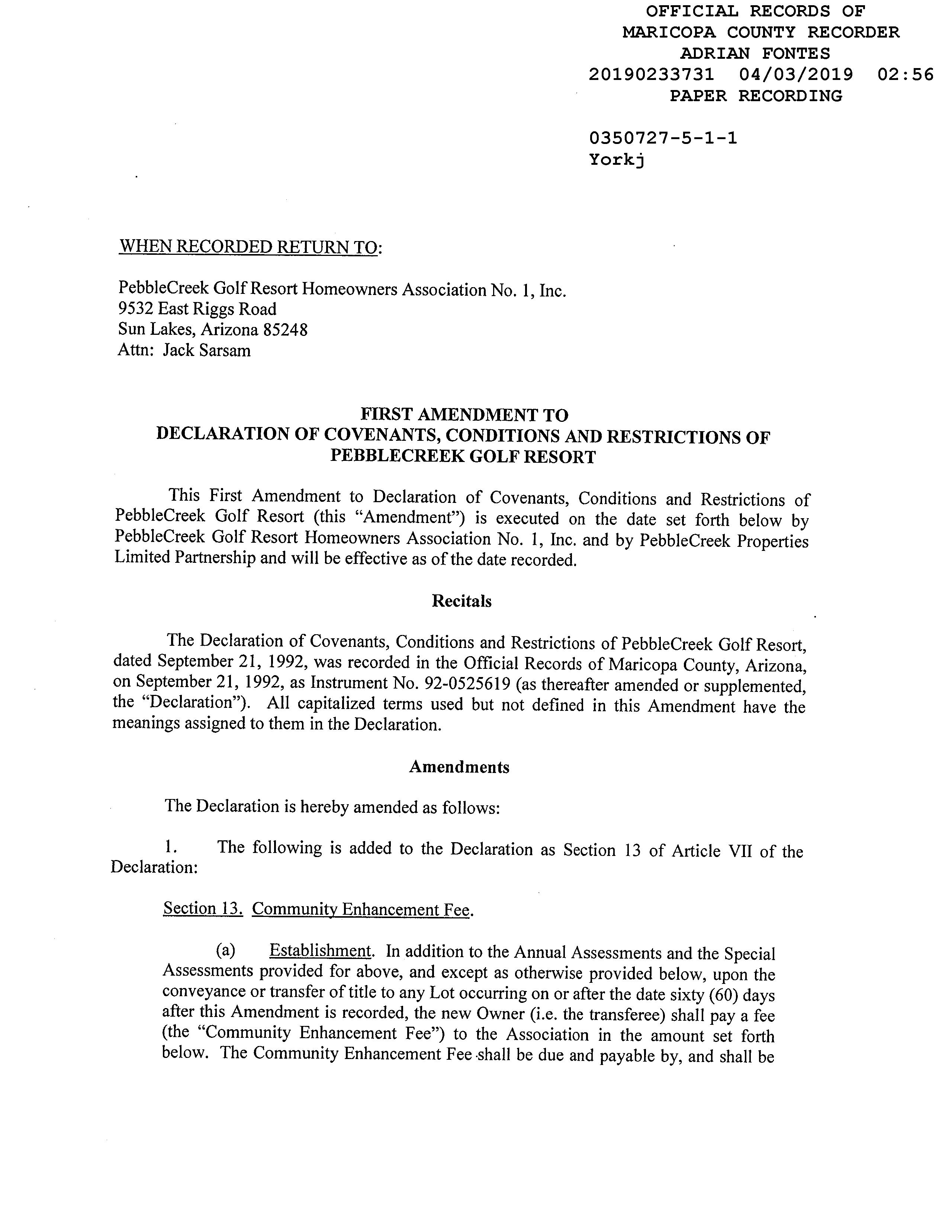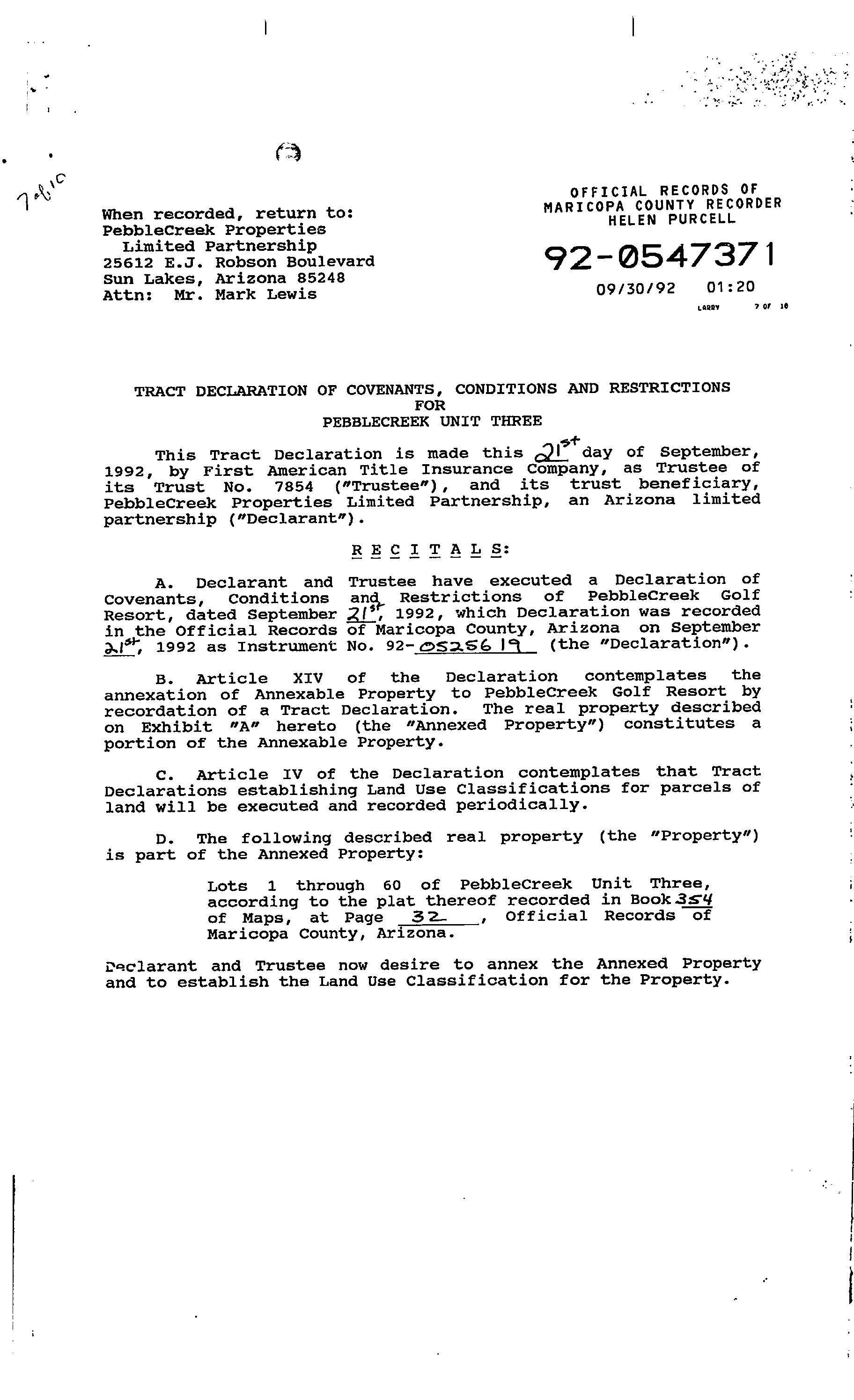©2021 First American Financial Corporation and/or its affiliates. All rights reserved. NYSE: FAF 05252610821 COVENANTS, CONDITIONS & RESTRICTIONS PREPARED FOR : First American Title Insurance Company, and the operating divisions thereof, make no express or implied warranty respecting the information presented and assume no responsibility for errors or omissions. First American, the eagle logo, First American Title, and firstam.com are registered trademarks or trademarks of First American Financial Corporation and/or its affiliates. 3819 N. 154th Lane Goodyear, AZ 85395