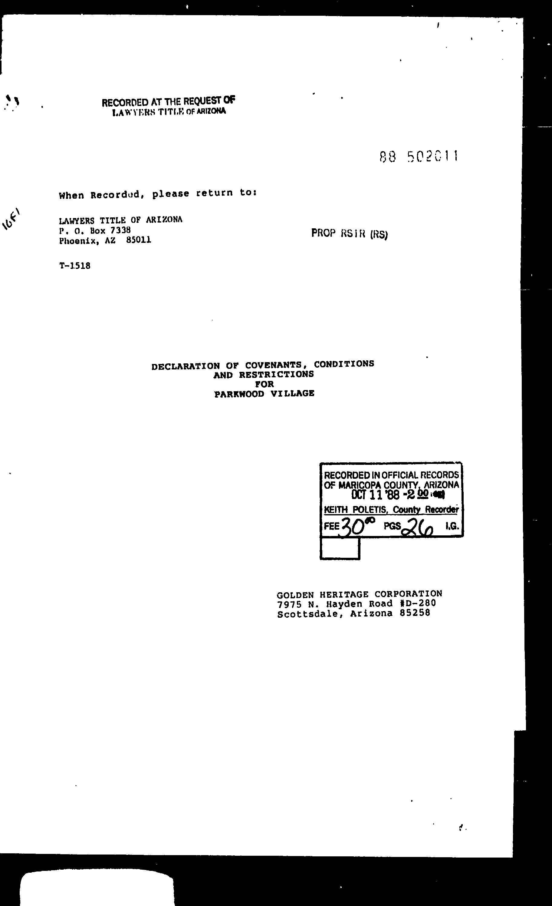 This report is not an insured product or service or a representation of the condition of title to real property. It is not an abst ract, legal opinion, opinion of title, title insurance commitment or preliminary report, or any form of Title Insurance or Guaranty. This report is issued exclusively for the benefit of the Applicant therefor and may not be used or relied upon by any other person. This report may not be reproduced in any manner without First American or Title Security's prior written consent. First American or Title Security does not represent or warrant that the information herein is complete or free from error, and the information herein is provided without any warranties of any kind, as-is, and with all faults. As a material part of the consideration given in exchange for the issuance of this report, recipient agrees that First American or Title Security's sole liability for any loss or damage caused by an error or omission due to inaccurate information or negligence in preparing this report shall be limited to the fee charged for the report. Recipient accepts this report with this limitation and agrees that First American or Title Security would not have issued this report but for the limitation of liability described above. First American or Title Security makes no representation or warranty as to the legality or propriety of recipient's use of the information herein.