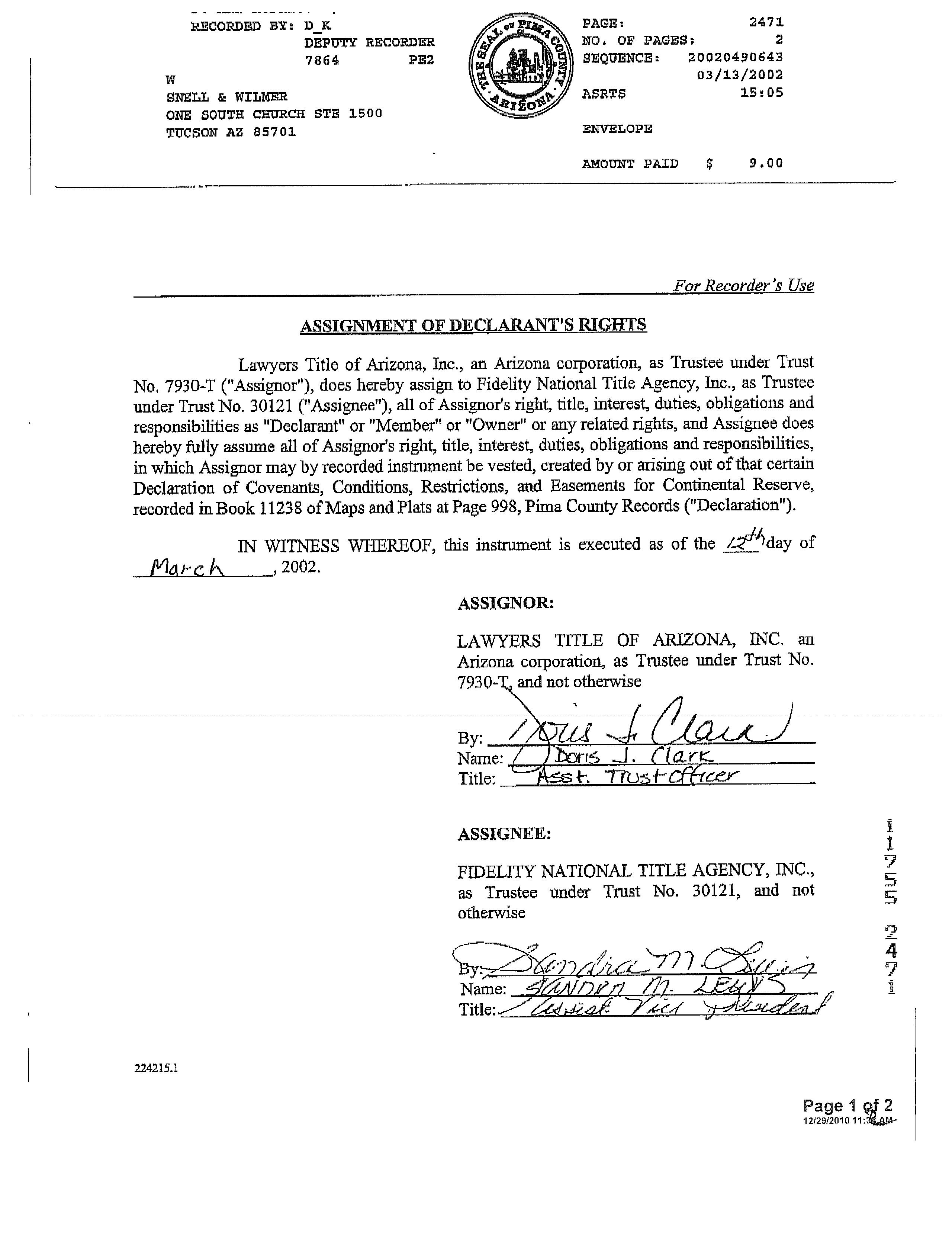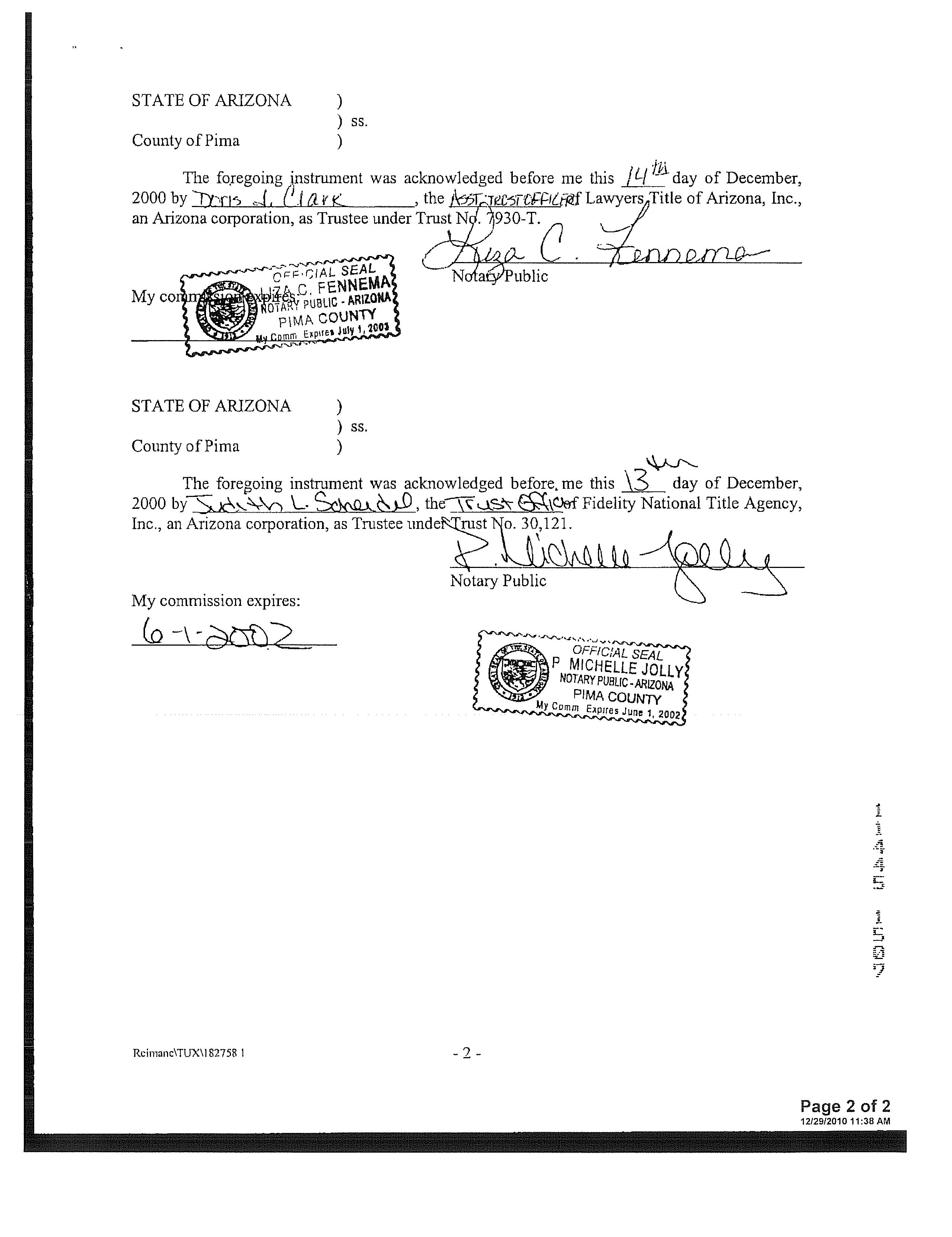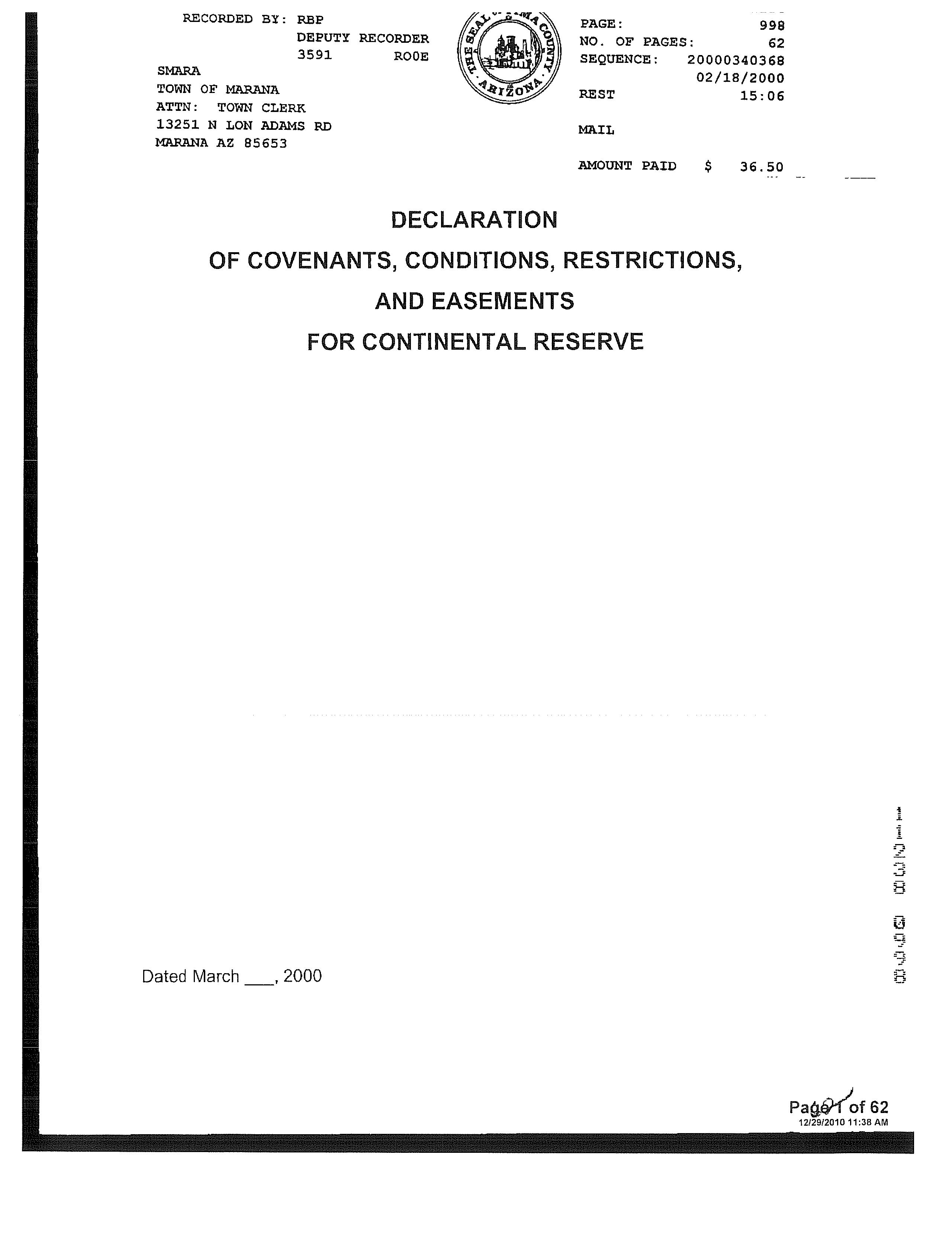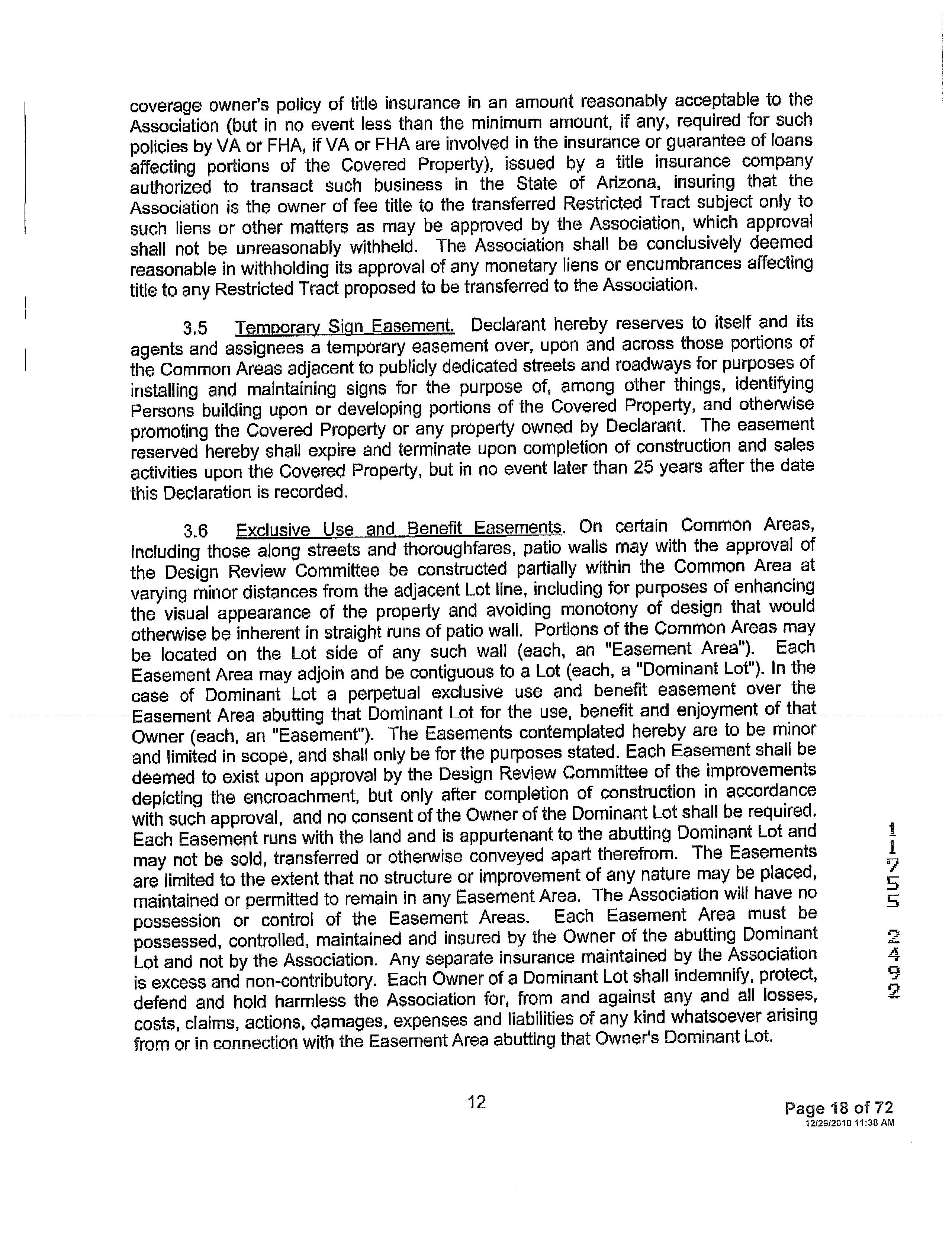 ©2021 First American Financial Corporation and/or its affiliates. All rights reserved. NYSE: FAF 05252610821 COVENANTS, CONDITIONS & RESTRICTIONS PREPARED FOR : First American Title Insurance Company, and the operating divisions thereof, make no express or implied warranty respecting the information presented and assume no responsibility for errors or omissions. First American, the eagle logo, First American Title, and firstam.com are registered trademarks or trademarks of First American Financial Corporation and/or its affiliates. 7144 W Lone Flower Dr Tucson, AZ