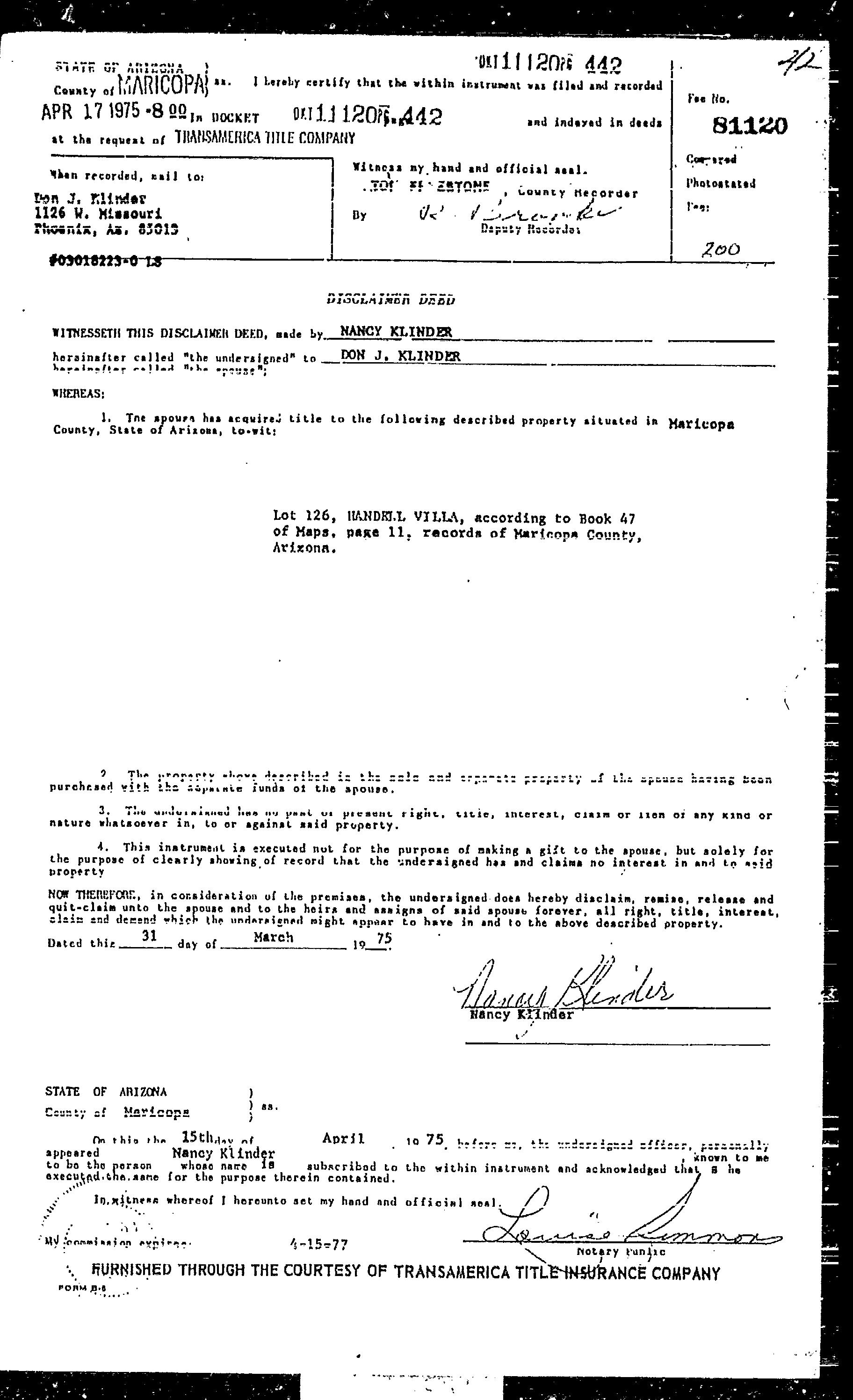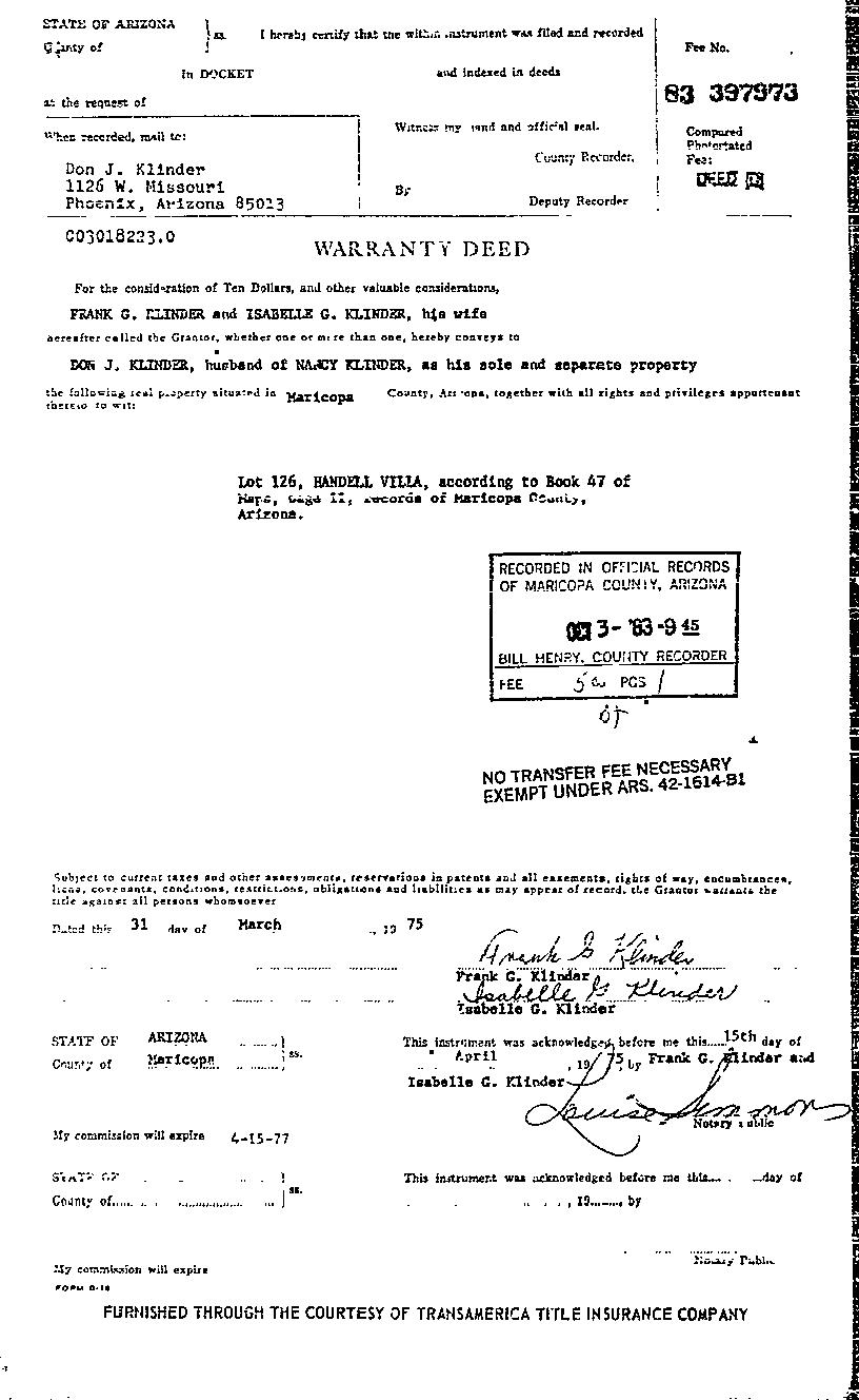 Owner Name : Melnick James Subdivision : Chris Gilgians Camelback Village Unit 2