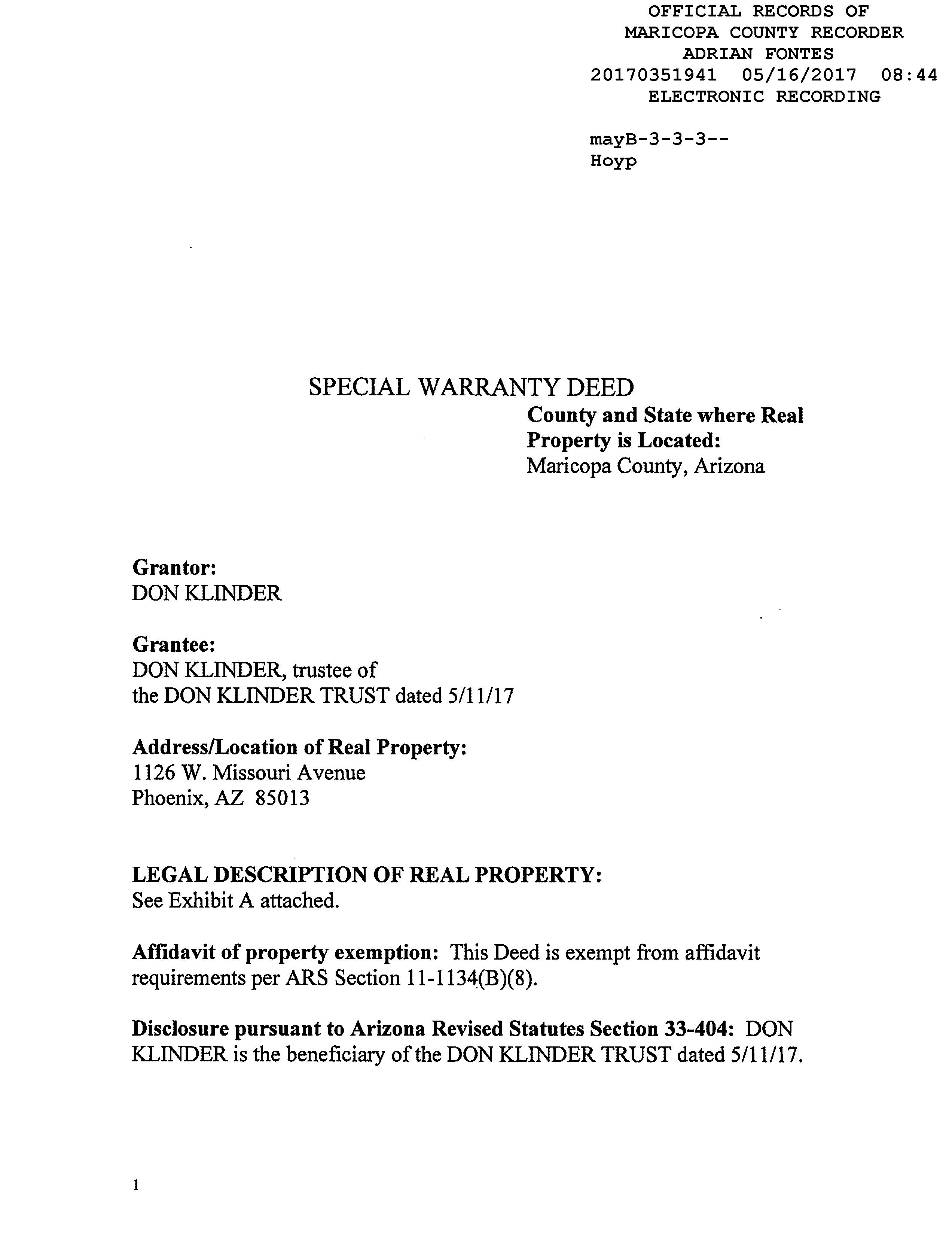 Mailing Address : 1126 W Missouri Ave, Phoenix AZ 85013-1914 C019