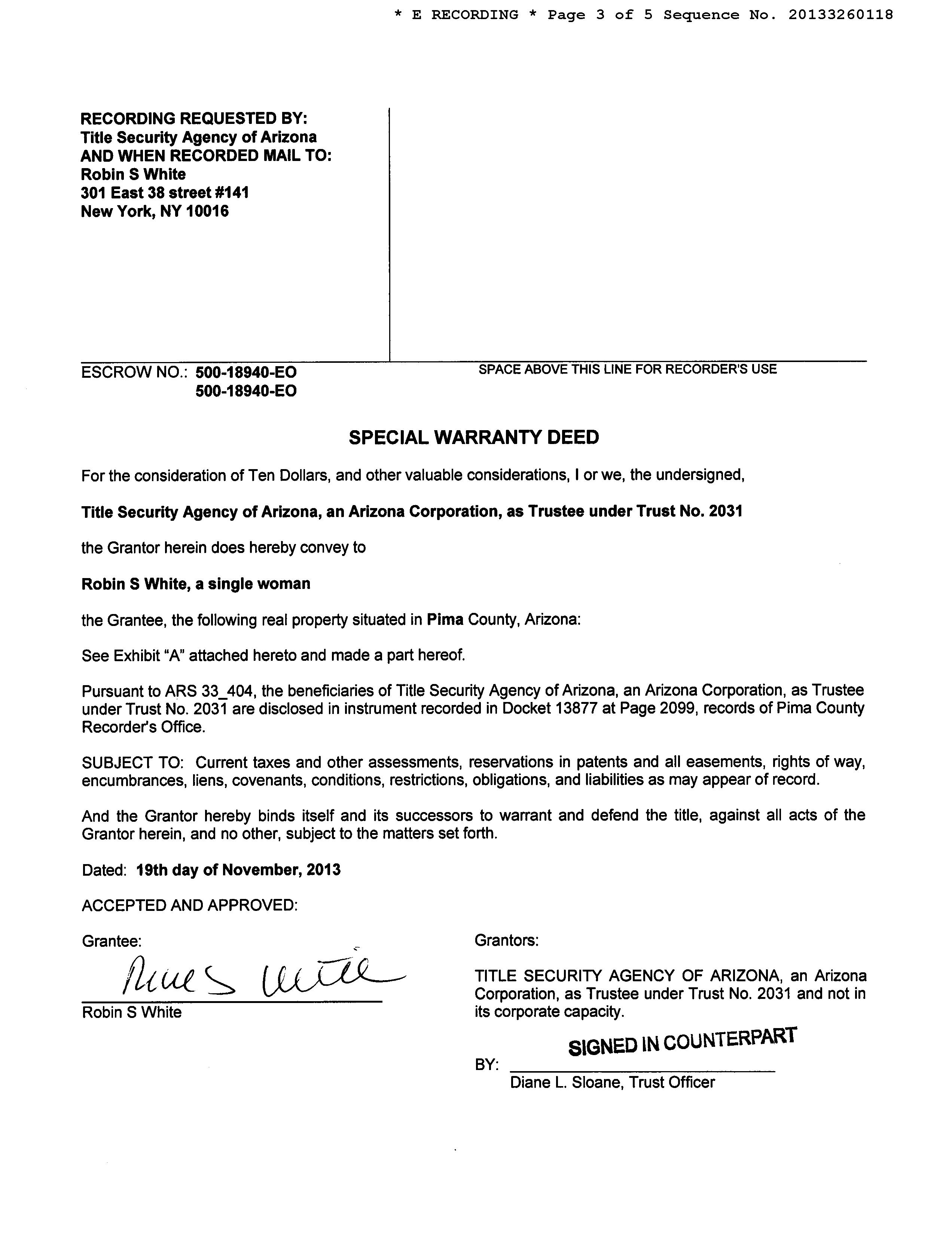 Deed Type : Special Warranty Deed