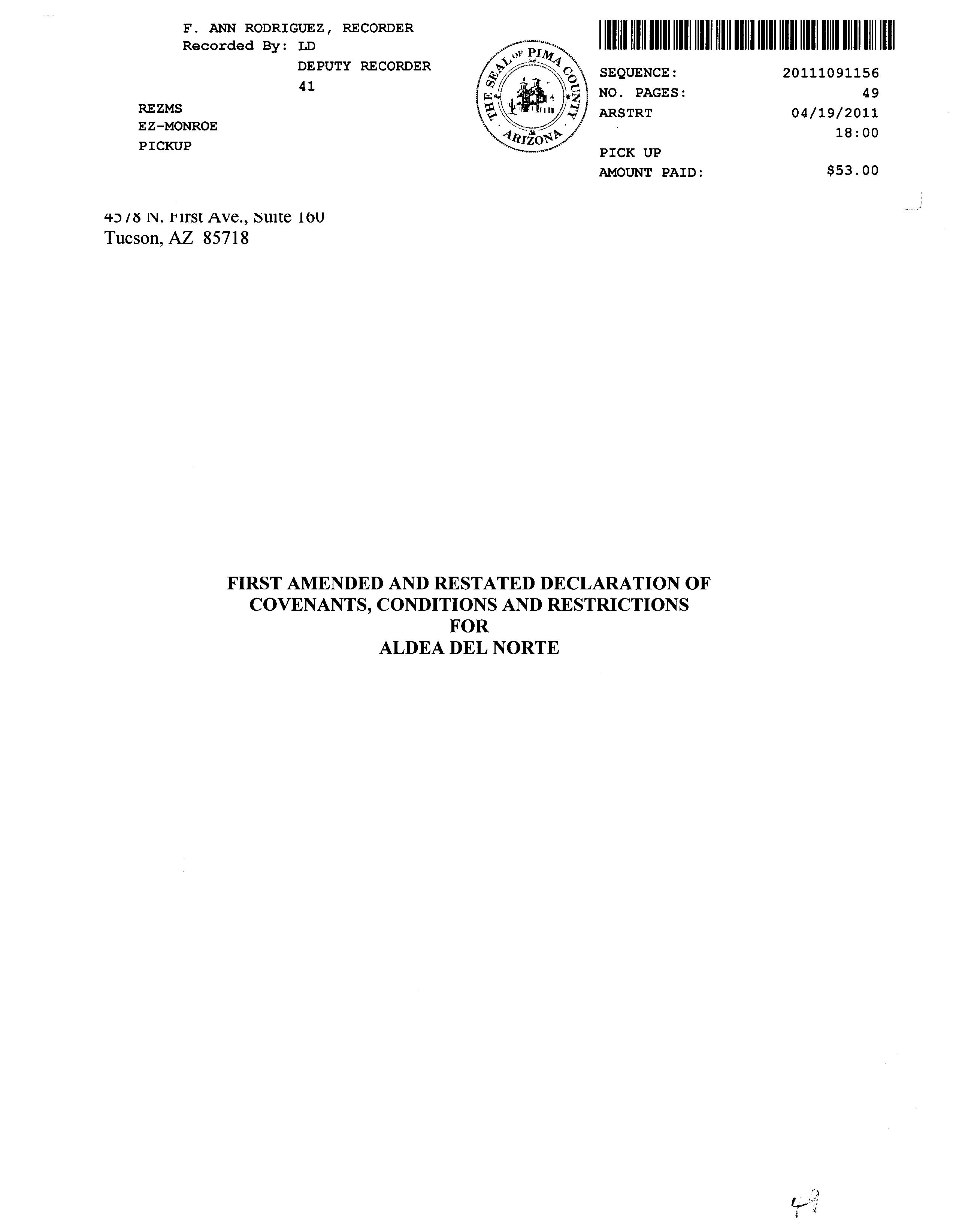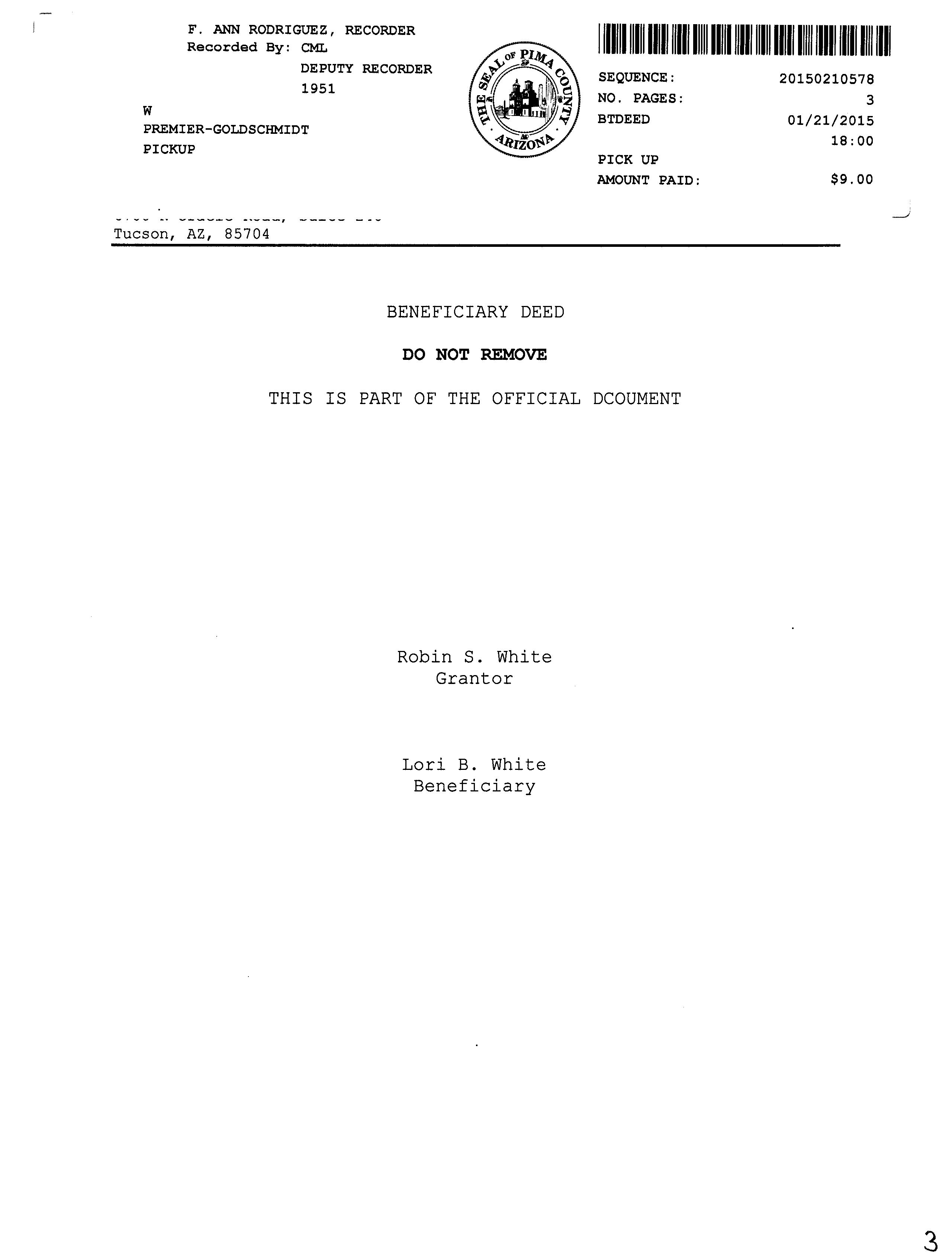 Mailing Address : 3044 E Placita Aldea Linda, Tucson AZ 85716-1581 C028
