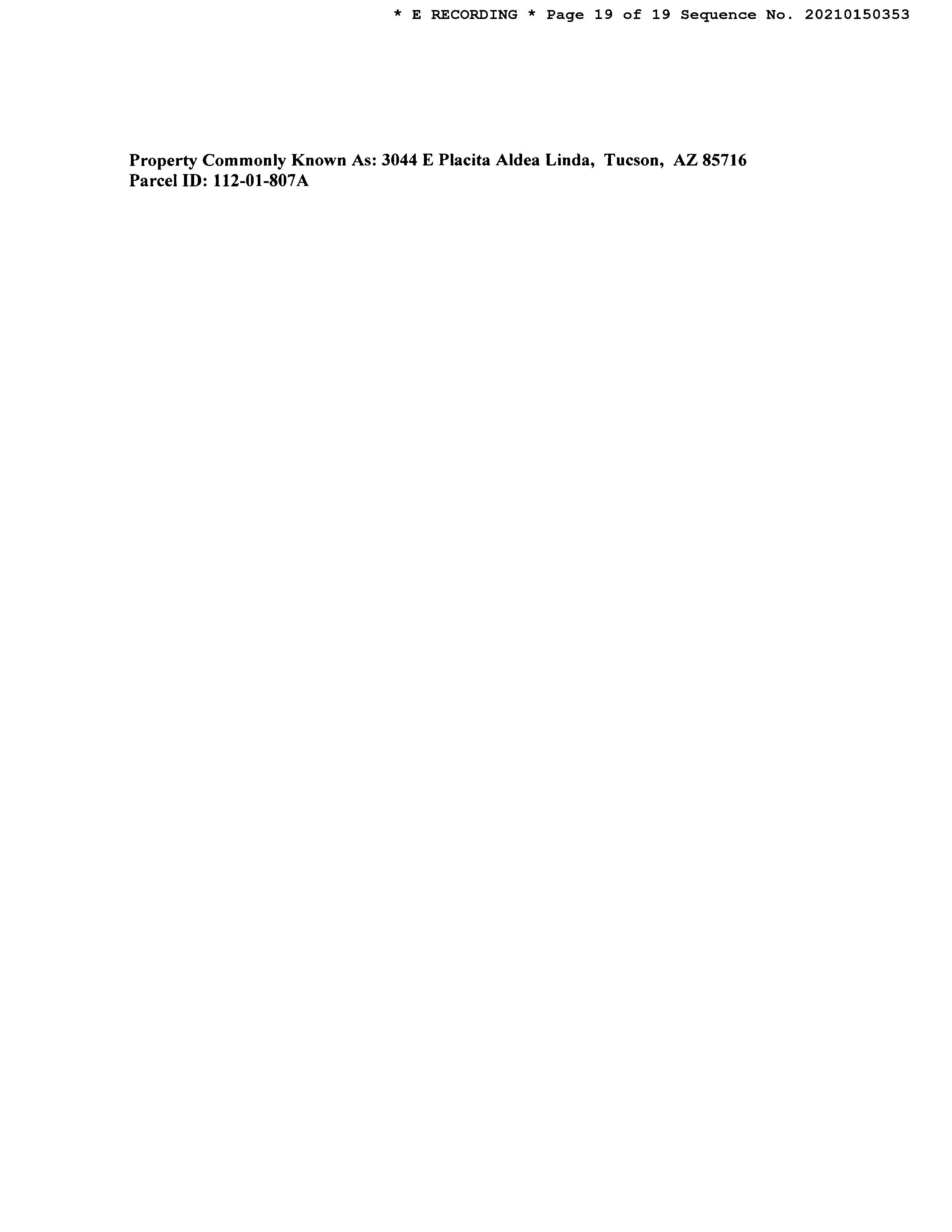 Subject Property : 3044 E Placita Aldea Linda Tucson AZ 85716